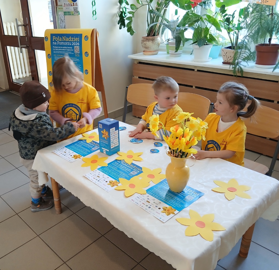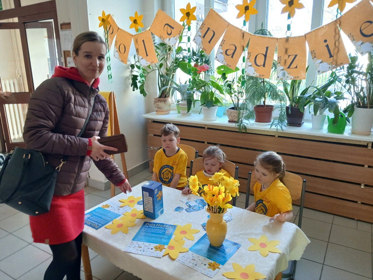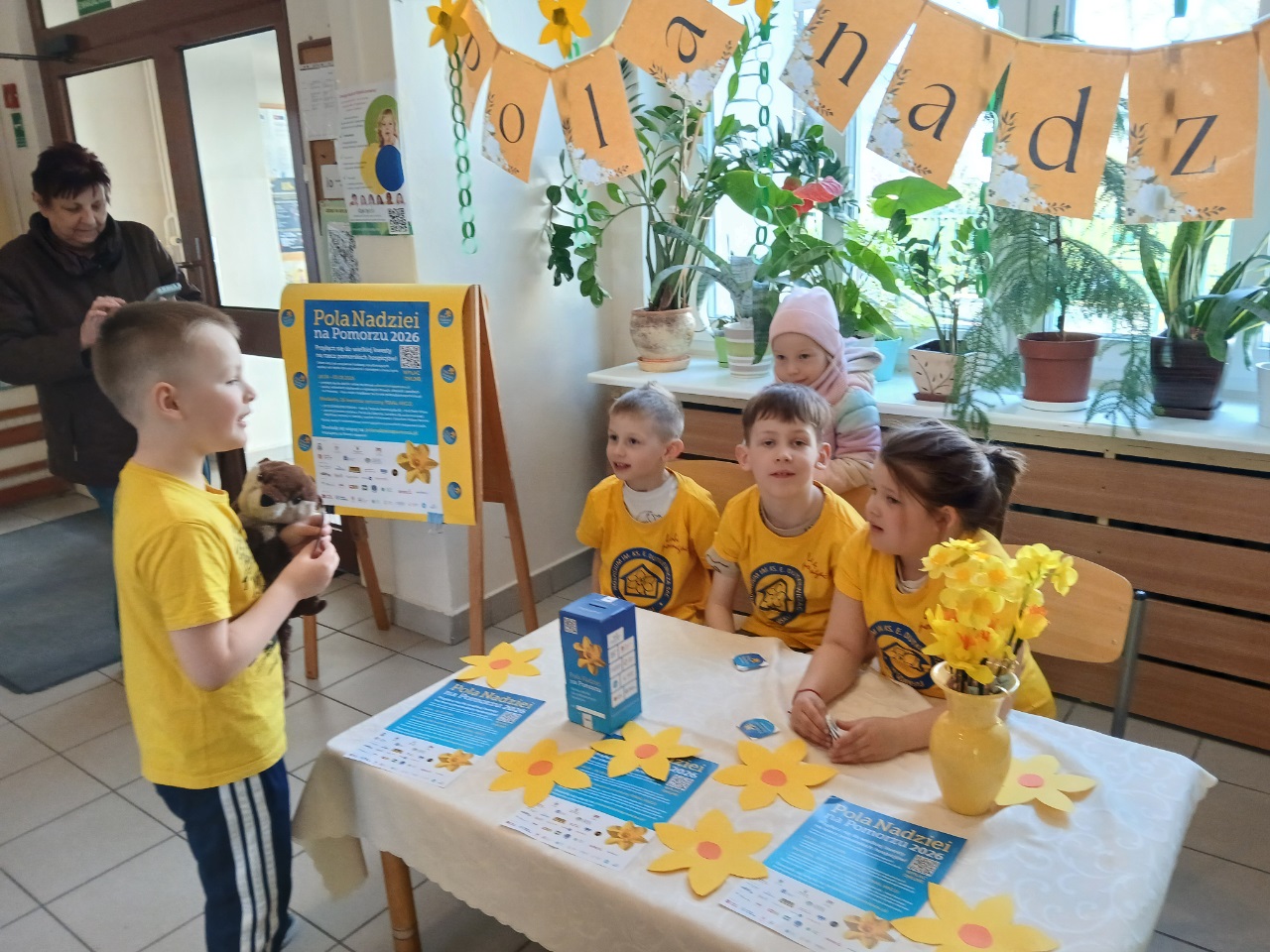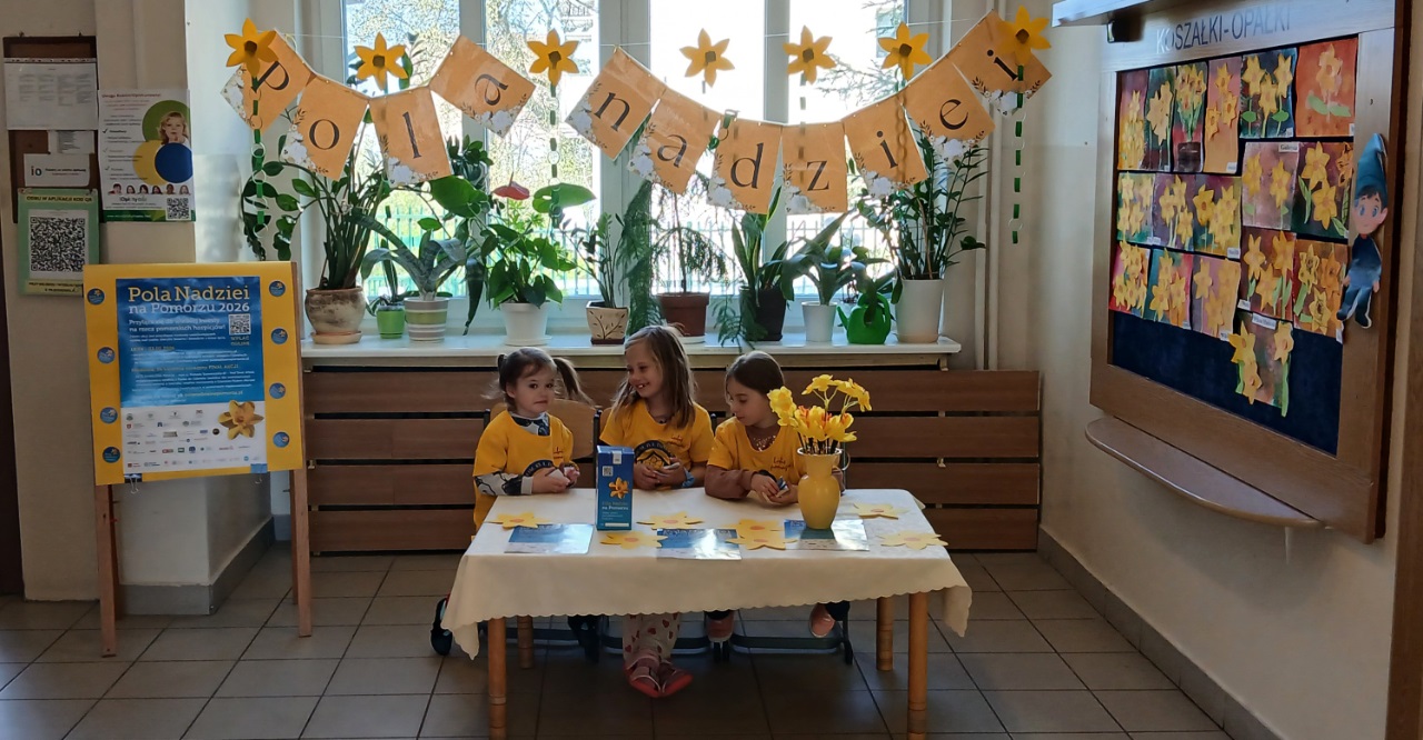 Dzieci z naszego przedszkola już po raz kolejny włączyły się w akcję charytatywną ,,Pola Nadziei". Głównym celem udziału w akcji jest pozyskiwanie środków finansowych na rzecz hospicjum oraz uwrażliwienie dzieci na potrzeby ciężko chorych, cierpiących ludzi. Kwiat ten jest symbolem nadziei na całym świecie. To znak przypominający o ludziach chorych, oczekujących pomocy w najtrudniejszych chwilach życia. Kwiat jest wezwaniem do niesienia bezinteresownej pomocy. Dla przedszkolaków Pola Nadziei to radość pomagania.