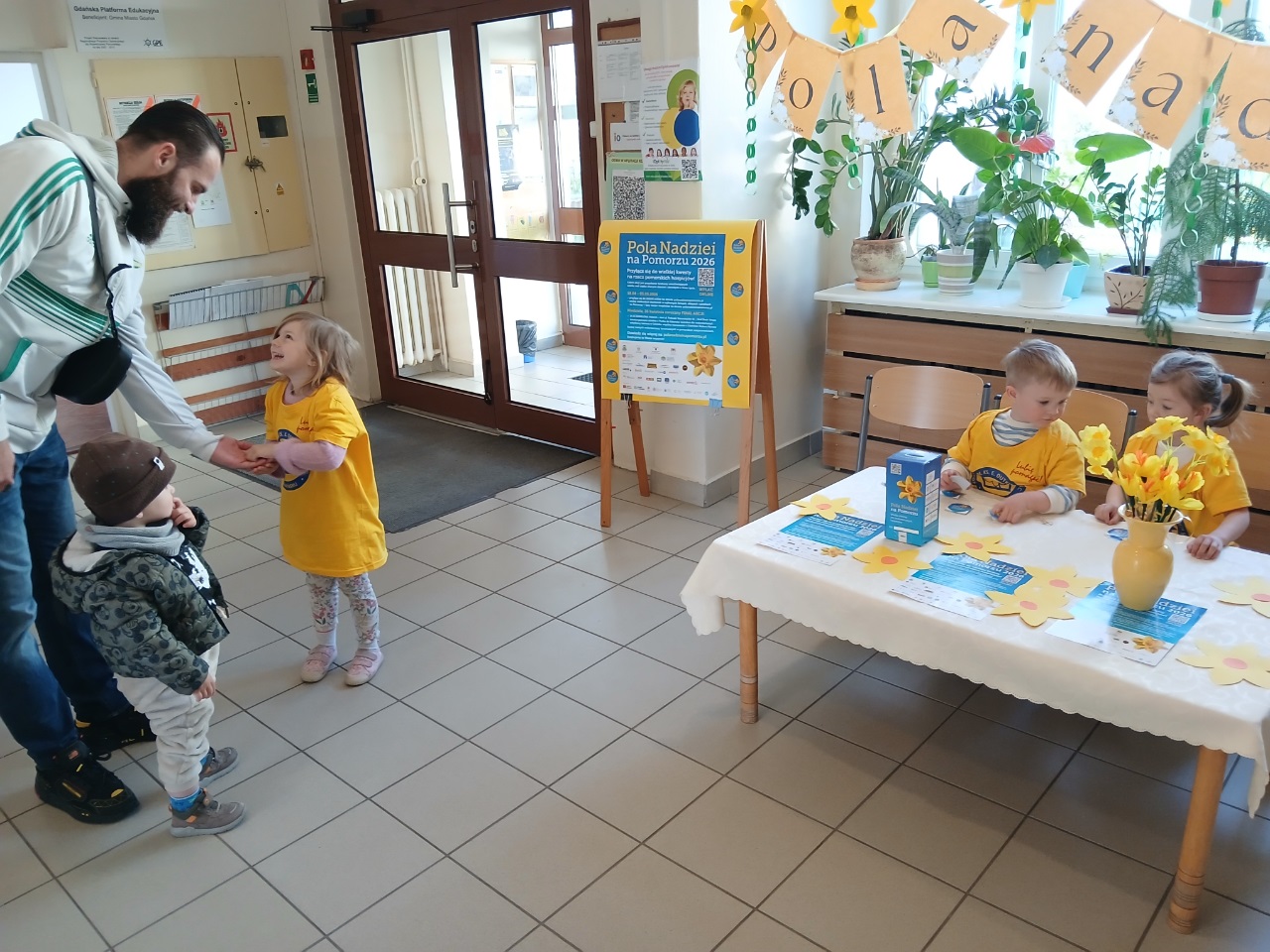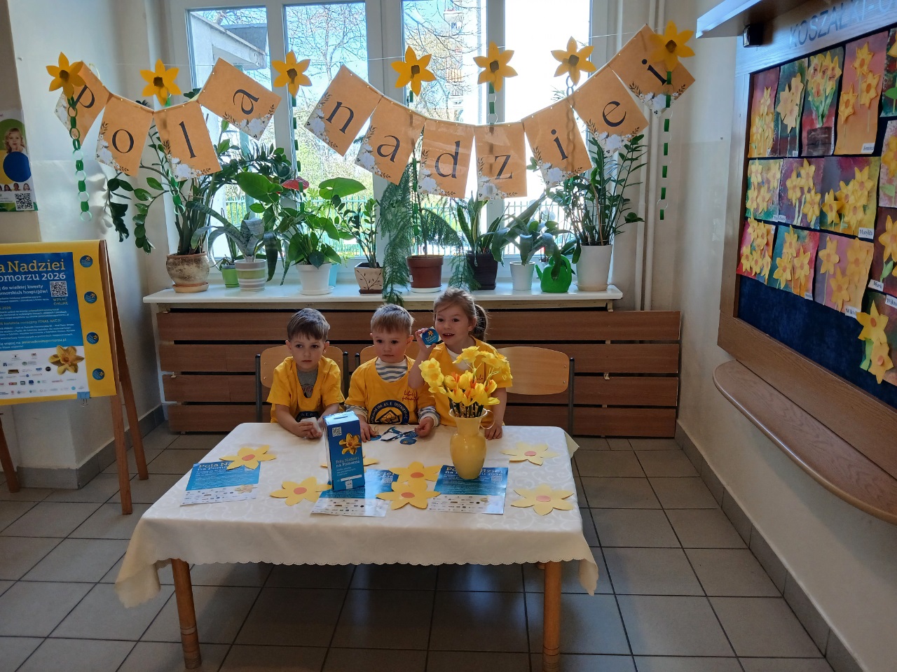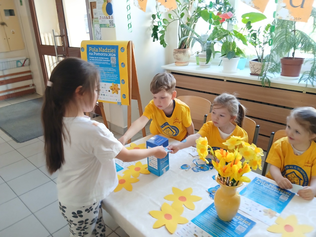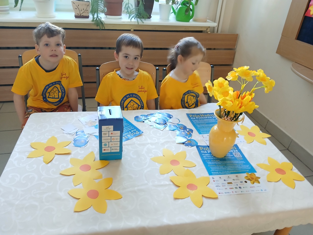 Dzieci z naszego przedszkola już po raz kolejny włączyły się w akcję charytatywną ,,Pola Nadziei". Głównym celem udziału w akcji jest pozyskiwanie środków finansowych na rzecz hospicjum oraz uwrażliwienie dzieci na potrzeby ciężko chorych, cierpiących ludzi. Kwiat ten jest symbolem nadziei na całym świecie. To znak przypominający o ludziach chorych, oczekujących pomocy w najtrudniejszych chwilach życia. Kwiat jest wezwaniem do niesienia bezinteresownej pomocy. Dla przedszkolaków Pola Nadziei to radość pomagania.