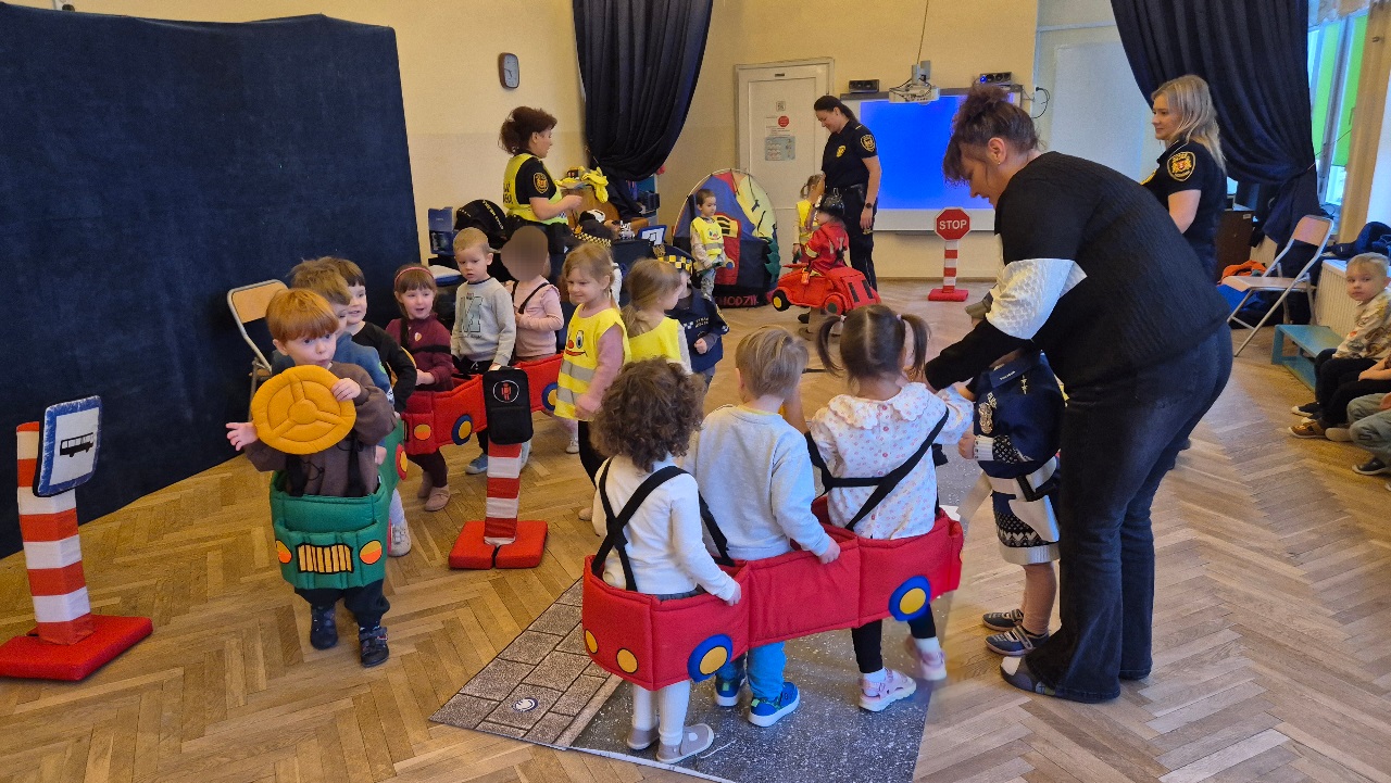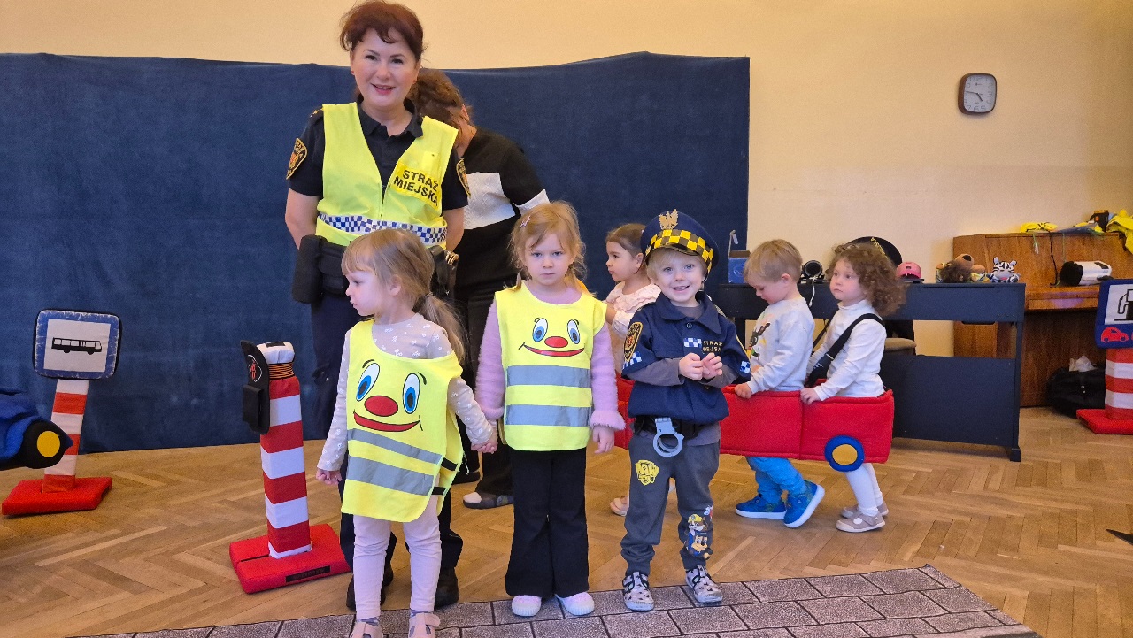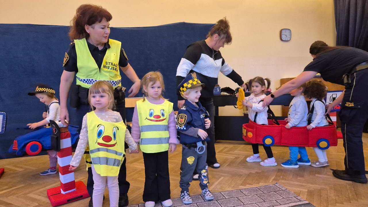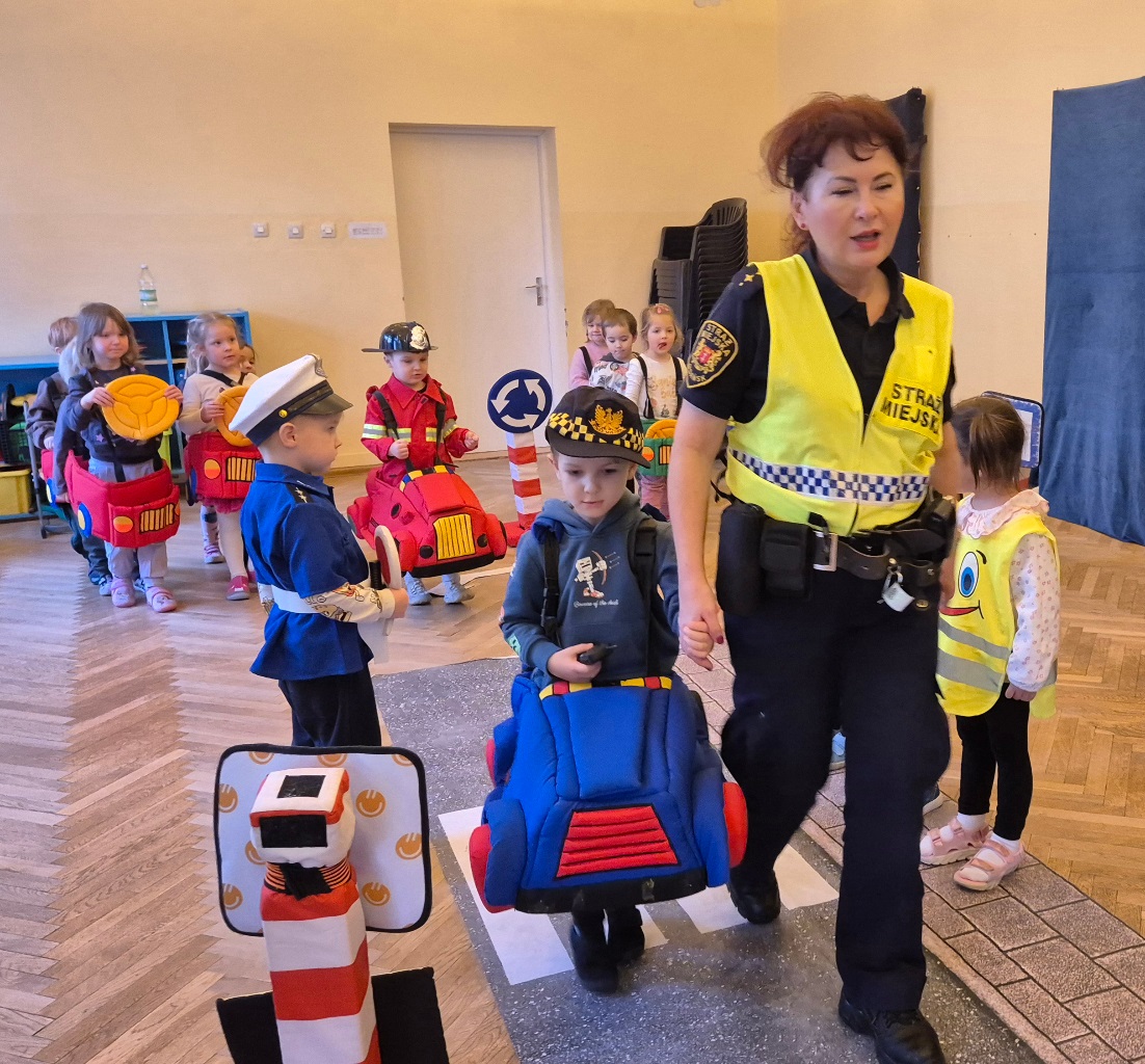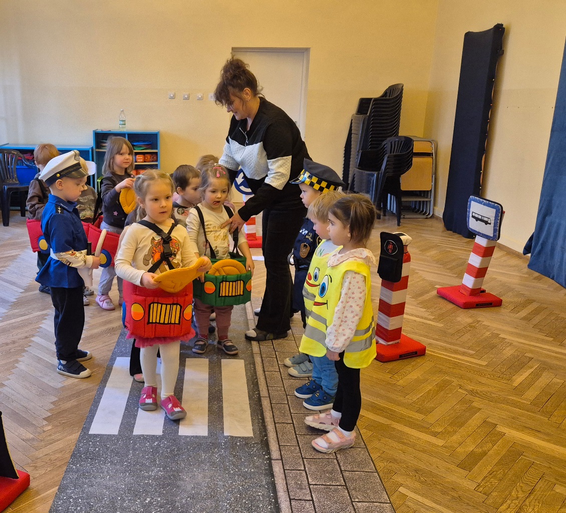 W naszym przedszkolu odbyły się zajęcia z programu „Autochodzik”, prowadzone przez funkcjonariuszki Straży Miejskiej. Dzieci, korzystając z makiet samochodów oraz przenośnych znaków drogowych, uczyły się bezpiecznego poruszania się po drodze. Podczas zabaw przedszkolaki poznawały podstawowe znaki, światła sygnalizatora oraz zasady przechodzenia przez jezdnię. Zajęcia, dzięki wykorzystaniu elementów programu „Autochodzik”, pozwoliły dzieciom w praktyczny i atrakcyjny sposób utrwalić wiedzę na temat bezpieczeństwa na drodze. Edukacja poprzez zabawę sprawiła, że nauka stała się nie tylko wartościowa, ale także niezwykle angażująca a tak przygotowana sceneria pozwalała dzieciom przeżywać sytuacje drogowe w praktyce, ale w całkowicie bezpiecznych i kontrolowanych warunkach.