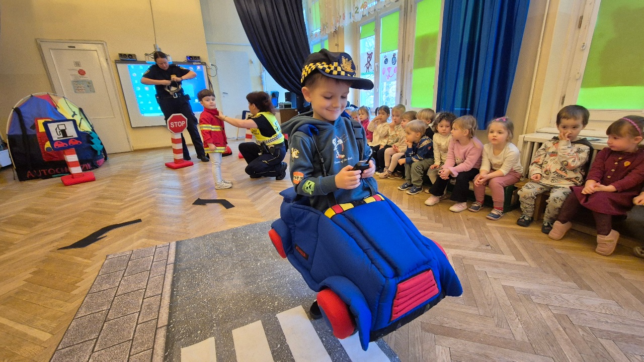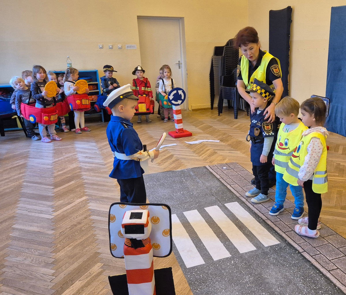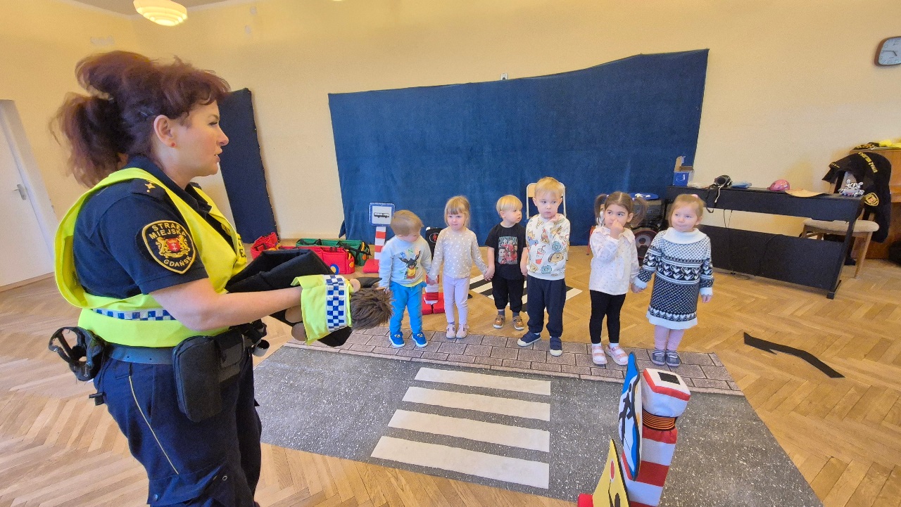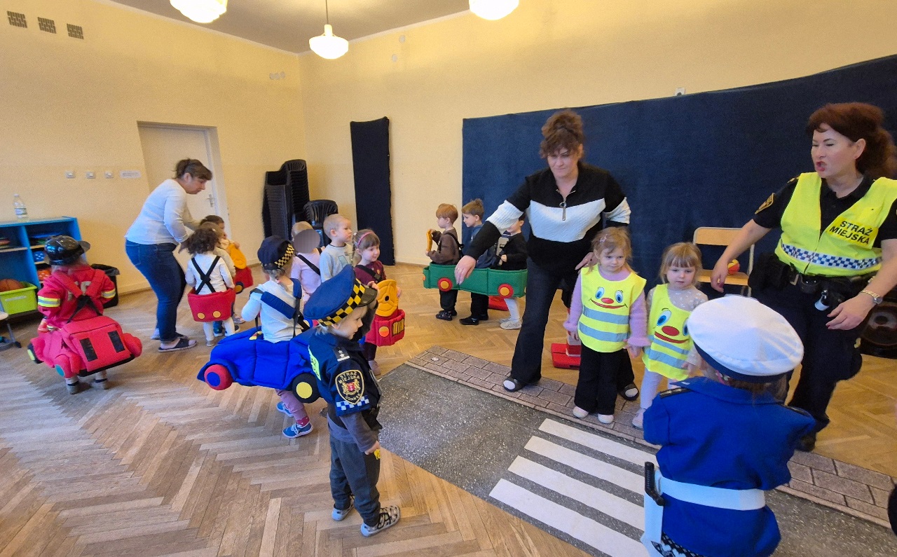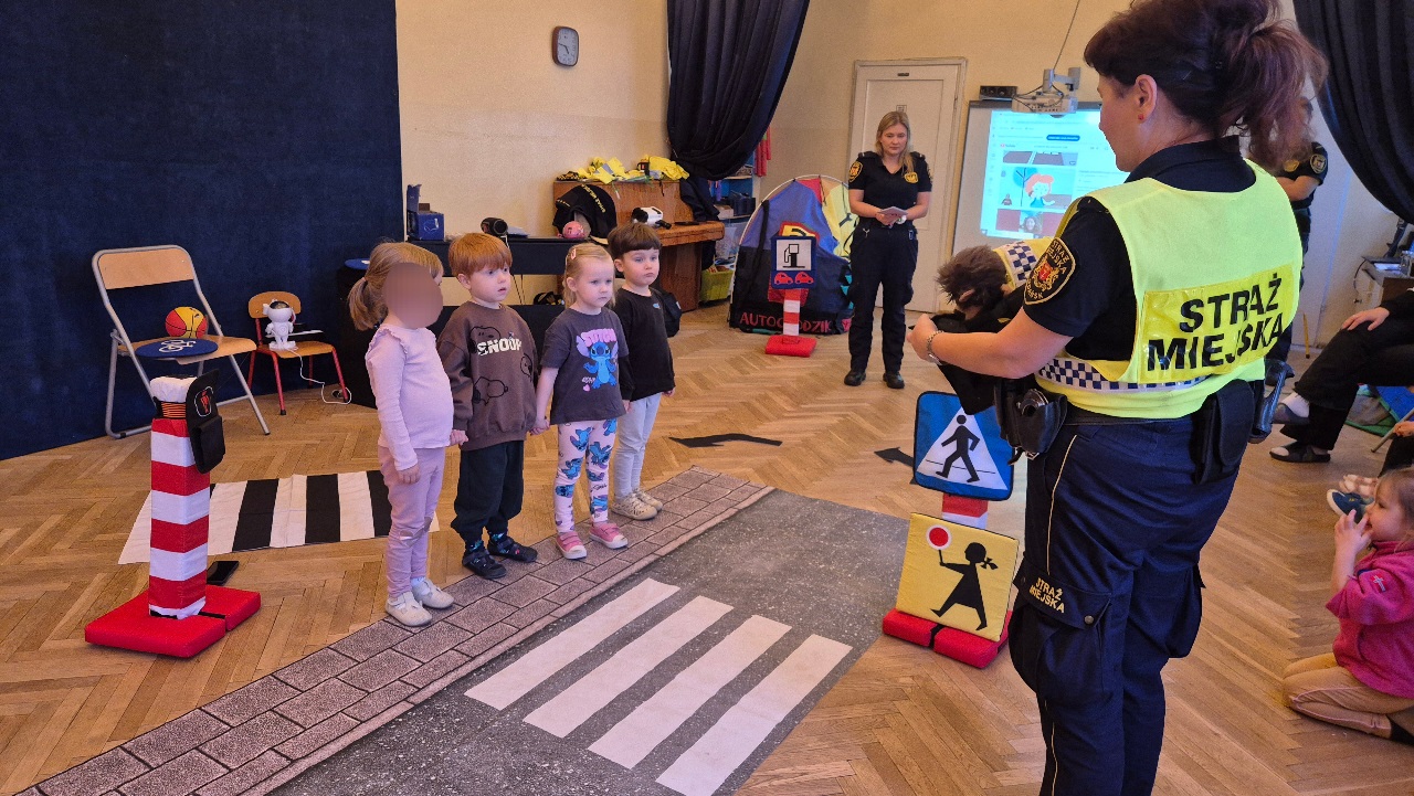 W naszym przedszkolu odbyły się zajęcia z programu „Autochodzik”, prowadzone przez funkcjonariuszki Straży Miejskiej. Dzieci, korzystając z makiet samochodów oraz przenośnych znaków drogowych, uczyły się bezpiecznego poruszania się po drodze. Podczas zabaw przedszkolaki poznawały podstawowe znaki, światła sygnalizatora oraz zasady przechodzenia przez jezdnię. Zajęcia, dzięki wykorzystaniu elementów programu „Autochodzik”, pozwoliły dzieciom w praktyczny i atrakcyjny sposób utrwalić wiedzę na temat bezpieczeństwa na drodze. Edukacja poprzez zabawę sprawiła, że nauka stała się nie tylko wartościowa, ale także niezwykle angażująca a tak przygotowana sceneria pozwalała dzieciom przeżywać sytuacje drogowe w praktyce, ale w całkowicie bezpiecznych i kontrolowanych warunkach.