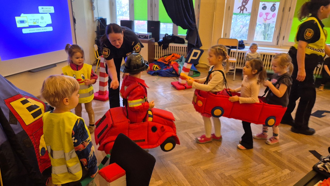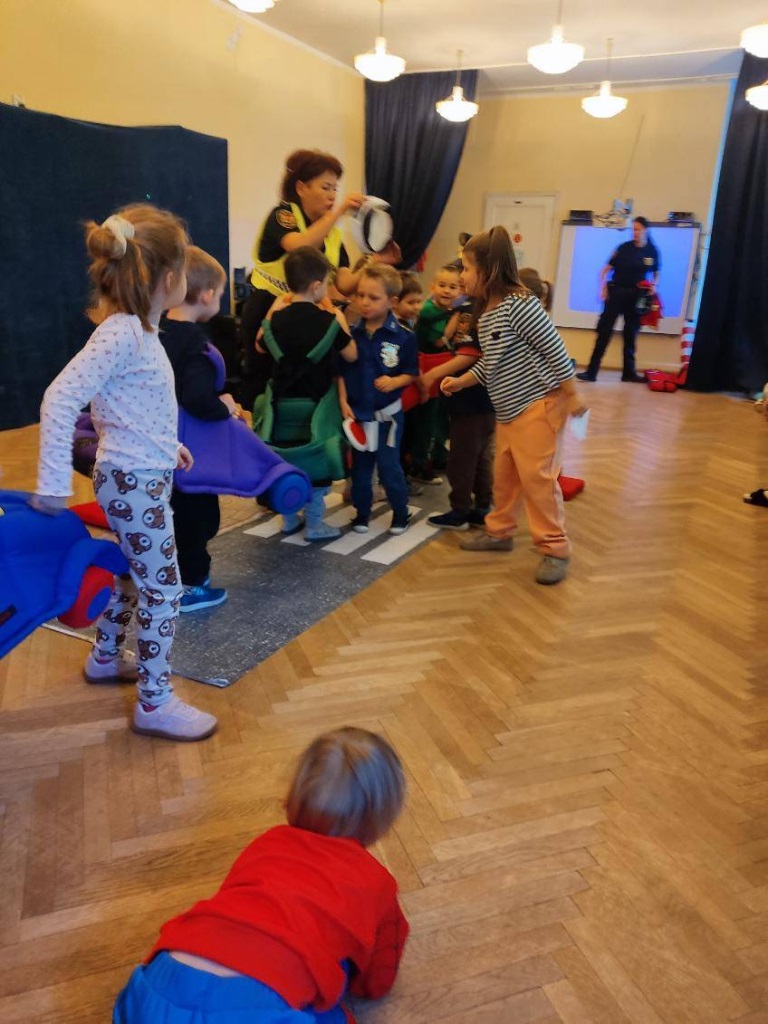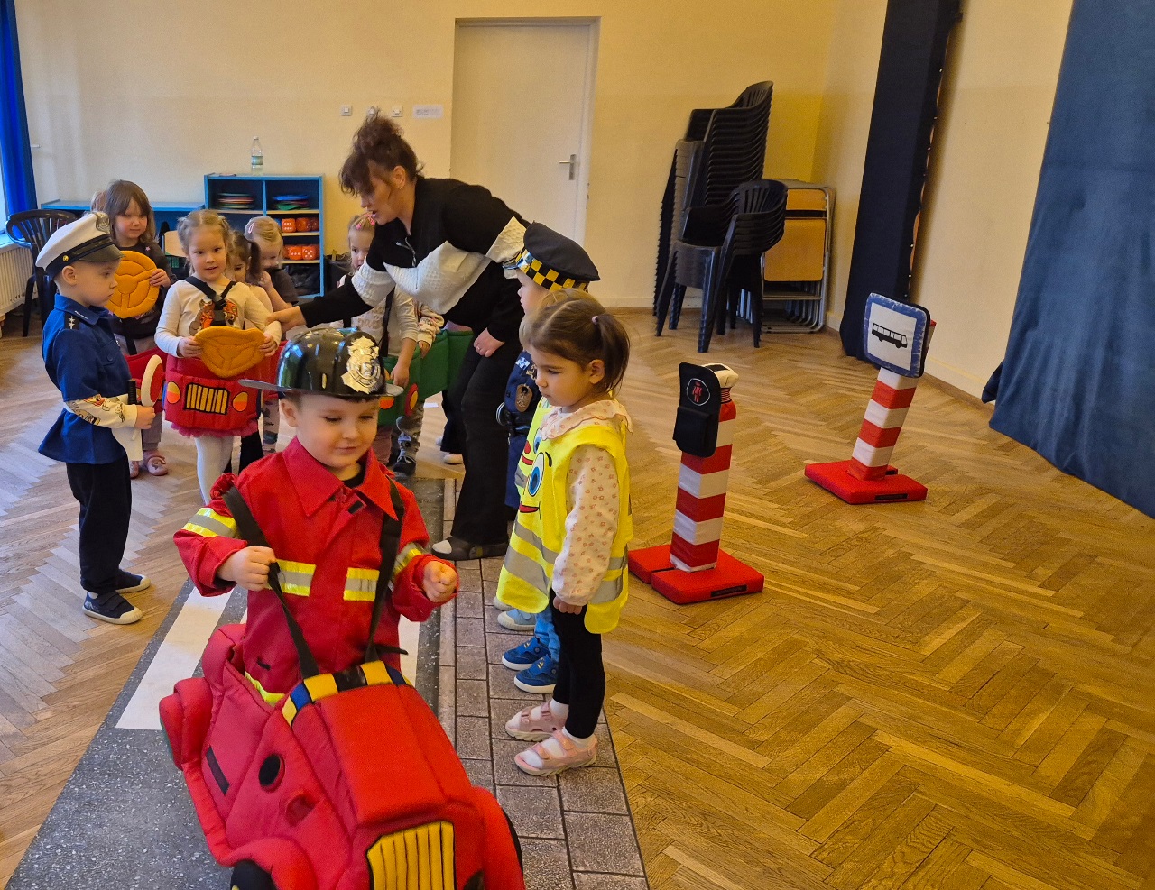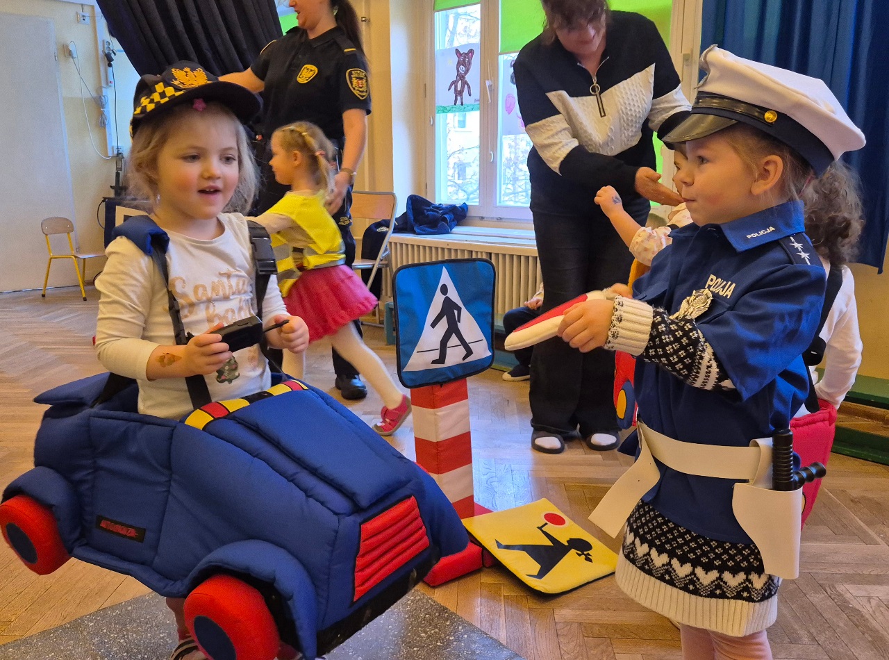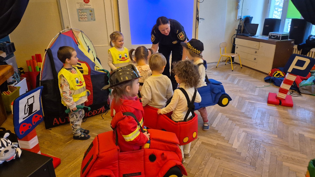 W naszym przedszkolu odbyły się zajęcia z programu „Autochodzik”, prowadzone przez funkcjonariuszki Straży Miejskiej. Dzieci, korzystając z makiet samochodów oraz przenośnych znaków drogowych, uczyły się bezpiecznego poruszania się po drodze. Podczas zabaw przedszkolaki poznawały podstawowe znaki, światła sygnalizatora oraz zasady przechodzenia przez jezdnię. Zajęcia, dzięki wykorzystaniu elementów programu „Autochodzik”, pozwoliły dzieciom w praktyczny i atrakcyjny sposób utrwalić wiedzę na temat bezpieczeństwa na drodze. Edukacja poprzez zabawę sprawiła, że nauka stała się nie tylko wartościowa, ale także niezwykle angażująca a tak przygotowana sceneria pozwalała dzieciom przeżywać sytuacje drogowe w praktyce, ale w całkowicie bezpiecznych i kontrolowanych warunkach.