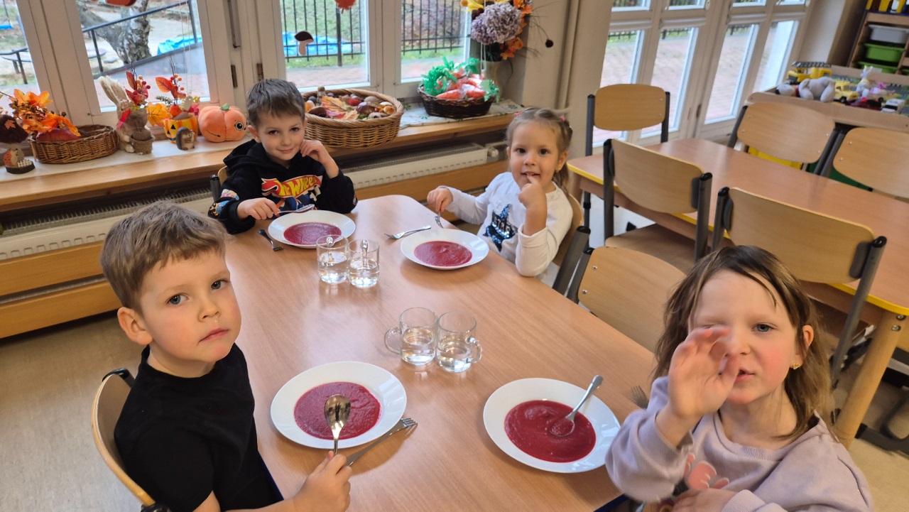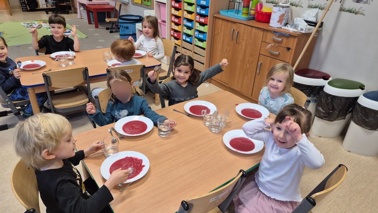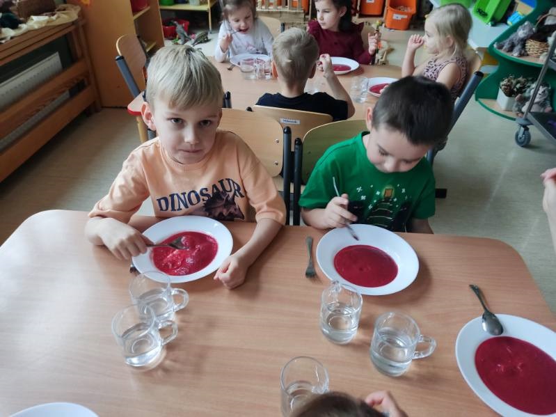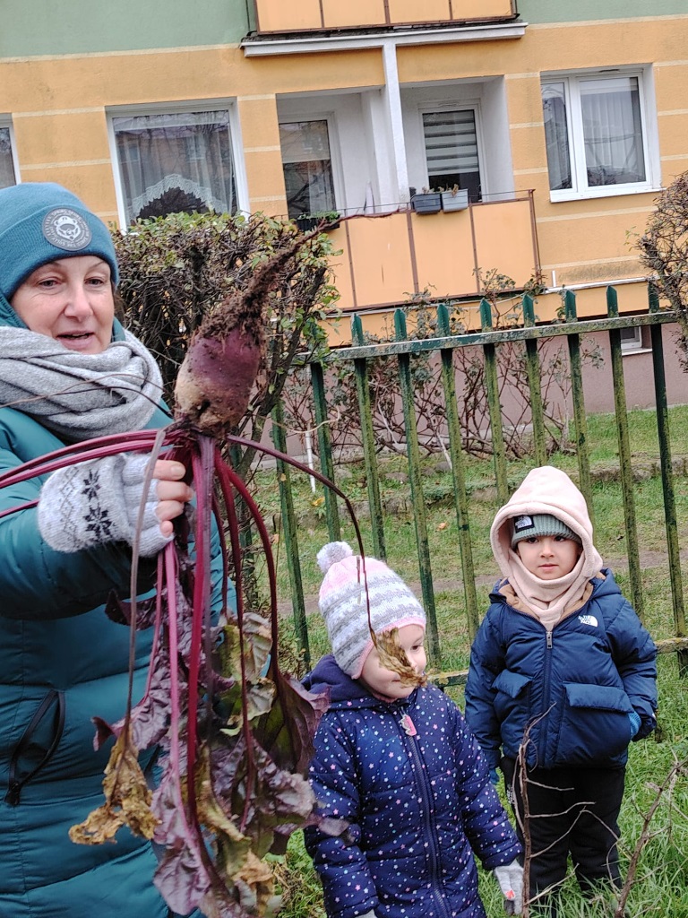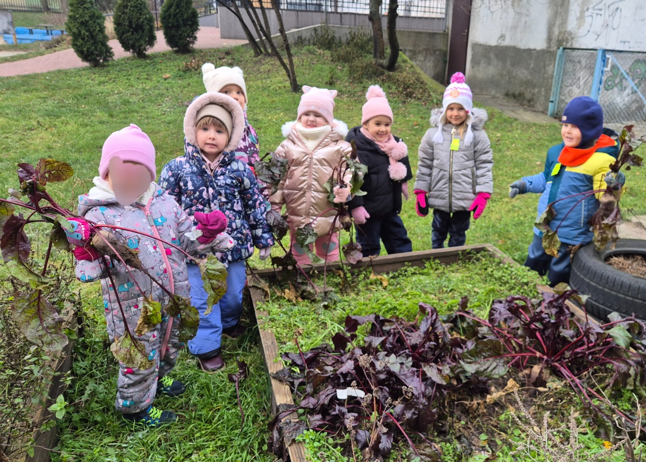 W przedszkolu Wesołe Skrzaty odbyło się wyjątkowe święto – Dzień Buraka. To właśnie tego dnia przedszkolny ogródek stał się miejscem pełnym radości, ciekawości i czerwonych, lśniących buraczków. Dzieci z entuzjazmem ruszyły do grządek, aby własnoręcznie zebrać warzywa, o których na co dzień słyszą, lecz nie zawsze mają okazję je dotknąć czy zobaczyć, jak rosną. Podczas wspólnego zrywania buraków skrzaty uczyły się, że warzywa mają ogromną wartość – są zdrowe, kolorowe i pełne witamin. Maluchy poznały również, jak ważna jest praca w ogrodzie, cierpliwość oraz dbanie o przyrodę. Każdy zerwany burak był powodem do dumy i okazją do rozmów o zdrowym jedzeniu. Kulminacją dnia był oczywiście… obiad. Na przedszkolnych stołach pojawiła się pyszna zupa krem z buraka, którą dzieci zjadły ze smakiem, wiedząc, że powstała z ich własnych zbiorów. Aromatyczna, kremowa i pięknie różowa zupa zachwyciła zarówno przedszkolaków, jak i nauczycieli. Dzień Buraka okazał się nie tylko smaczną przygodą, ale także wartościową lekcją o zdrowiu, naturze i radości ze wspólnego działania. W „Wesołych Skrzatach” takie dni na długo zostają w pamięci!