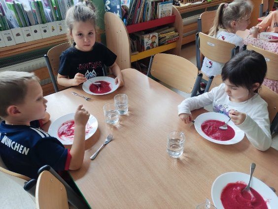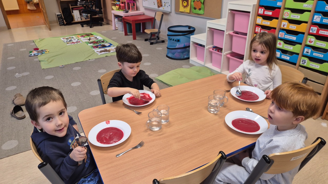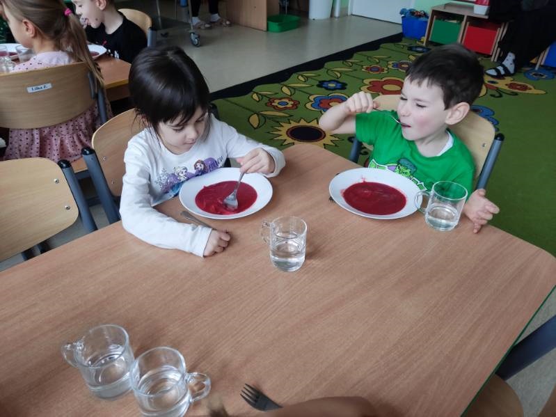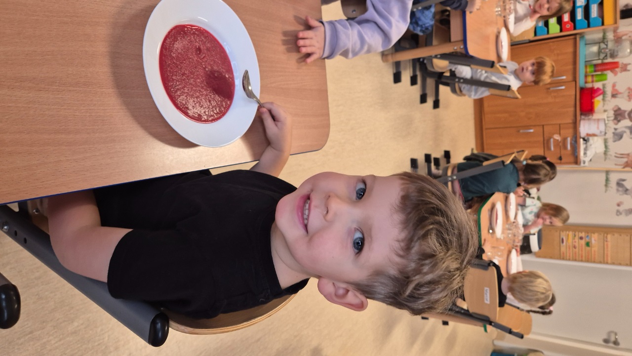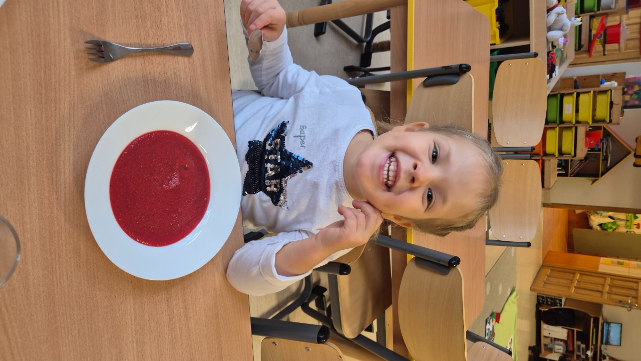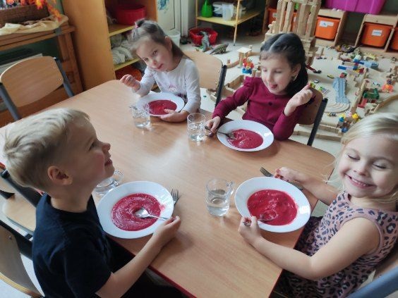 W przedszkolu Wesołe Skrzaty odbyło się wyjątkowe święto – Dzień Buraka. To właśnie tego dnia przedszkolny ogródek stał się miejscem pełnym radości, ciekawości i czerwonych, lśniących buraczków. Dzieci z entuzjazmem ruszyły do grządek, aby własnoręcznie zebrać warzywa, o których na co dzień słyszą, lecz nie zawsze mają okazję je dotknąć czy zobaczyć, jak rosną. Podczas wspólnego zrywania buraków skrzaty uczyły się, że warzywa mają ogromną wartość – są zdrowe, kolorowe i pełne witamin. Maluchy poznały również, jak ważna jest praca w ogrodzie, cierpliwość oraz dbanie o przyrodę. Każdy zerwany burak był powodem do dumy i okazją do rozmów o zdrowym jedzeniu. Kulminacją dnia był oczywiście… obiad. Na przedszkolnych stołach pojawiła się pyszna zupa krem z buraka, którą dzieci zjadły ze smakiem, wiedząc, że powstała z ich własnych zbiorów. Aromatyczna, kremowa i pięknie różowa zupa zachwyciła zarówno przedszkolaków, jak i nauczycieli. Dzień Buraka okazał się nie tylko smaczną przygodą, ale także wartościową lekcją o zdrowiu, naturze i radości ze wspólnego działania. W „Wesołych Skrzatach” takie dni na długo zostają w pamięci!