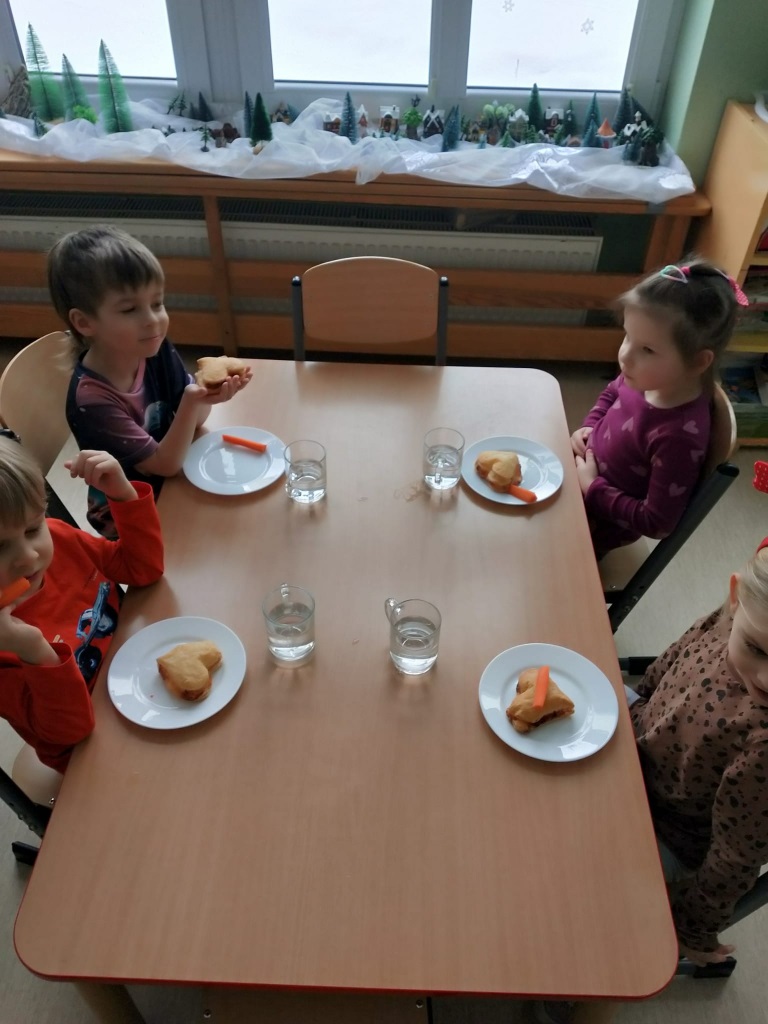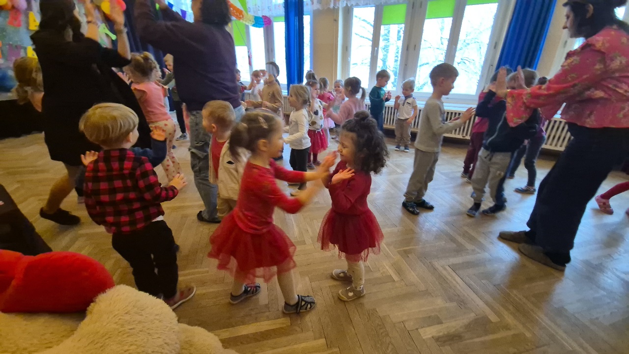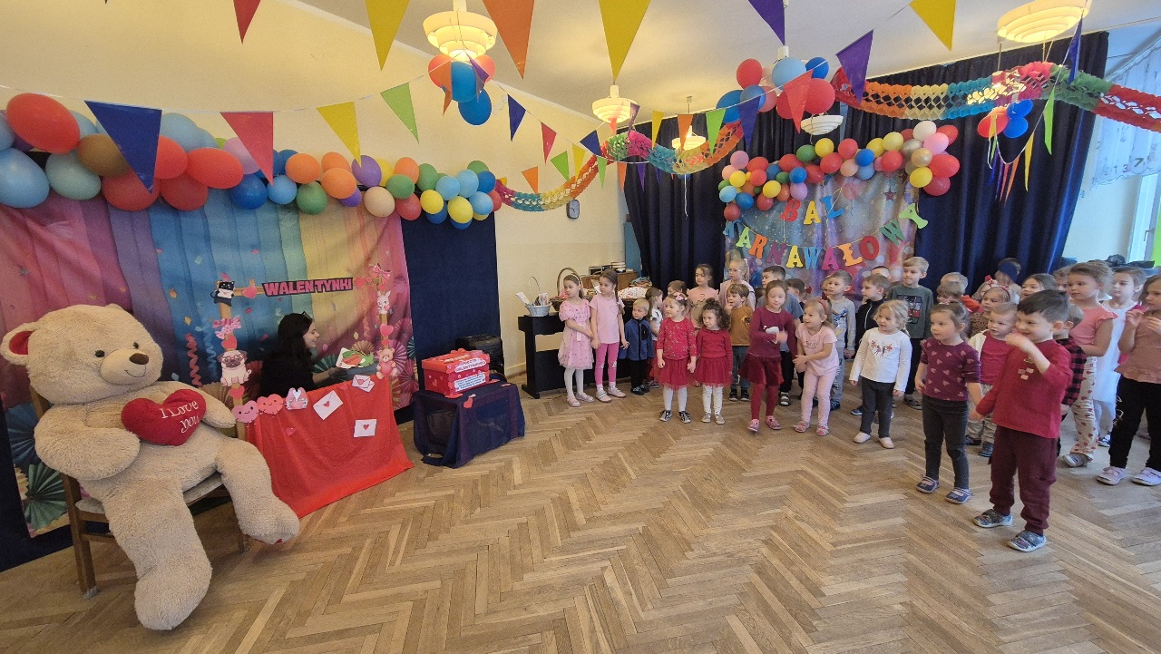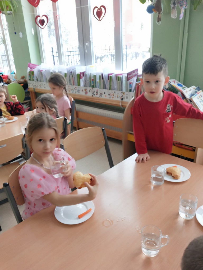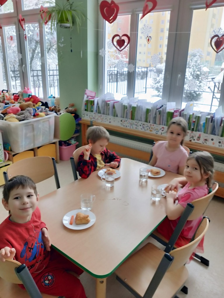 W tym dniu nasze Przedszkolaki poznały historię święta oraz dowiedziały się, dlaczego obchodzimy Walentynki. Nie zabrakło rozmów o przyjaźni, życzliwości i sposobach okazywania uczuć na co dzień. Najwięcej radości sprawiło dzieciom przygotowanie i wręczanie walentynek, które wywołały wiele uśmiechów i miłych emocji. Dzień Walentynowy z pewnością możemy zaliczyć do bardzo udanych. Dzieci wyniosły z niego ważne przesłanie – że kochać należy nie tylko od święta, ale przede wszystkim na co dzień. Dowiedziały się, że nawet drobne gesty i miłe uczynki mogą sprawić drugiej osobie ogromną radość i wcale nie muszą być materialne. Wesołe Skrzaty przekonały się, że miłość, życzliwość i dobro można okazywać zawsze i wszędzie – bez względu na okoliczności – najważniejsze jest, aby pamiętać o tym każdego dnia. A na podwieczorek czekała na dzieci miła niespodzianka przygotowana przez Panią Hanię naszą kucharkę.