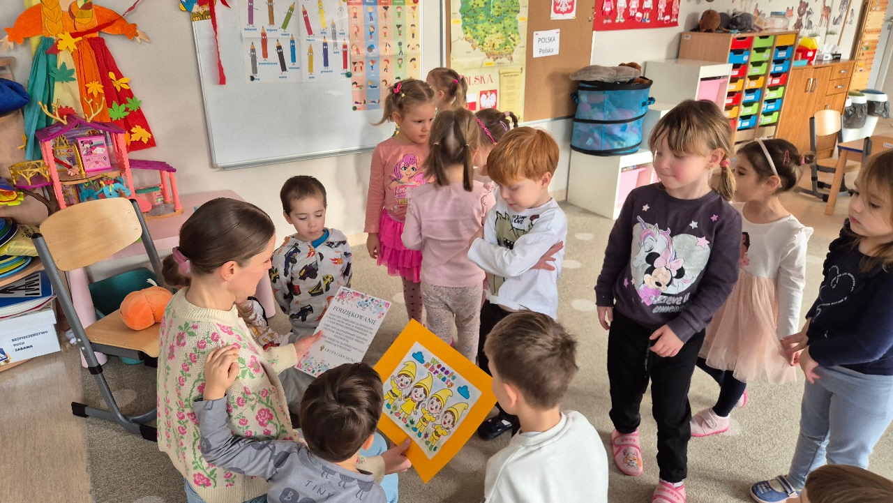 We wtorek 17.11 gościem w grupie Chochliki była Mama Adasia, która poprowadziła niezwykle kreatywne zajęcia z wykorzystaniem sztucznej inteligencji. Dzieci wraz z gościem w specjalnym kreatorze stworzyły skrzata–Chochlika, wybierając jego wygląd, cechy i zachowanie. Dzięki narzędziom Chochlik stał się interaktywny – potrafił latać, ruszać się, a nawet jeść lody, co wzbudziło ogromne zainteresowanie i śmiech wśród grupy. Podczas warsztatów dzieci nie tylko uczyły się podstaw nowoczesnych technologii, ale także rozwijały wyobraźnię, wspólnie podejmując decyzje o tym, jak będzie wyglądać ich postać. Były bardzo zaangażowane i świetnie się bawiły, obserwując, jak ich pomysł zamienia się w ruchomą postać na ekranie. Zajęcia okazały się inspirującym doświadczeniem, pokazując, że sztuczna inteligencja może być fantastycznym narzędziem do twórczej zabawy i nauki.