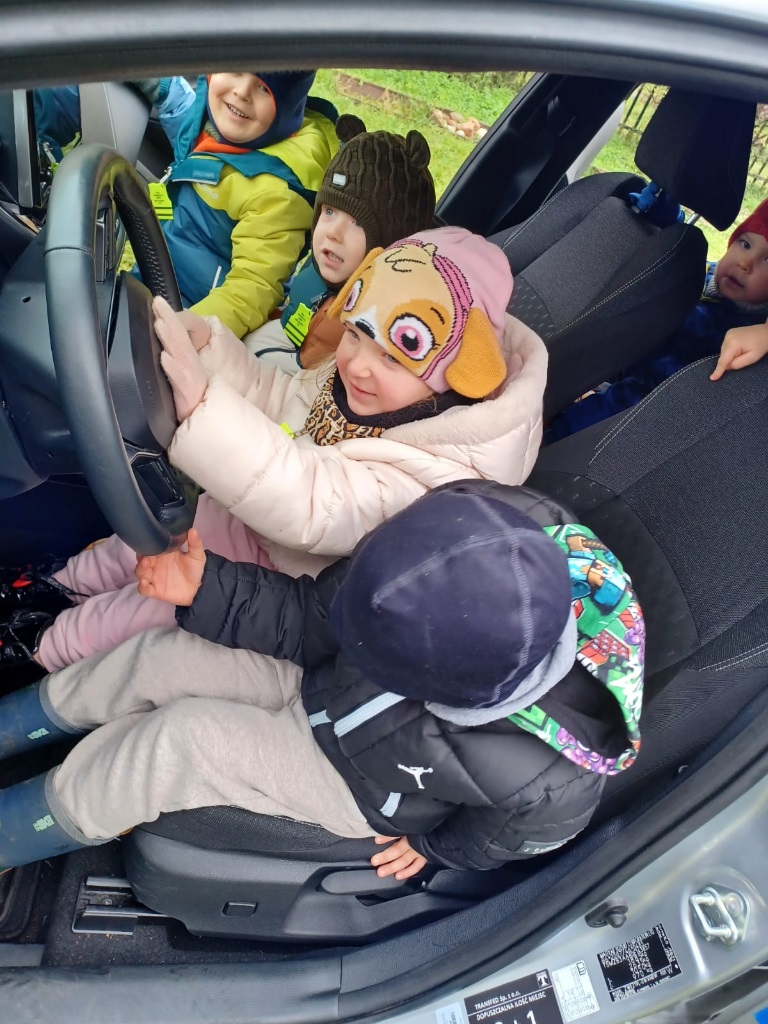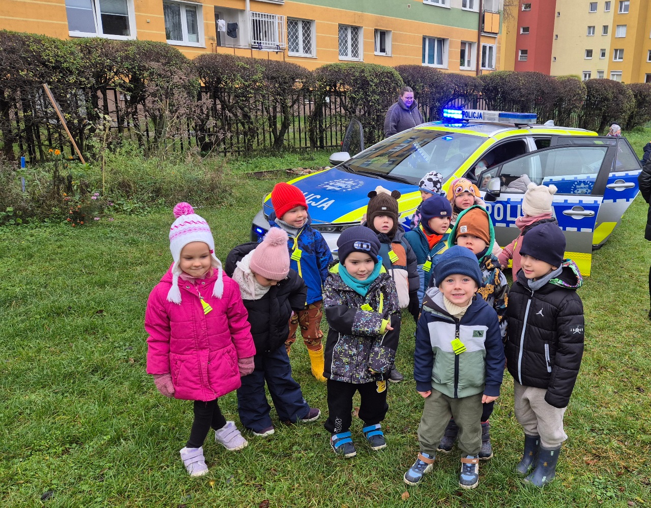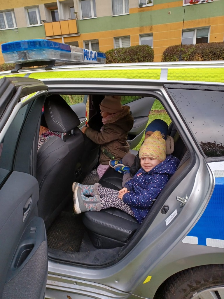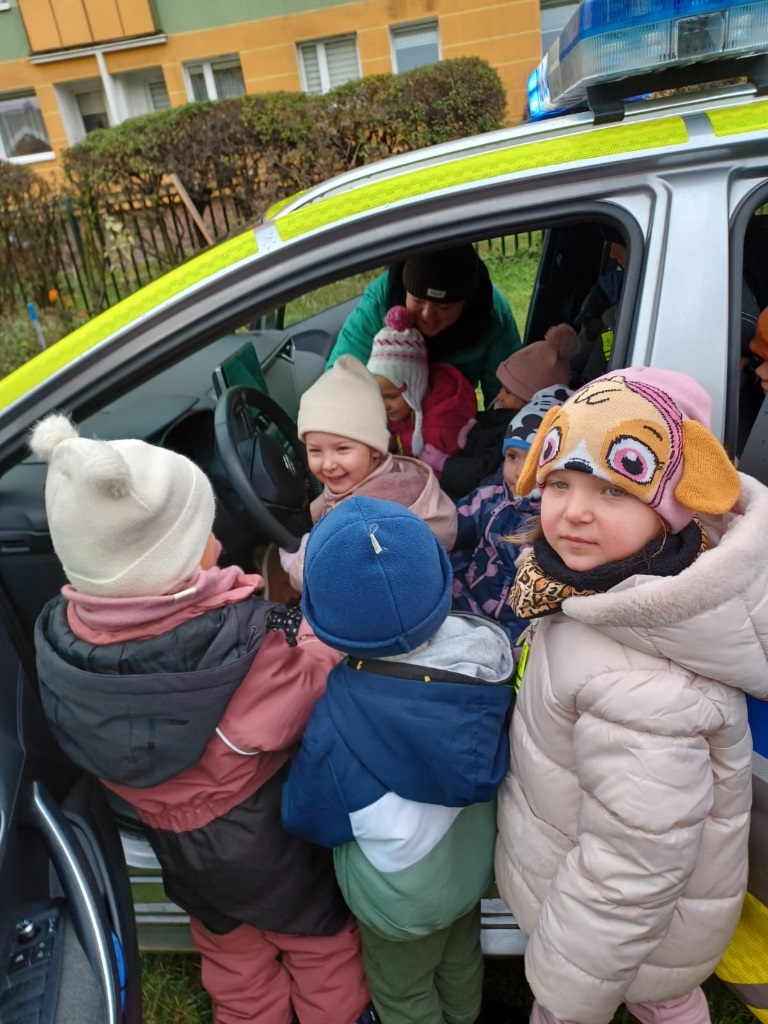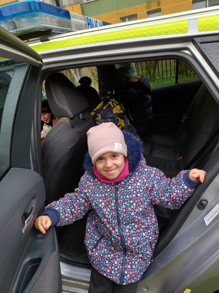 W naszym przedszkolu „Wesołe Skrzaty” odbyło się wyjątkowe spotkanie z panią aspirant z komisariatu w Nowym Porcie. Policjantka w ciekawy i przystępny sposób opowiedziała dzieciom o swojej pracy oraz przypomniała najważniejsze zasady bezpieczeństwa. Podczas rozmowy i poprzez wspólną zabawę funkcjonariuszka utrwalała z najmłodszymi zasady prawidłowego zachowania na drodze, a także w domu, na podwórku i w przedszkolu. Omówiła wybrane zasady ruchu drogowego, zwracając uwagę na bezpieczne przechodzenie przez jezdnię, znaczenie sygnalizacji świetlnej i odpowiedzialne zachowanie w pobliżu ulicy. Zachęcała także dzieci do korzystania z odblasków i wyjaśniła, dlaczego są one tak ważne – szczególnie w okresie słabszej widoczności. Największą atrakcją był pokaz policyjnego radiowozu. Na zakończenie spotkania dzieci mogły wsiąść za kierownicę pojazdu i zobaczyć podstawowy sprzęt, jakim na co dzień posługują się policjanci. Serdecznie dziękujemy za poświęcony czas i inspirującą lekcję bezpieczeństwa.