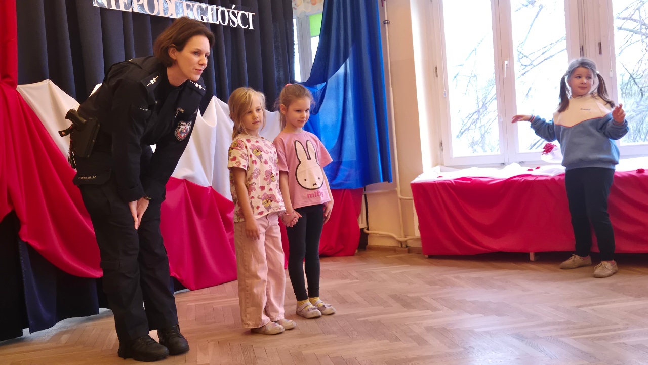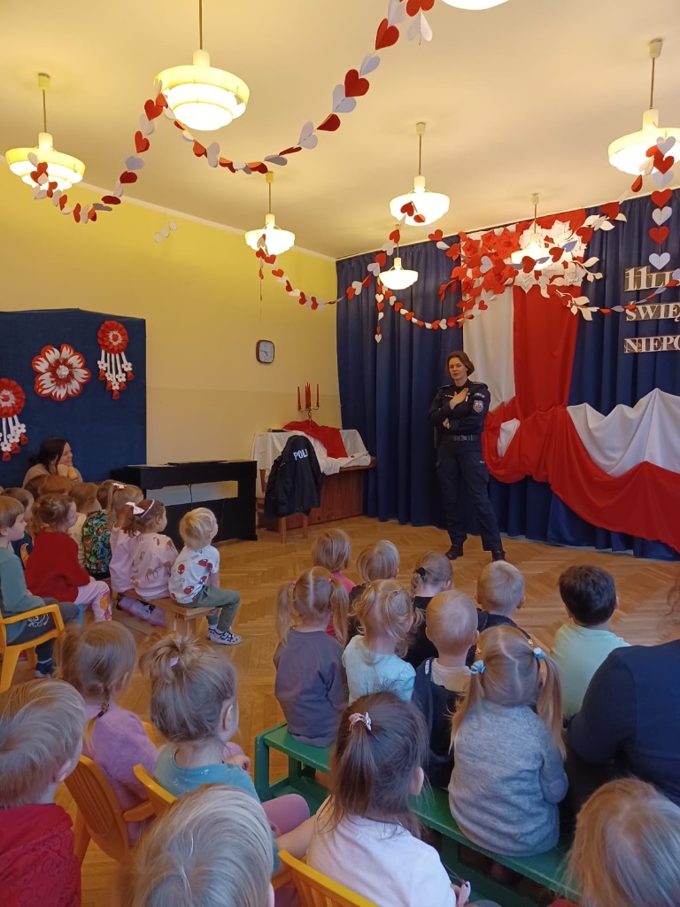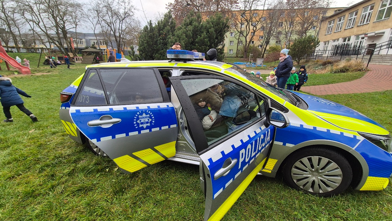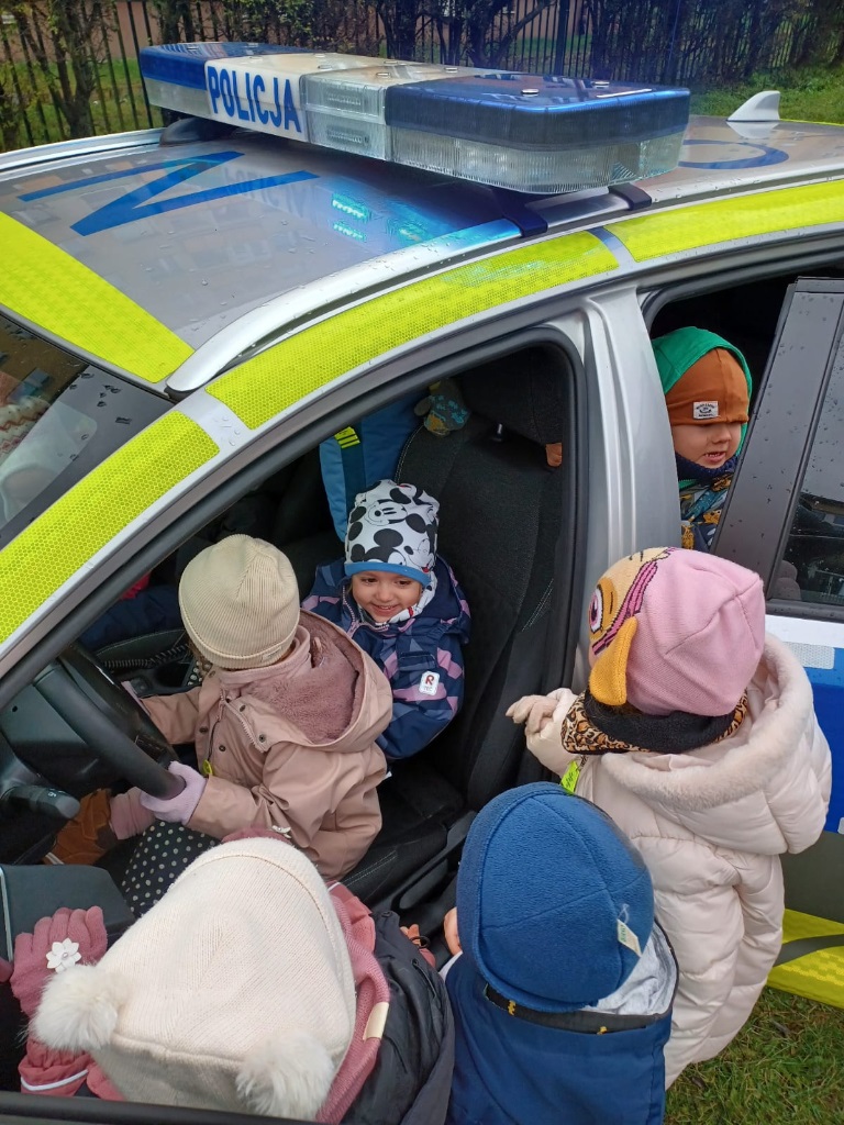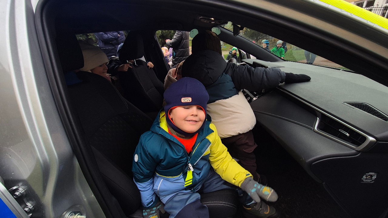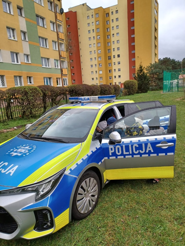 W naszym przedszkolu „Wesołe Skrzaty” odbyło się wyjątkowe spotkanie z panią aspirant z komisariatu w Nowym Porcie. Policjantka w ciekawy i przystępny sposób opowiedziała dzieciom o swojej pracy oraz przypomniała najważniejsze zasady bezpieczeństwa. Podczas rozmowy i poprzez wspólną zabawę funkcjonariuszka utrwalała z najmłodszymi zasady prawidłowego zachowania na drodze, a także w domu, na podwórku i w przedszkolu. Omówiła wybrane zasady ruchu drogowego, zwracając uwagę na bezpieczne przechodzenie przez jezdnię, znaczenie sygnalizacji świetlnej i odpowiedzialne zachowanie w pobliżu ulicy. Zachęcała także dzieci do korzystania z odblasków i wyjaśniła, dlaczego są one tak ważne – szczególnie w okresie słabszej widoczności. Największą atrakcją był pokaz policyjnego radiowozu. Na zakończenie spotkania dzieci mogły wsiąść za kierownicę pojazdu i zobaczyć podstawowy sprzęt, jakim na co dzień posługują się policjanci. Serdecznie dziękujemy za poświęcony czas i inspirującą lekcję bezpieczeństwa.