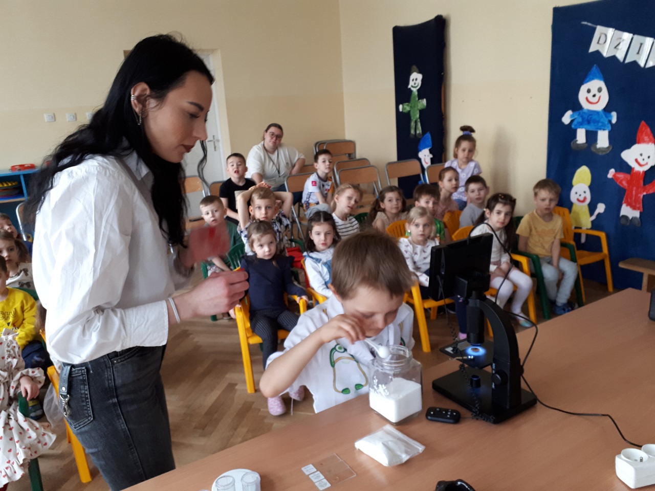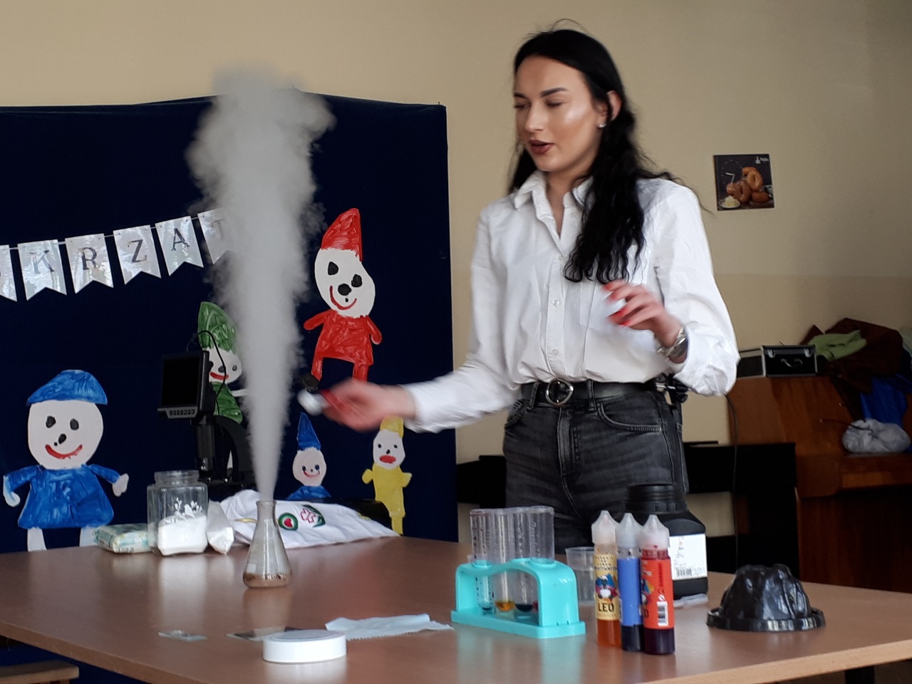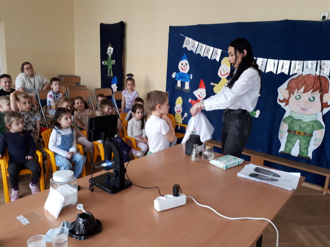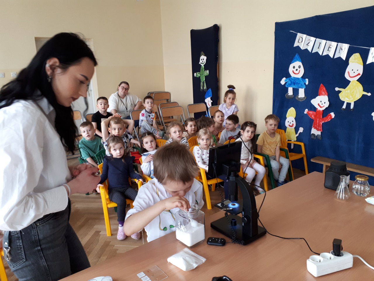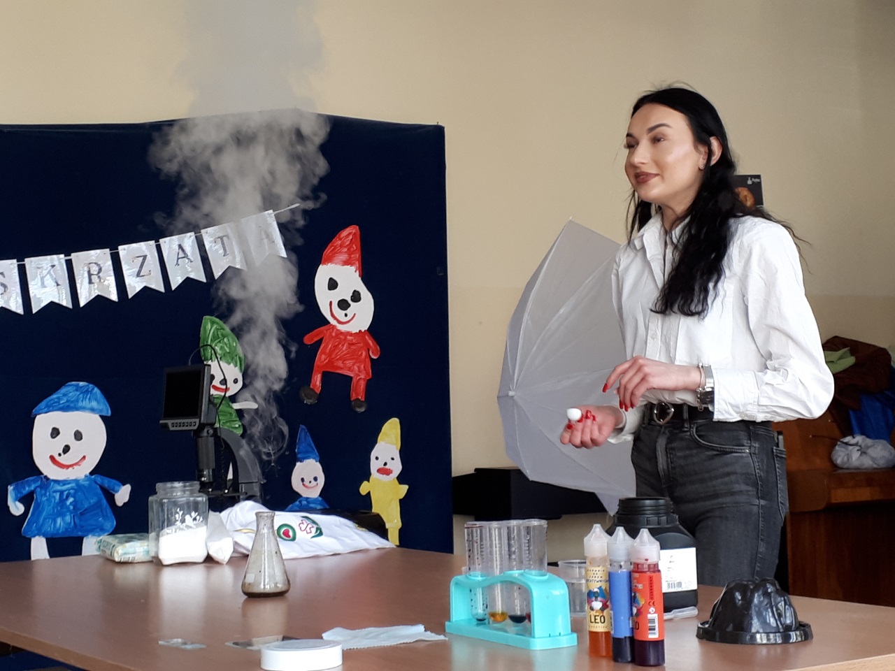 W przedszkolu „Wesołe Skrzaty” odbyły się niezwykłe warsztaty chemiczne ‘’. Nasze przedszkolaki miały okazję zamienić się w małych naukowców . Podczas zajęć dzieci obserwowały świat przez mikroskop, podziwiały wybuchający wulkan oraz z zaciekawieniem sprawdzały, jak „bucha” lokomotywa . Nie zabrakło radości, zdziwienia i fascynacji – bo nauka naprawdę potrafi zachwycać. Dziękujemy za wspaniałe doświadczenie i już nie możemy się doczekać kolejnych odkryć.