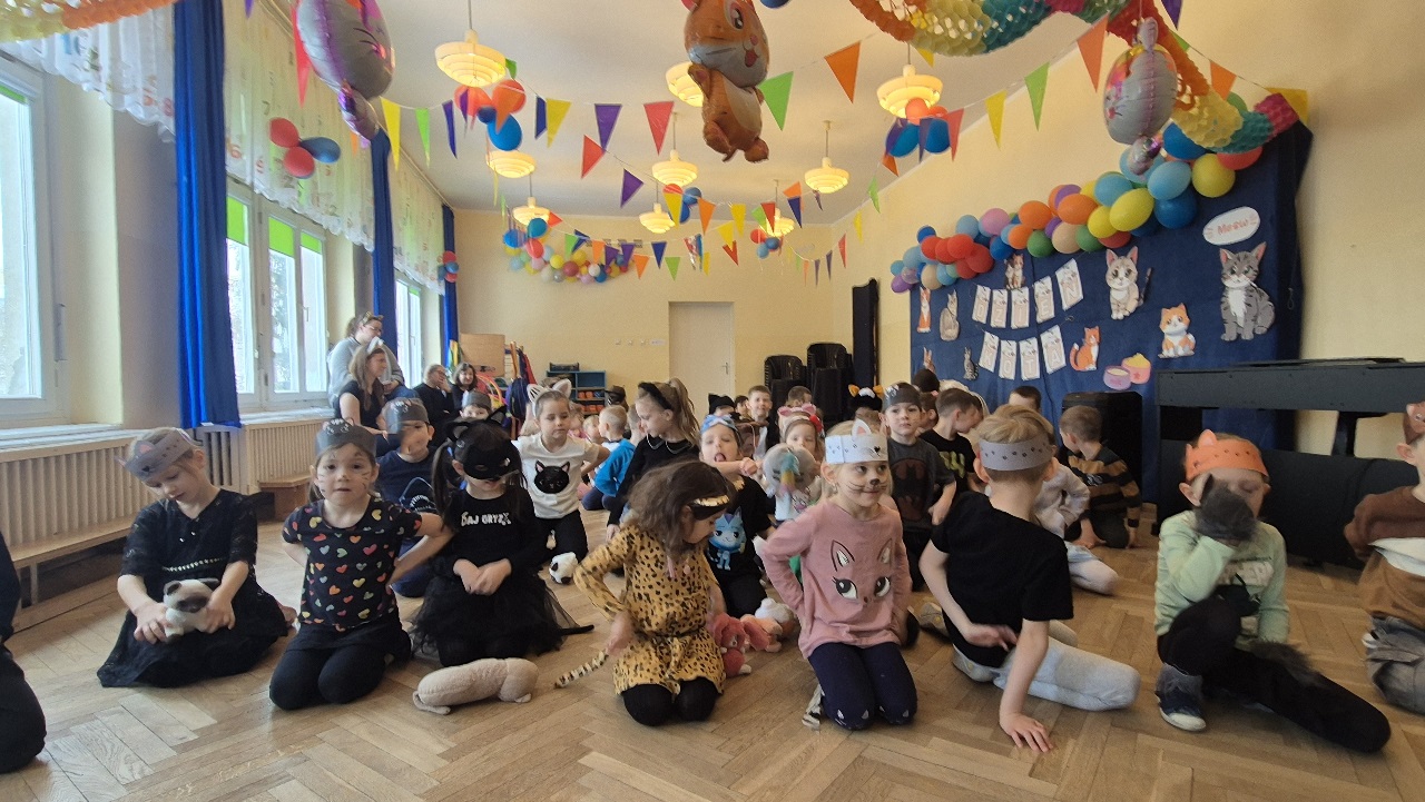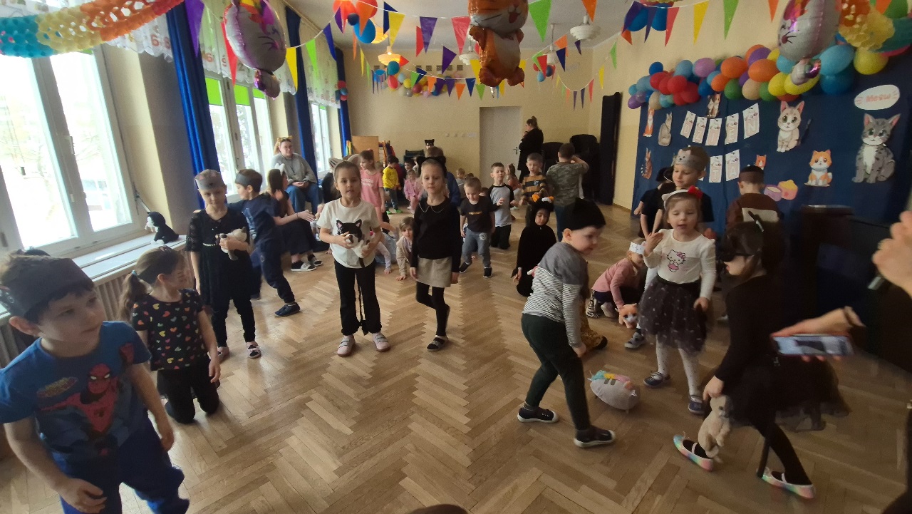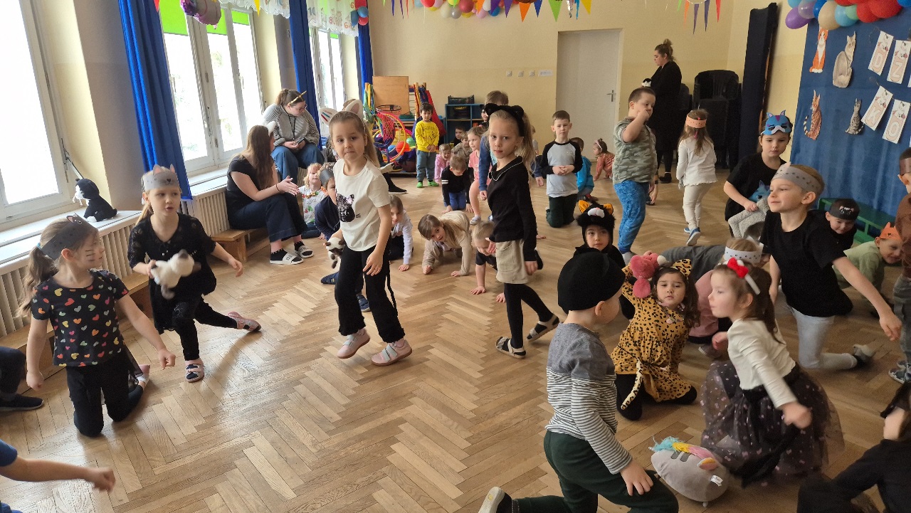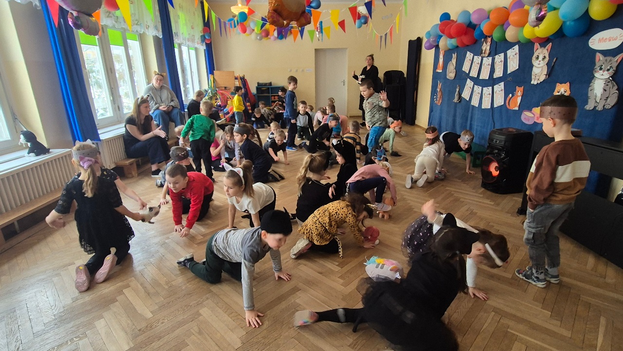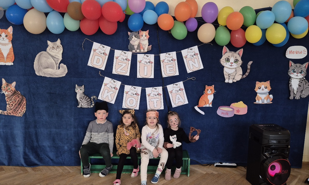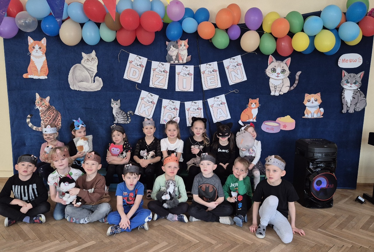 W naszym przedszkolu obchodziliśmy wyjątkowy Dzień Kota. Z tej okazji dzieci wzięły udział w radosnych zabawach i quizach, które odbyły się na sali gimnastycznej. Przedszkolaki z wielkim zaangażowaniem uczestniczyły w przygotowanych konkurencjach ruchowych, naśladowały kocie sposoby poruszania się, brały udział w zabawach zręcznościowych oraz rozwiązywały zagadki i quizy związane z kotami. Była to doskonała okazja do poszerzenia wiedzy o tych sympatycznych zwierzętach, a jednocześnie do rozwijania sprawności ruchowej i współpracy w grupie. Wspólna zabawa dostarczyła dzieciom wielu pozytywnych emocji i uśmiechu, a Dzień Kota na długo pozostanie w naszej pamięci jako pełen radości i kocich atrakcji. 🐾😊