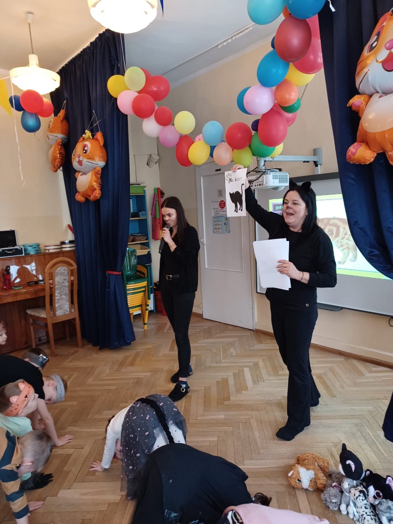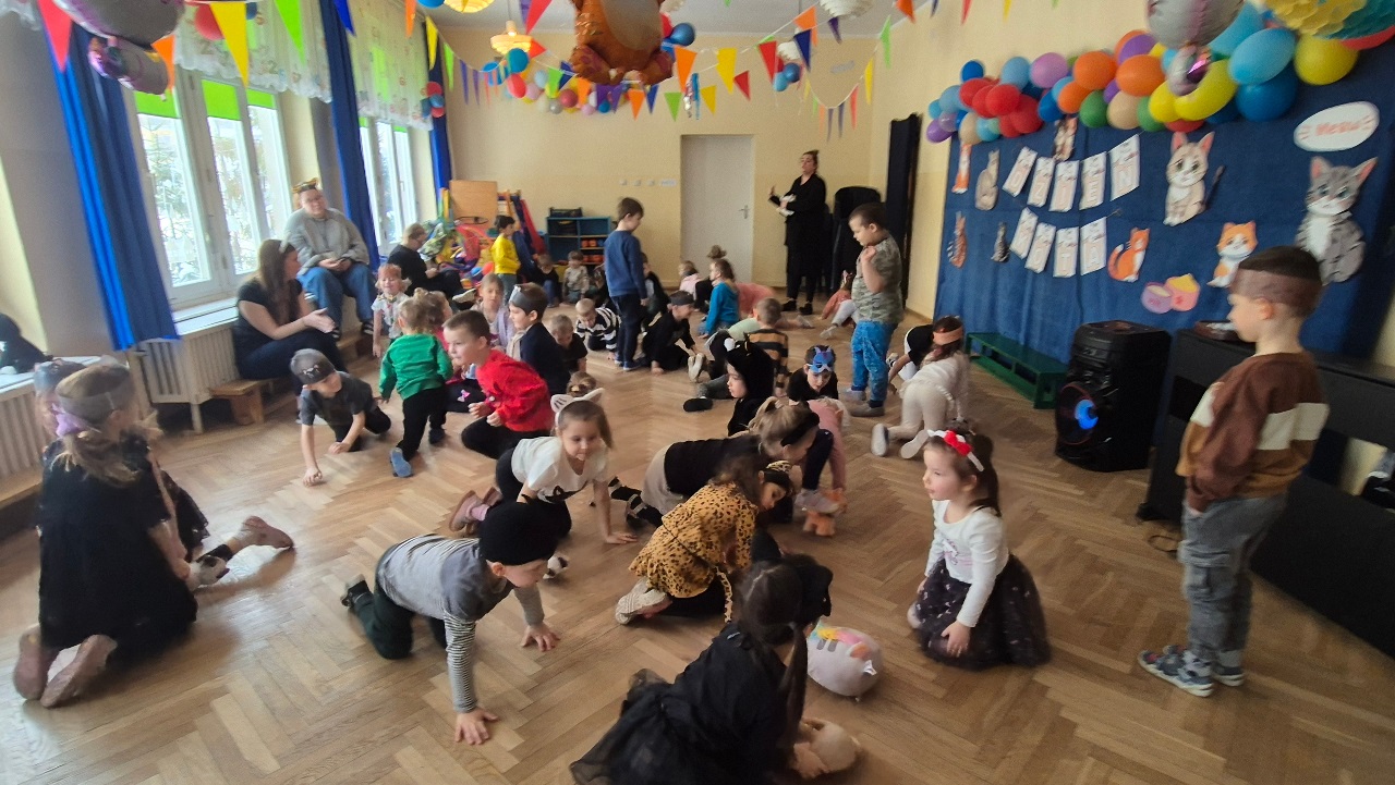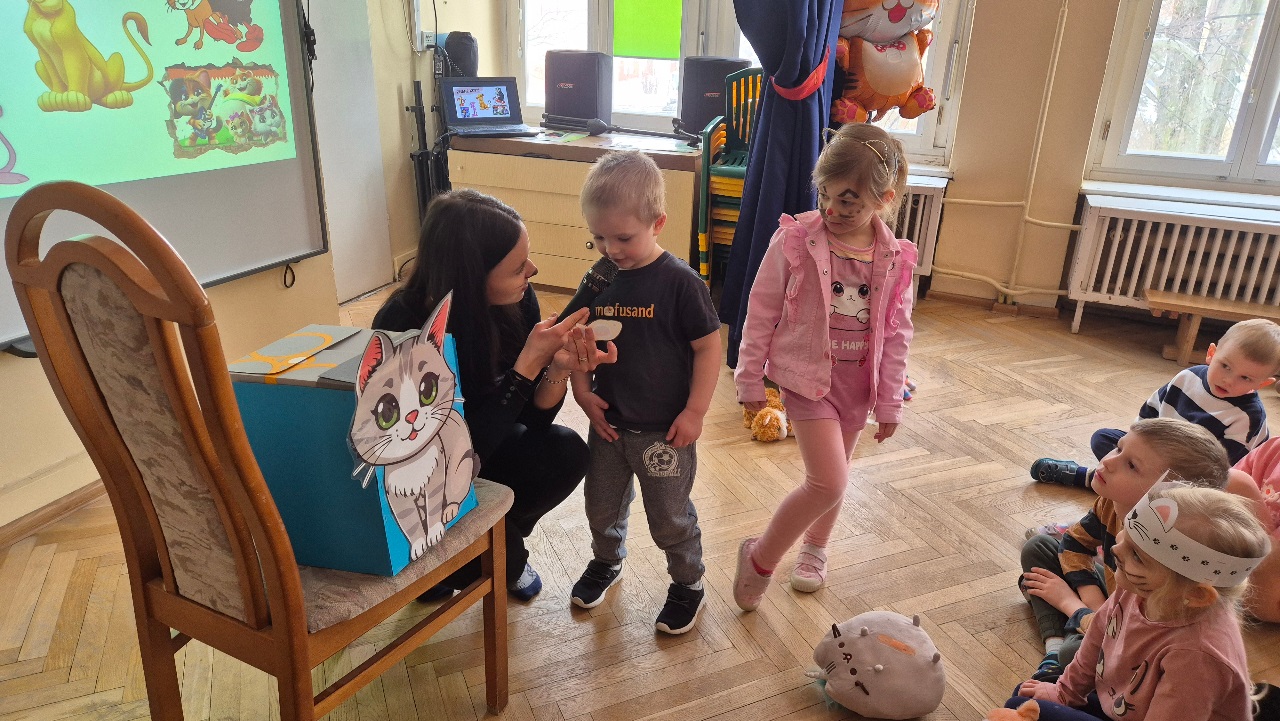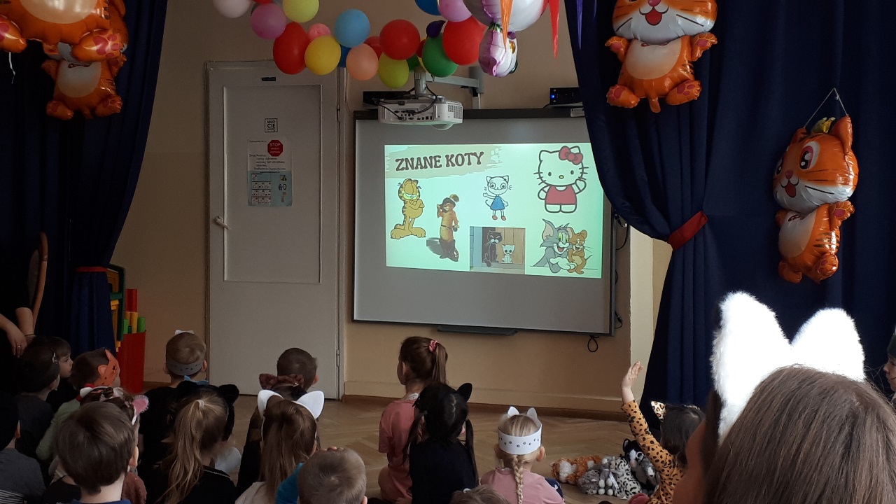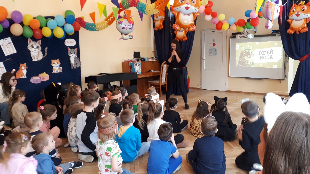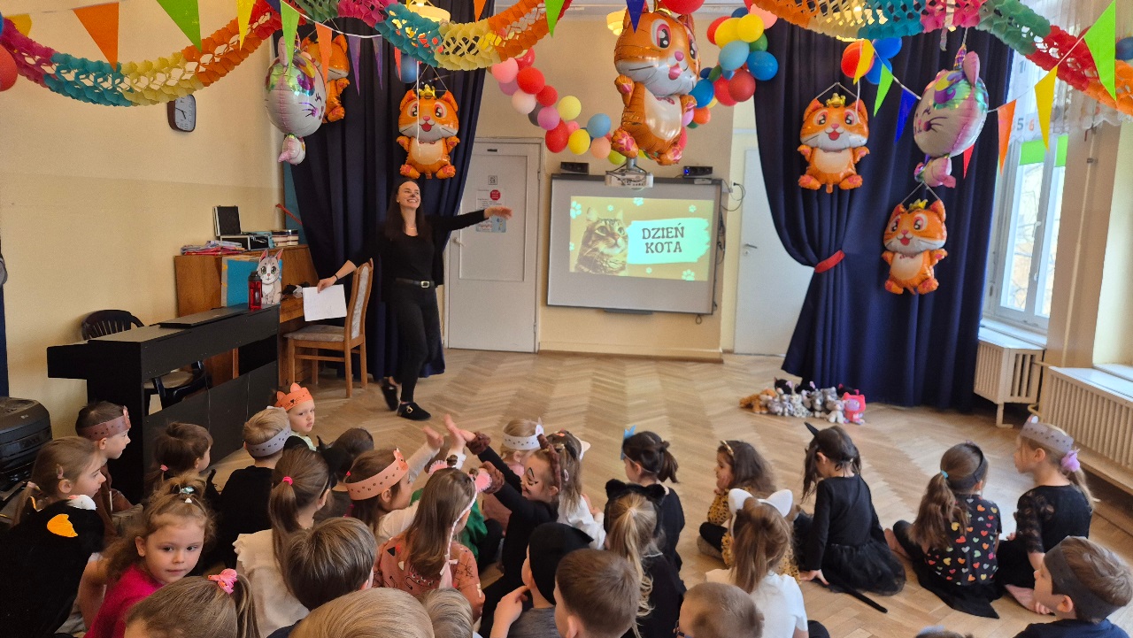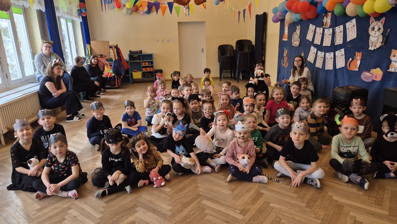 W naszym przedszkolu obchodziliśmy wyjątkowy Dzień Kota. Z tej okazji dzieci wzięły udział w radosnych zabawach i quizach, które odbyły się na sali gimnastycznej. Przedszkolaki z wielkim zaangażowaniem uczestniczyły w przygotowanych konkurencjach ruchowych, naśladowały kocie sposoby poruszania się, brały udział w zabawach zręcznościowych oraz rozwiązywały zagadki i quizy związane z kotami. Była to doskonała okazja do poszerzenia wiedzy o tych sympatycznych zwierzętach, a jednocześnie do rozwijania sprawności ruchowej i współpracy w grupie. Wspólna zabawa dostarczyła dzieciom wielu pozytywnych emocji i uśmiechu, a Dzień Kota na długo pozostanie w naszej pamięci jako pełen radości i kocich atrakcji. 🐾😊