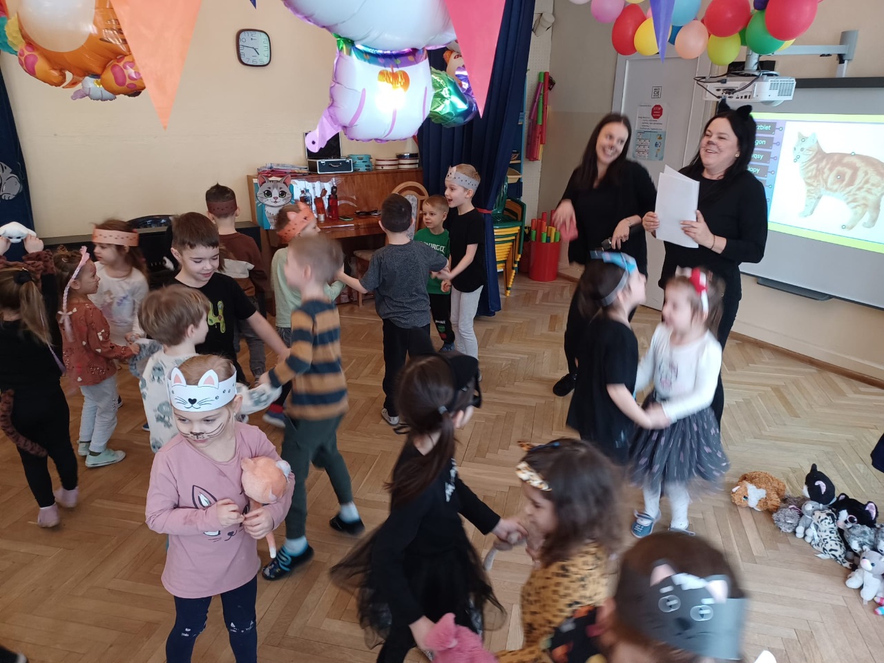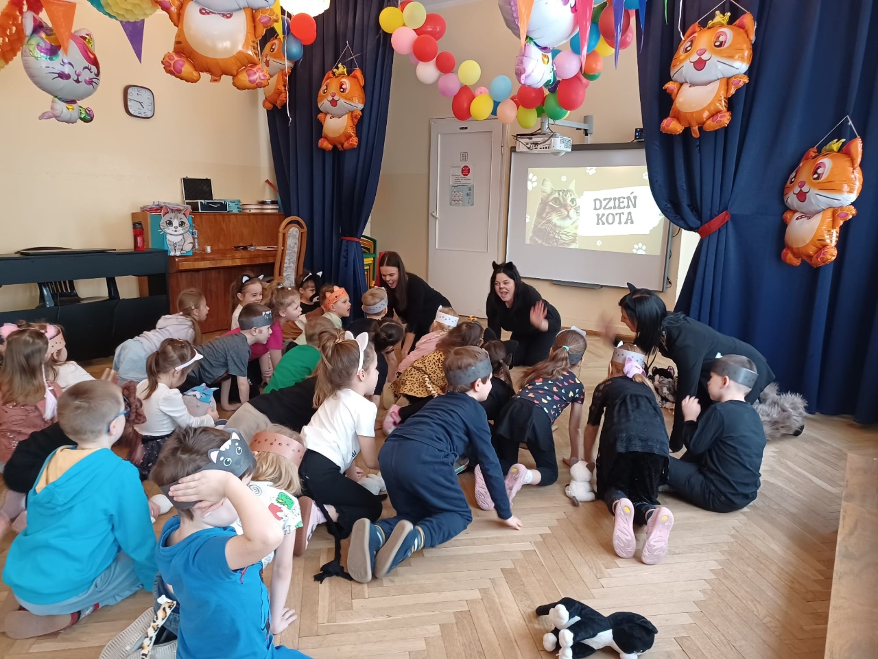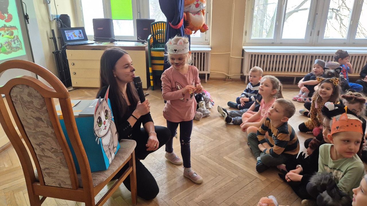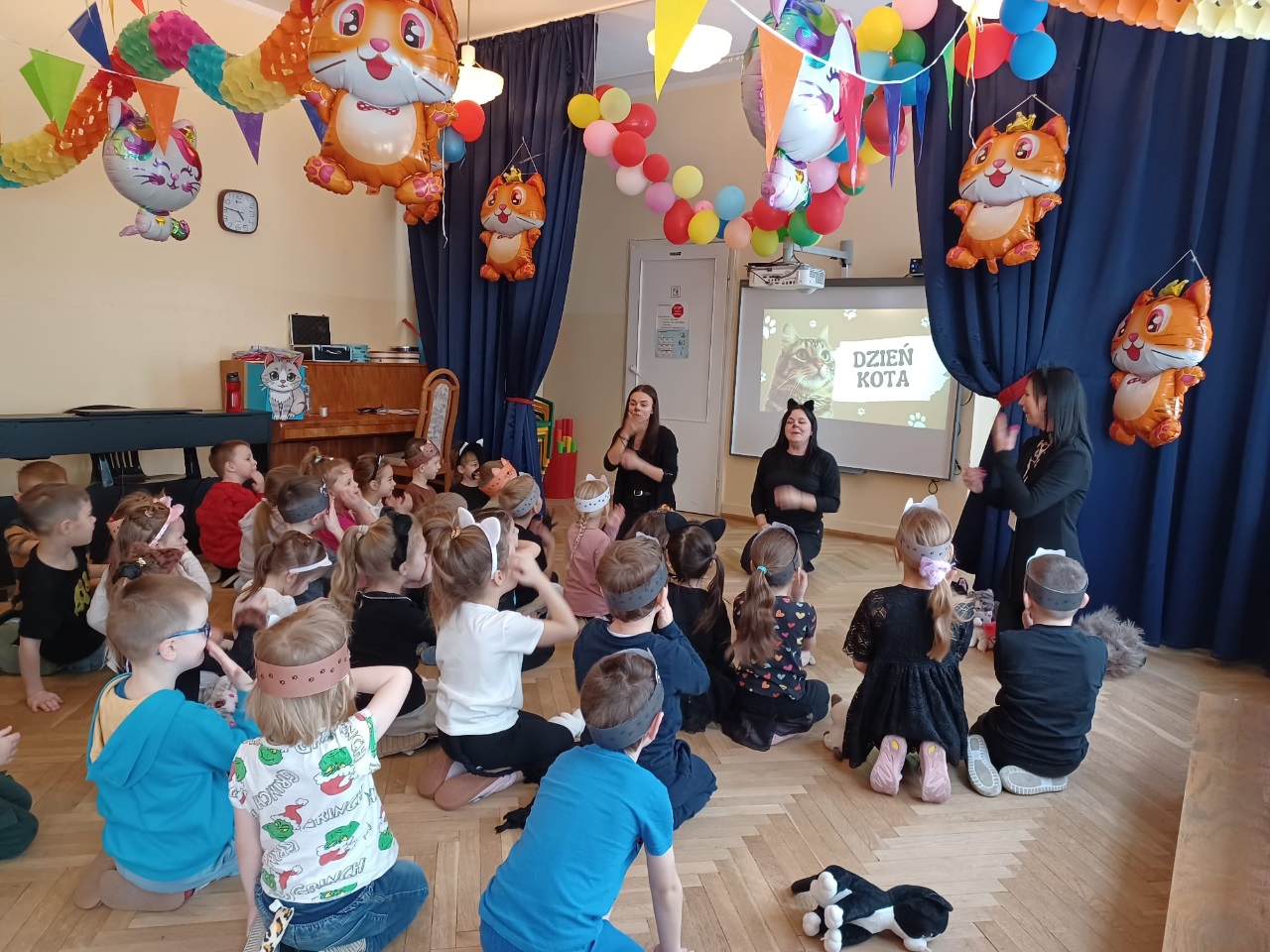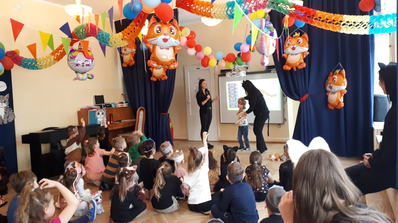 W naszym przedszkolu obchodziliśmy wyjątkowy Dzień Kota. Z tej okazji dzieci wzięły udział w radosnych zabawach i quizach, które odbyły się na sali gimnastycznej. Przedszkolaki z wielkim zaangażowaniem uczestniczyły w przygotowanych konkurencjach ruchowych, naśladowały kocie sposoby poruszania się, brały udział w zabawach zręcznościowych oraz rozwiązywały zagadki i quizy związane z kotami. Była to doskonała okazja do poszerzenia wiedzy o tych sympatycznych zwierzętach, a jednocześnie do rozwijania sprawności ruchowej i współpracy w grupie. Wspólna zabawa dostarczyła dzieciom wielu pozytywnych emocji i uśmiechu, a Dzień Kota na długo pozostanie w naszej pamięci jako pełen radości i kocich atrakcji. 🐾😊