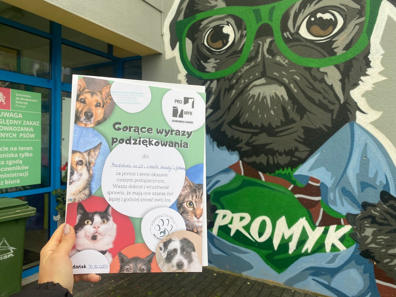 Z całego serca dziękujemy wszystkim Rodzicom i Dzieciom z Przedszkola nr 67 za ogromne zaangażowanie, empatię i otwarte serca. Dzięki Wam udało się zebrać wiele potrzebnych rzeczy — karmę, koce, zabawki i akcesoria — które już trafiły do podopiecznych schroniska. Wasza pomoc sprawiła, że te zwierzaki mają cieplejsze i radośniejsze dni. Dziękujemy za okazane dobro i wspólne działanie.
