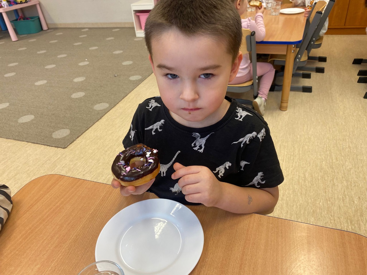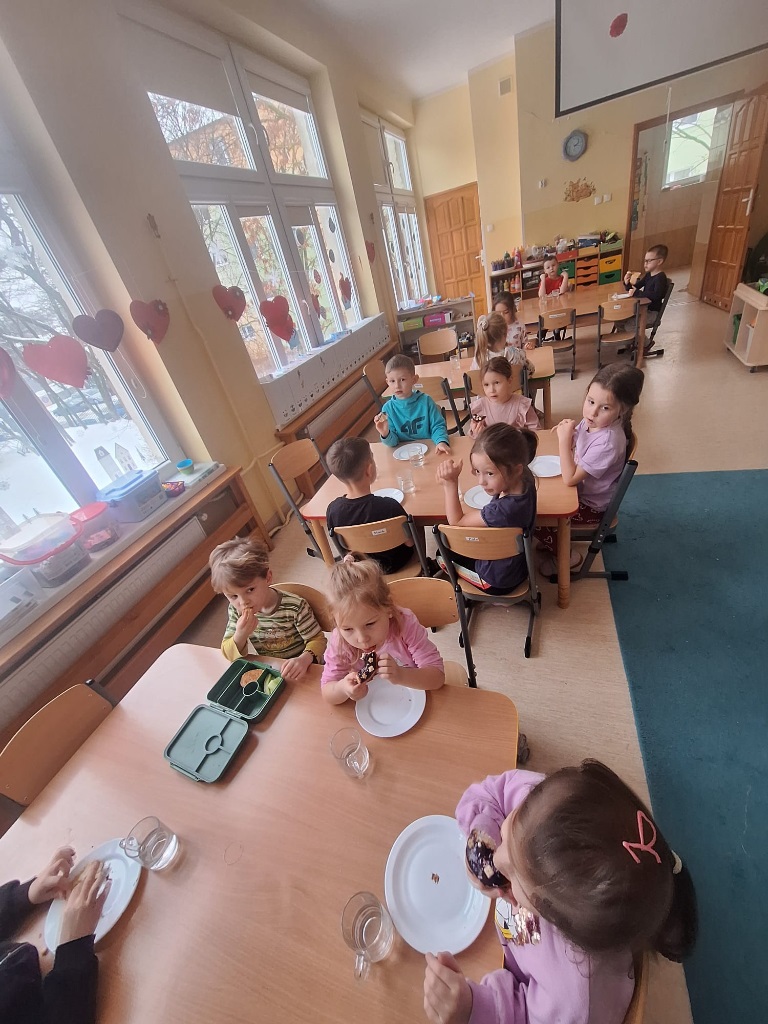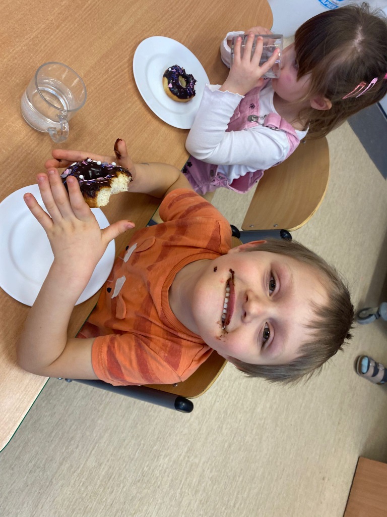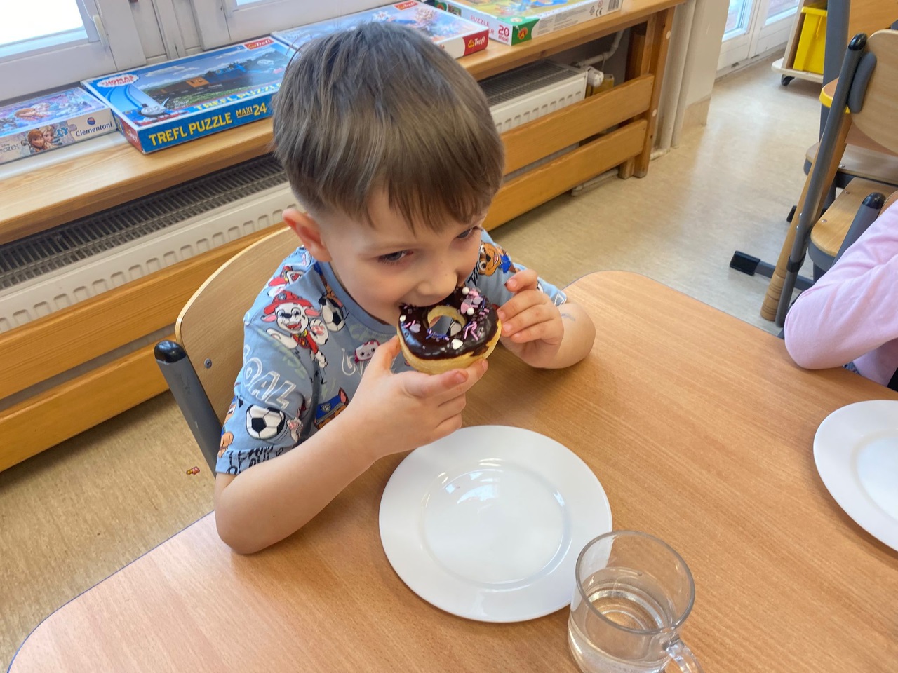Karnawał to czas uczt i wspaniałej zabawy. W tym wyjątkowym dniu Wesołe Skrzaty poznały tradycje i obrzędy związane z Tłustym Czwartkiem. W poszczególnych grupach odbyły się zabawy muzyczne, ruchowe oraz matematyczne, które wprowadziły dzieci w radosny nastrój. Na wszystkich czekał również słodki poczęstunek – pyszne, pieczone pączki przygotowane przez naszą Panią kucharkę Hanię. To był dzień pełen uśmiechu, zabawy i kultywowania pięknej tradycji.