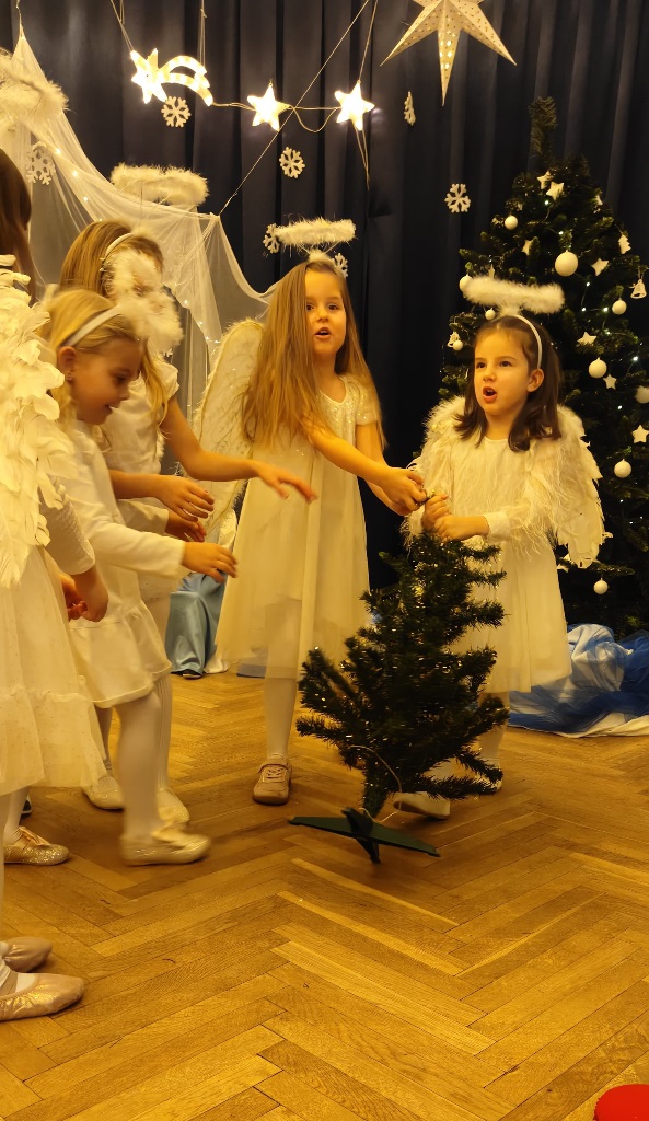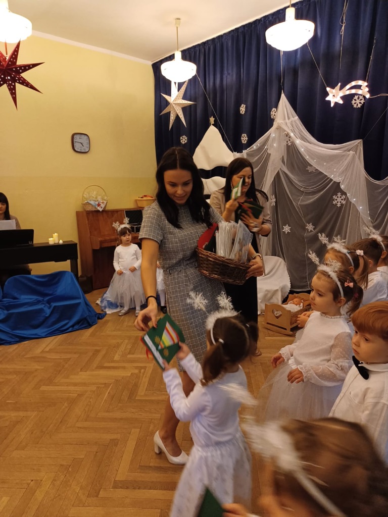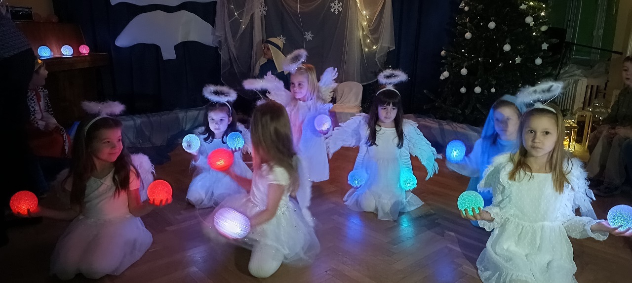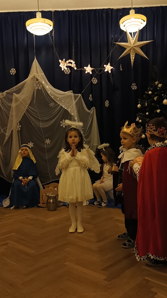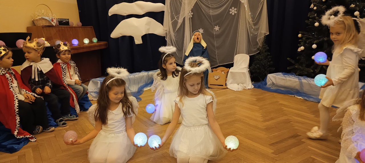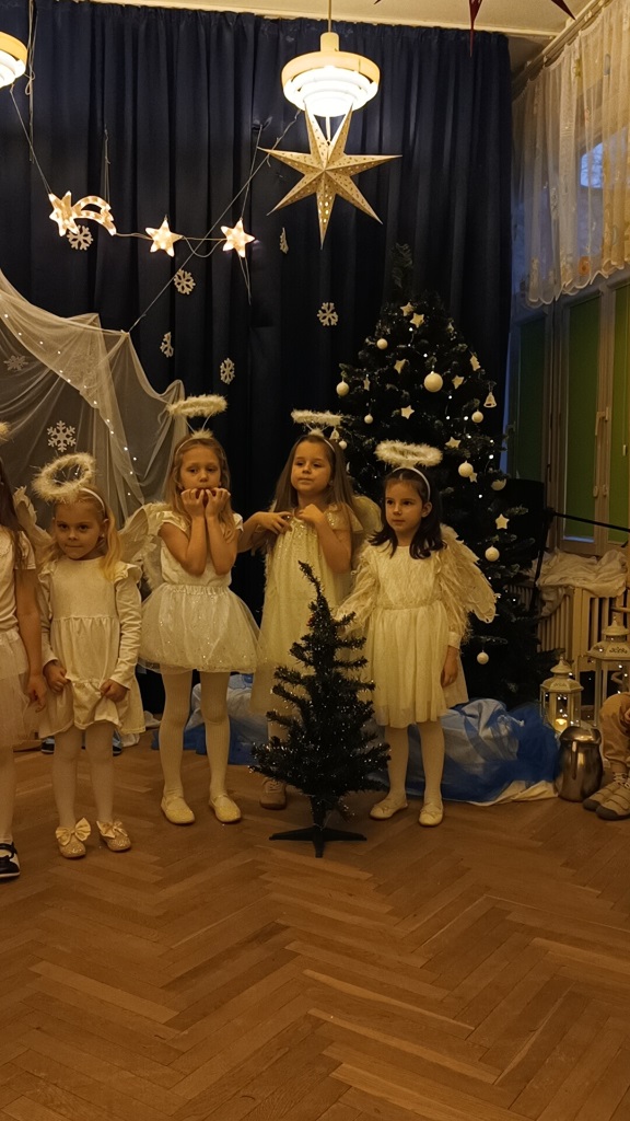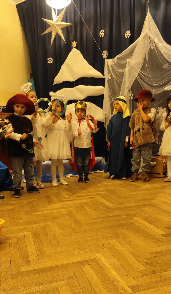 Już od 18 grudnia przedszkolaki z „Wesołych Skrzatów” przygotowały dla swoich bliskich Jasełka. Piękna sceneria oraz śpiew kolęd i pastorałek wprowadziły wszystkich zgromadzonych w prawdziwie świąteczny nastrój. Dzieci z ogromnym zaangażowaniem wcieliły się w postacie związane z narodzinami Pana Jezusa, prezentując swoje umiejętności recytatorskie i wokalne. Na scenie pojawili się Józef i Maryja, aniołowie, pastuszkowie, Trzej Królowie oraz dzieci. Wszyscy, w przepięknych strojach przygotowanych przez Rodziców, zaprezentowali się doskonale na tle bożonarodzeniowej dekoracji. Każda z grup „Wesołych Skrzatów” przedstawiła swój program artystyczny, sprawiając Rodzicom wiele radości i wzruszeń.