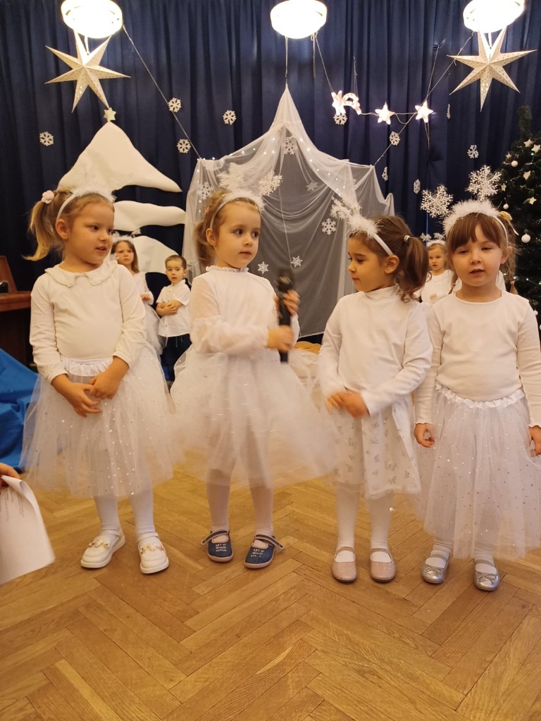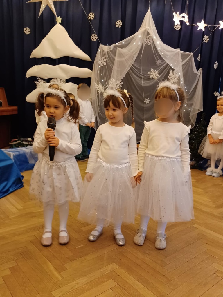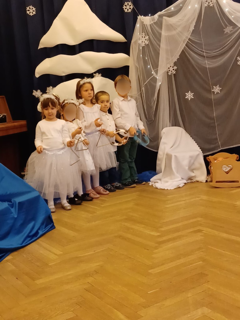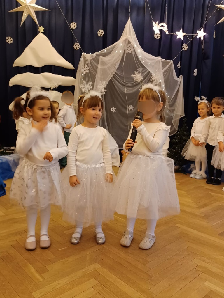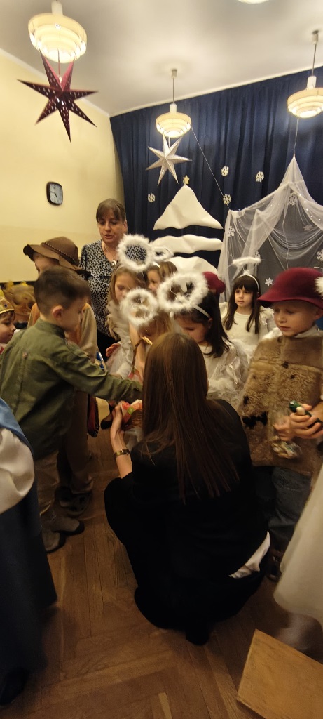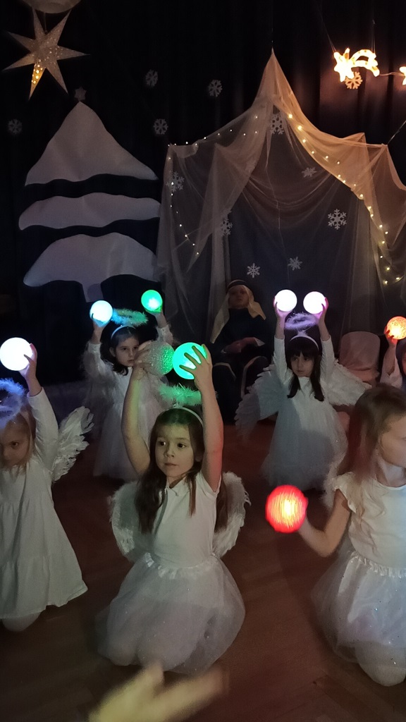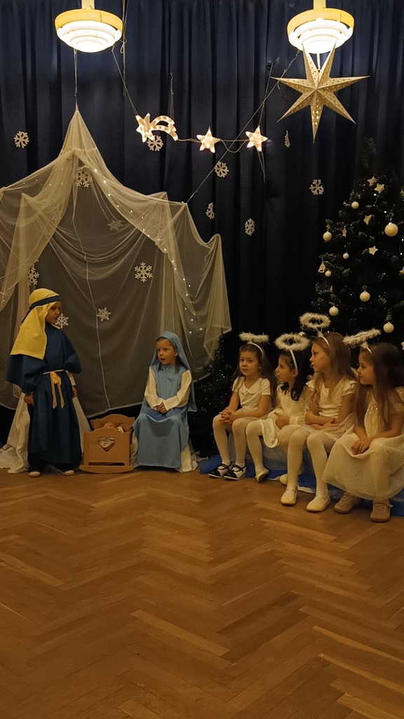 Już od 18 grudnia przedszkolaki z „Wesołych Skrzatów” przygotowały dla swoich bliskich Jasełka. Piękna sceneria oraz śpiew kolęd i pastorałek wprowadziły wszystkich zgromadzonych w prawdziwie świąteczny nastrój. Dzieci z ogromnym zaangażowaniem wcieliły się w postacie związane z narodzinami Pana Jezusa, prezentując swoje umiejętności recytatorskie i wokalne. Na scenie pojawili się Józef i Maryja, aniołowie, pastuszkowie, Trzej Królowie oraz dzieci. Wszyscy, w przepięknych strojach przygotowanych przez Rodziców, zaprezentowali się doskonale na tle bożonarodzeniowej dekoracji. Każda z grup „Wesołych Skrzatów” przedstawiła swój program artystyczny, sprawiając Rodzicom wiele radości i wzruszeń.