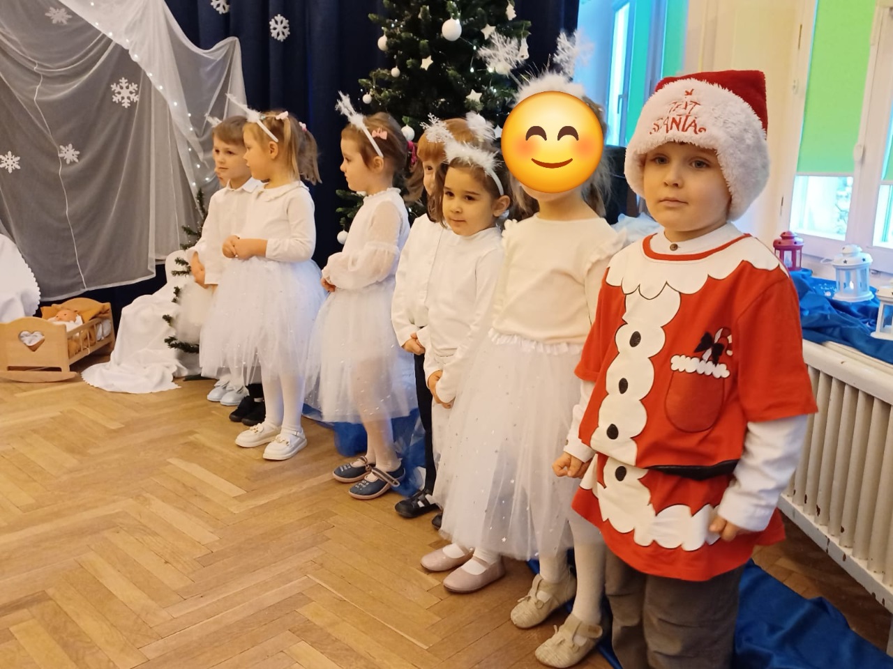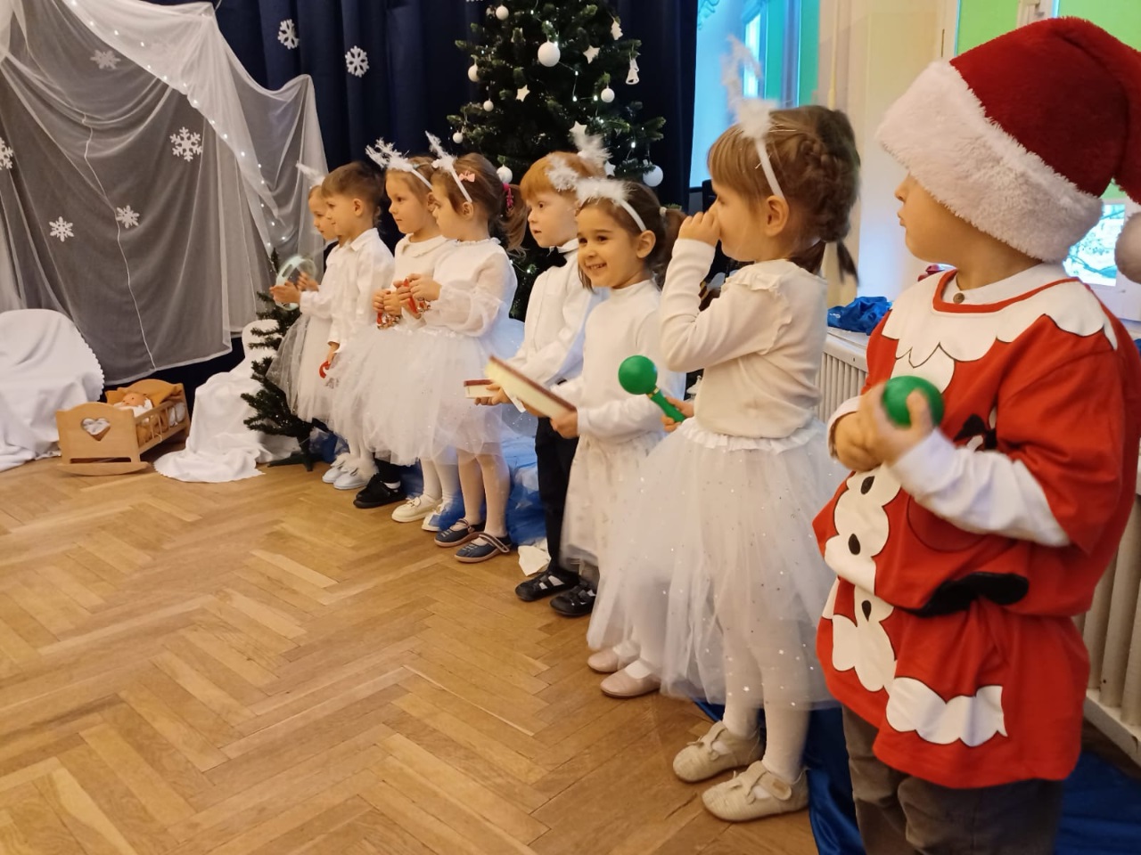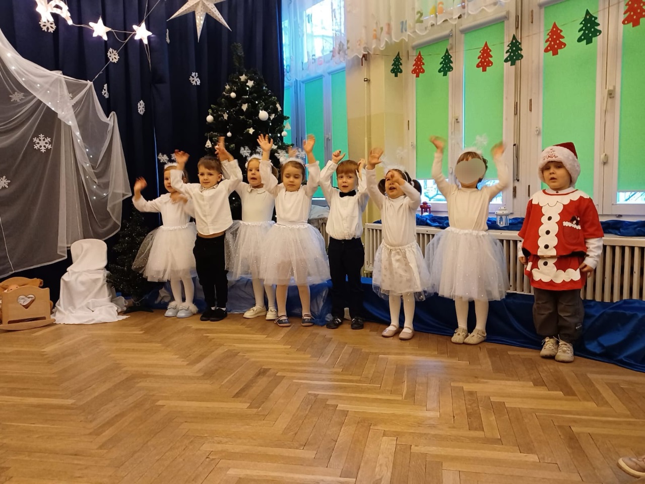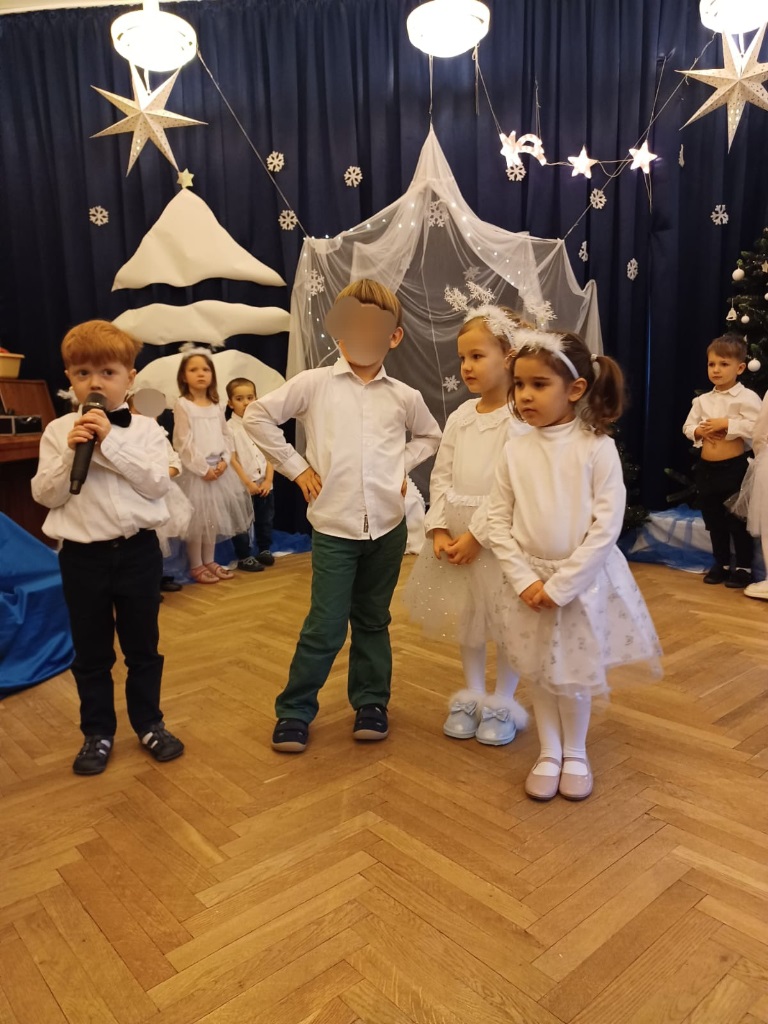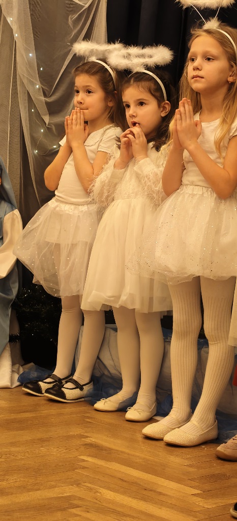 Już od 18 grudnia przedszkolaki z „Wesołych Skrzatów” przygotowały dla swoich bliskich Jasełka. Piękna sceneria oraz śpiew kolęd i pastorałek wprowadziły wszystkich zgromadzonych w prawdziwie świąteczny nastrój. Dzieci z ogromnym zaangażowaniem wcieliły się w postacie związane z narodzinami Pana Jezusa, prezentując swoje umiejętności recytatorskie i wokalne. Na scenie pojawili się Józef i Maryja, aniołowie, pastuszkowie, Trzej Królowie oraz dzieci. Wszyscy, w przepięknych strojach przygotowanych przez Rodziców, zaprezentowali się doskonale na tle bożonarodzeniowej dekoracji. Każda z grup „Wesołych Skrzatów” przedstawiła swój program artystyczny, sprawiając Rodzicom wiele radości i wzruszeń.