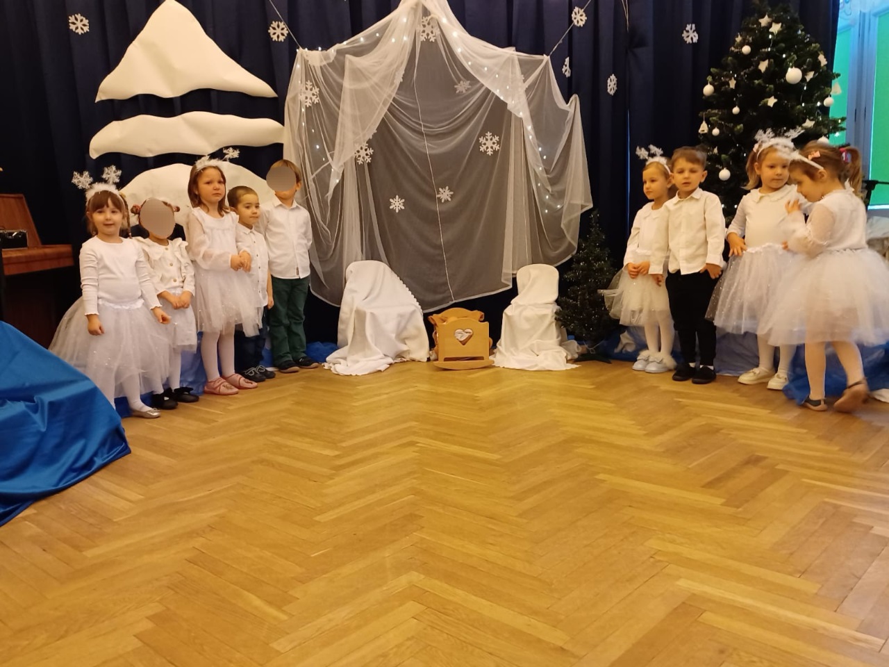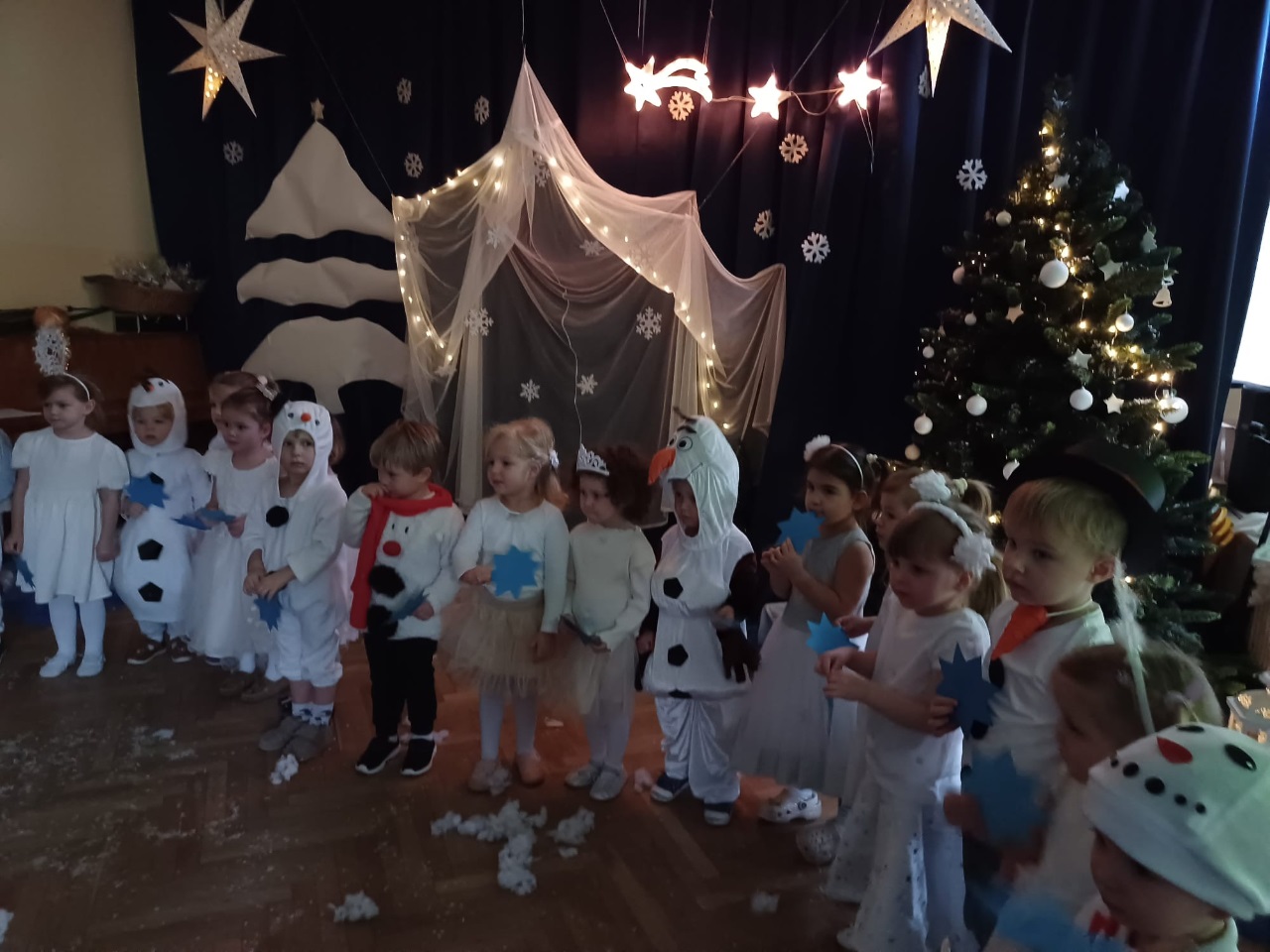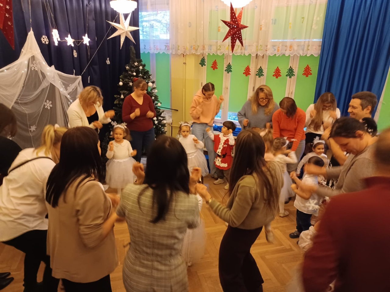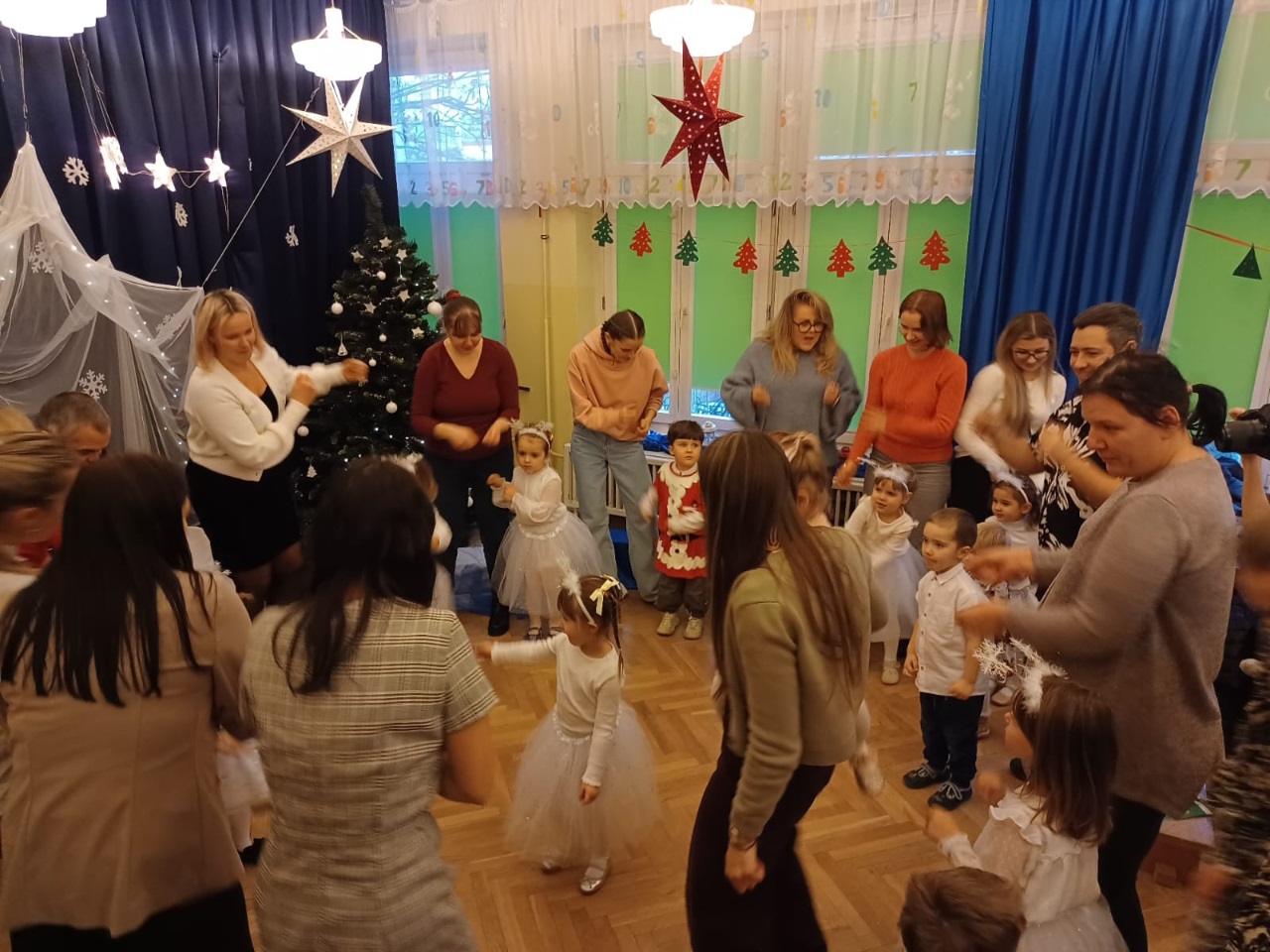 Już od 18 grudnia przedszkolaki z „Wesołych Skrzatów” przygotowały dla swoich bliskich Jasełka. Piękna sceneria oraz śpiew kolęd i pastorałek wprowadziły wszystkich zgromadzonych w prawdziwie świąteczny nastrój. Dzieci z ogromnym zaangażowaniem wcieliły się w postacie związane z narodzinami Pana Jezusa, prezentując swoje umiejętności recytatorskie i wokalne. Na scenie pojawili się Józef i Maryja, aniołowie, pastuszkowie, Trzej Królowie oraz dzieci. Wszyscy, w przepięknych strojach przygotowanych przez Rodziców, zaprezentowali się doskonale na tle bożonarodzeniowej dekoracji. Każda z grup „Wesołych Skrzatów” przedstawiła swój program artystyczny, sprawiając Rodzicom wiele radości i wzruszeń.