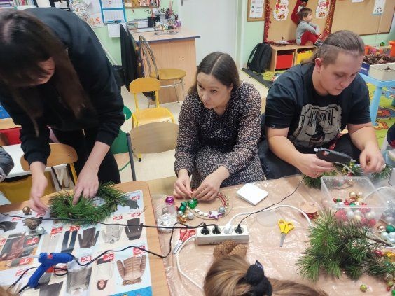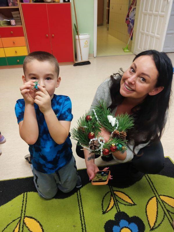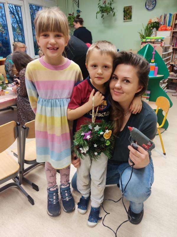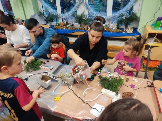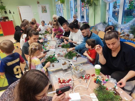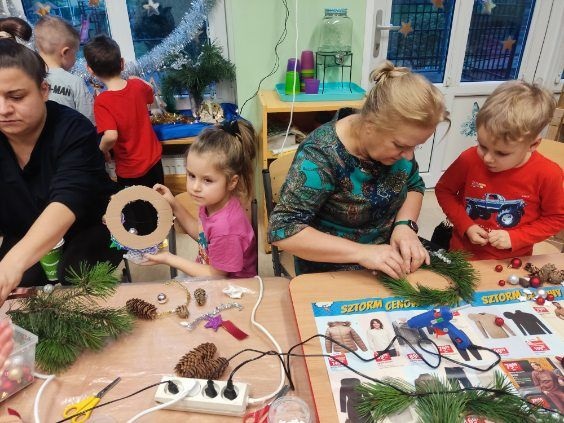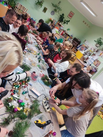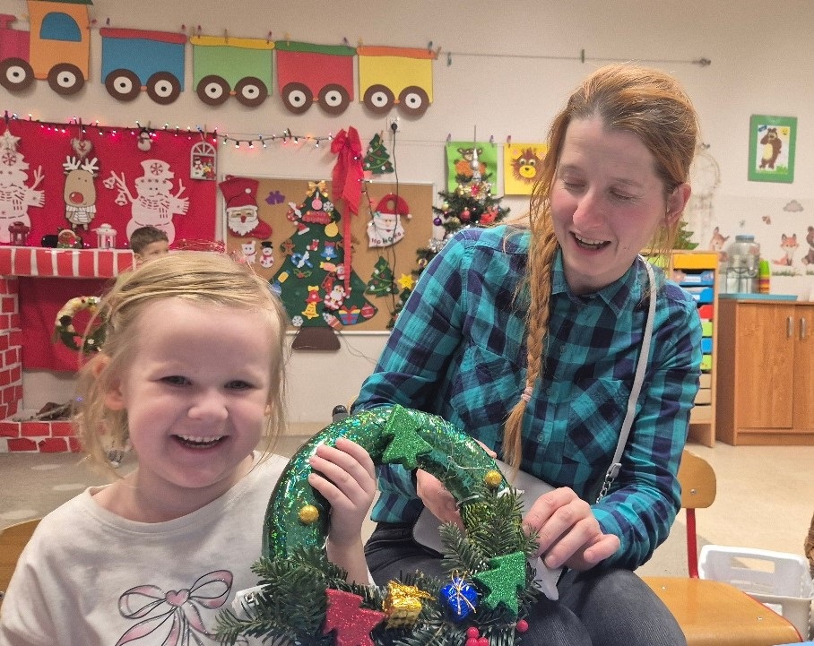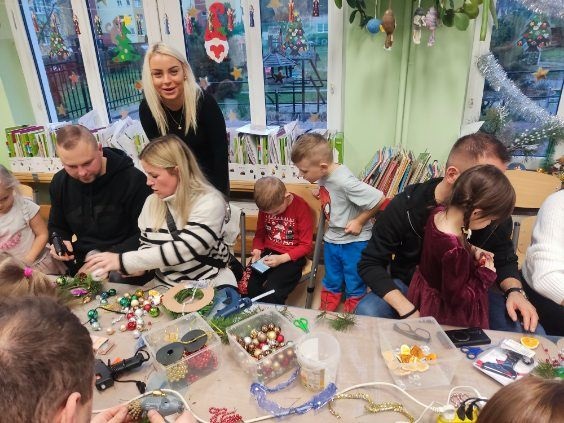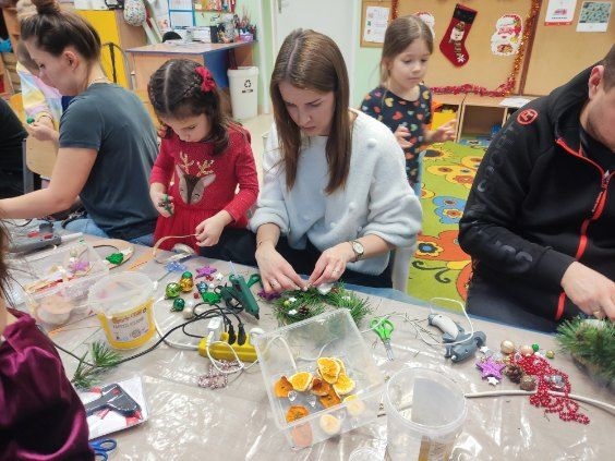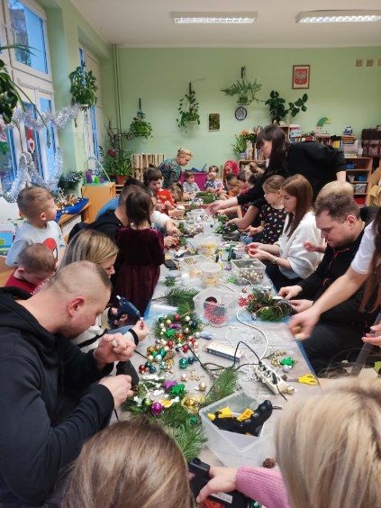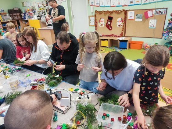 W Przedszkolu „Wesołe Skrzaty” odbyły się pełne radości świąteczne warsztaty z rodzicami. Podczas wspólnej, twórczej pracy dzieci wraz z dorosłymi wykonywały piękne choinki, szklane świąteczne kule oraz pachnące świerkiem wianki. Sale przedszkolna zamieniła się w magiczną pracownię pełną brokatu, wstążek, gałązek świerku i kolorowych dekoracji. Wspólne tworzenie przyniosło wiele uśmiechu, rozmów i prawdziwej rodzinnej atmosfery. Dziękujemy wszystkim Rodzicom, Babciom i Dziadkom za obecność, zaangażowanie i stworzenie razem z nami magicznej, przedświątecznej atmosfery. Takie chwile są bezcenne i na długo pozostaną w pamięci naszych Skrzatów.