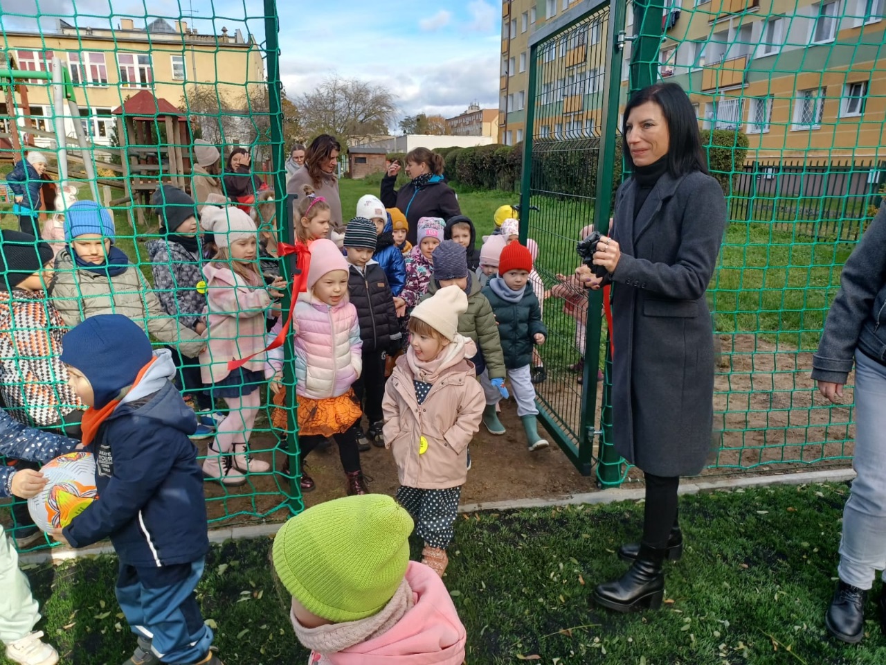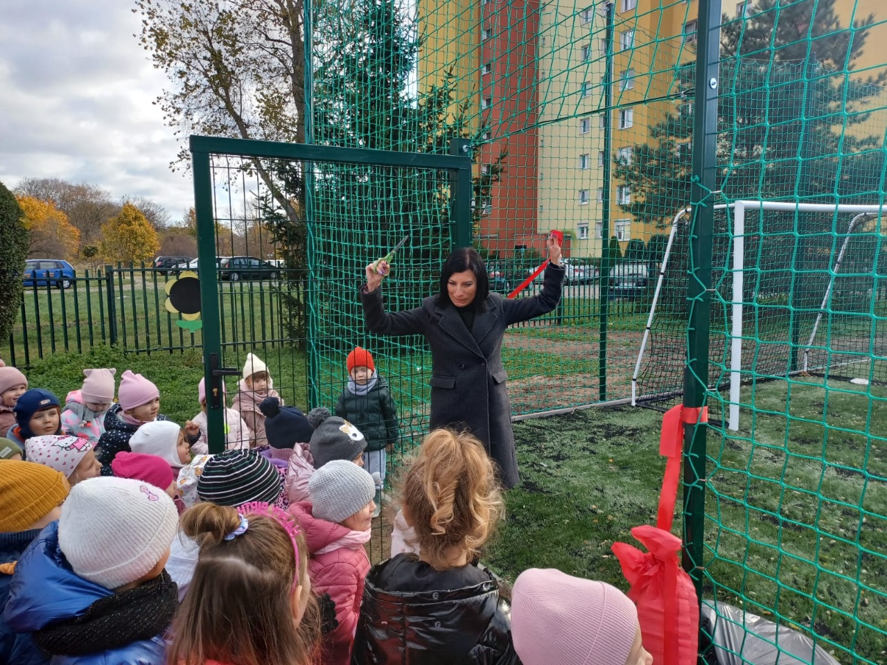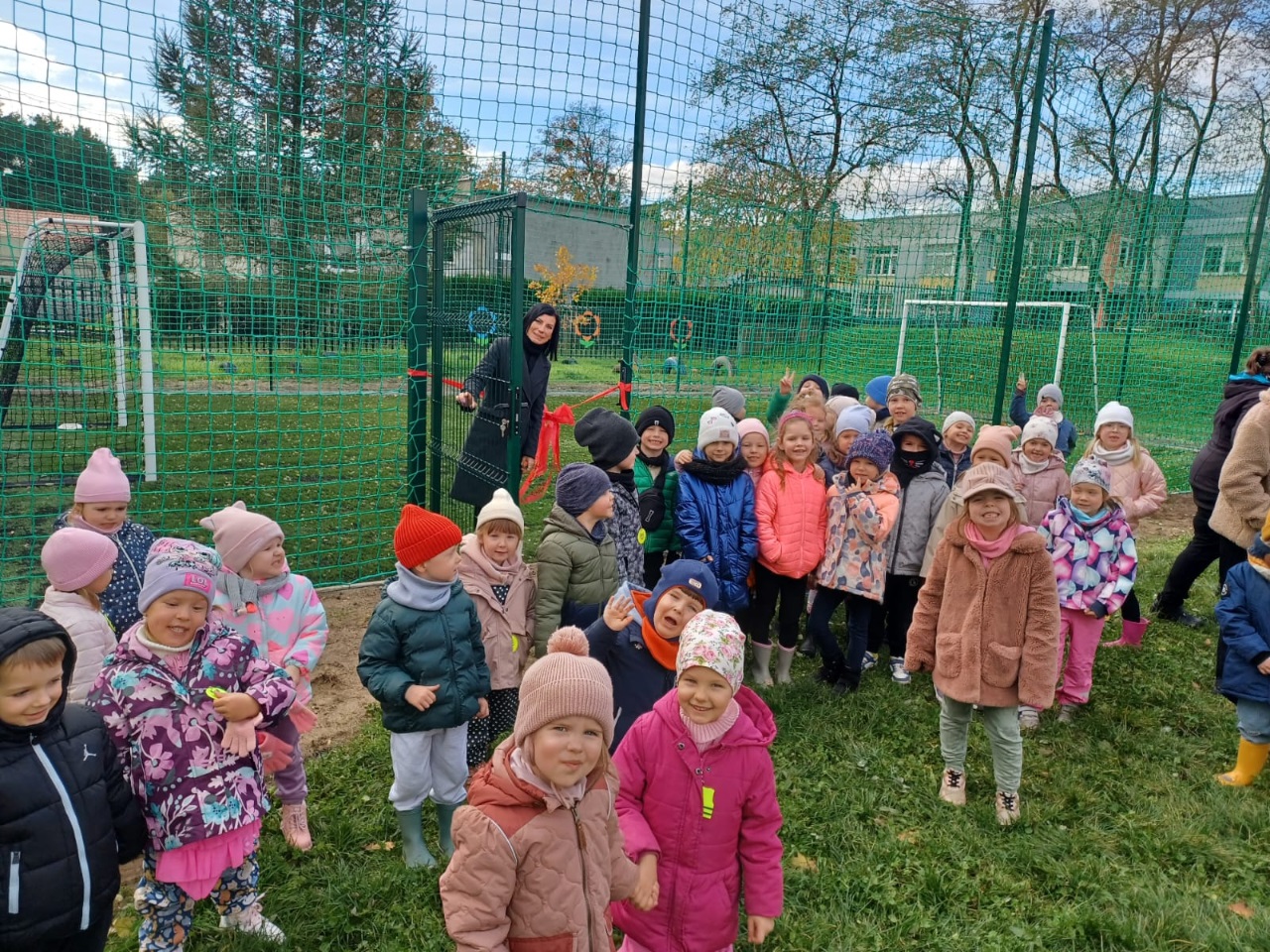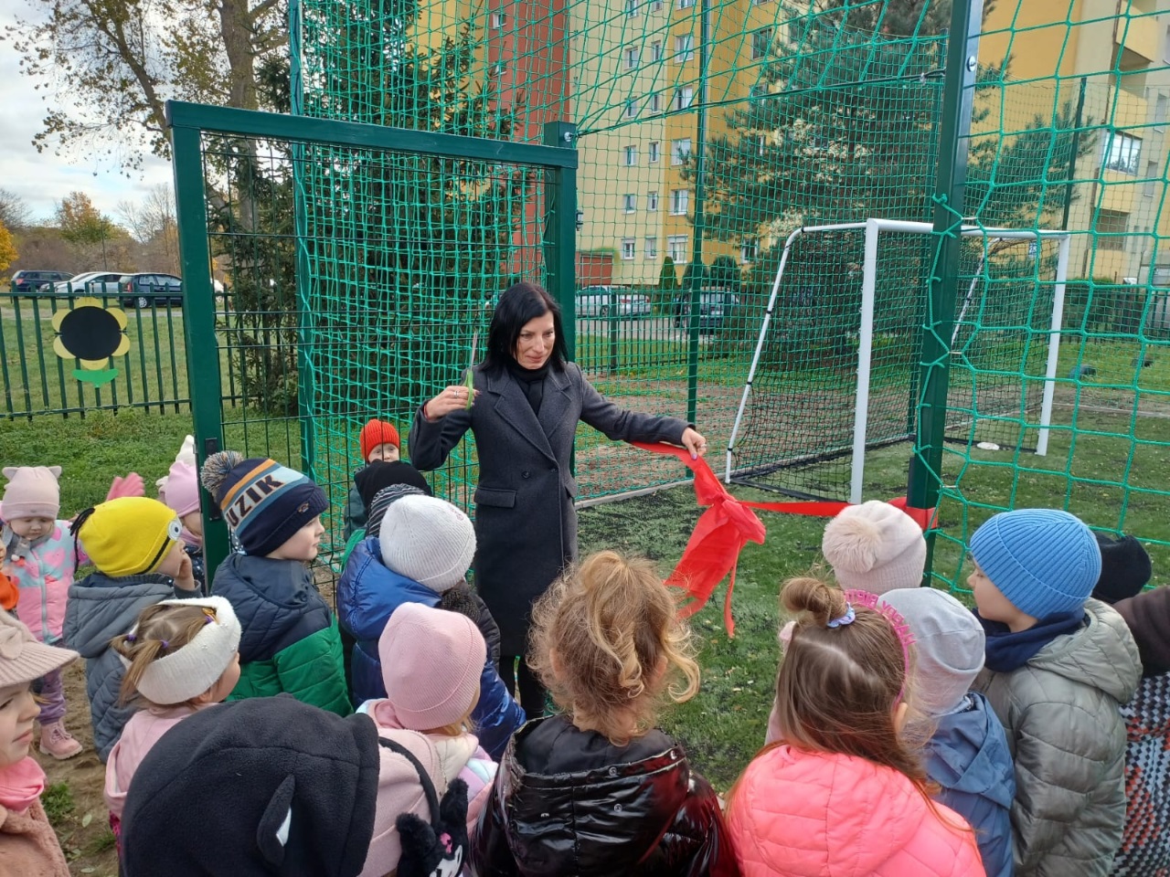 Dziś w naszym przedszkolu „Wesołe Skrzaty” odbyła się uroczystość otwarcia nowego boiska do piłki nożnej – miejsca, które stanie się przestrzenią radości, współpracy i sportowych wyzwań. Symbolicznego przecięcia wstęgi dokonała Pani Dyrektor Malwina Werbowa, otwierając tym samym nowy rozdział w życiu naszego przedszkola. Nowe boisko to nie tylko miejsce zabawy i aktywności fizycznej, ale przede wszystkim przestrzeń,w której dzieci będą mogły uczyć się ducha sportowej rywalizacji, zasad fair play oraz dążenia do wspólnego celu. W duchu idei sportowego celu pragniemy, by każde dziecko, niezależnie od wieku i umiejętności, mogło tutaj rozwijać swoją pasję, odkrywać siłę współpracy i czerpać radość z ruchu. Po części oficjalnej odbyły się mini mecze , w których mali zawodnicy pokazali, że najważniejsze w sporcie są radość, przyjaźń i dobra zabawa. Nowe boisko to miejsce, które będzie służyć naszym „Wesołym Skrzatom” każdego dnia, inspirując do aktywności, wytrwałości i wspólnego dążenia do celu – bo sport to nie tylko gra, to sposób na życie pełne pasji i energii.