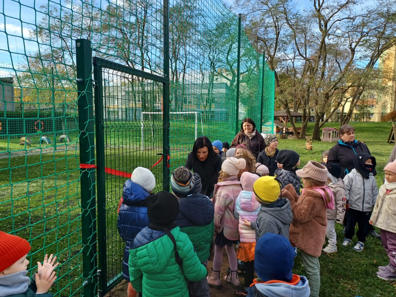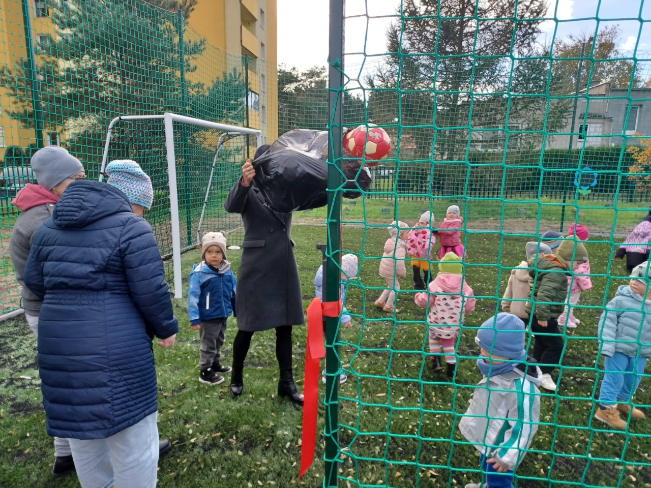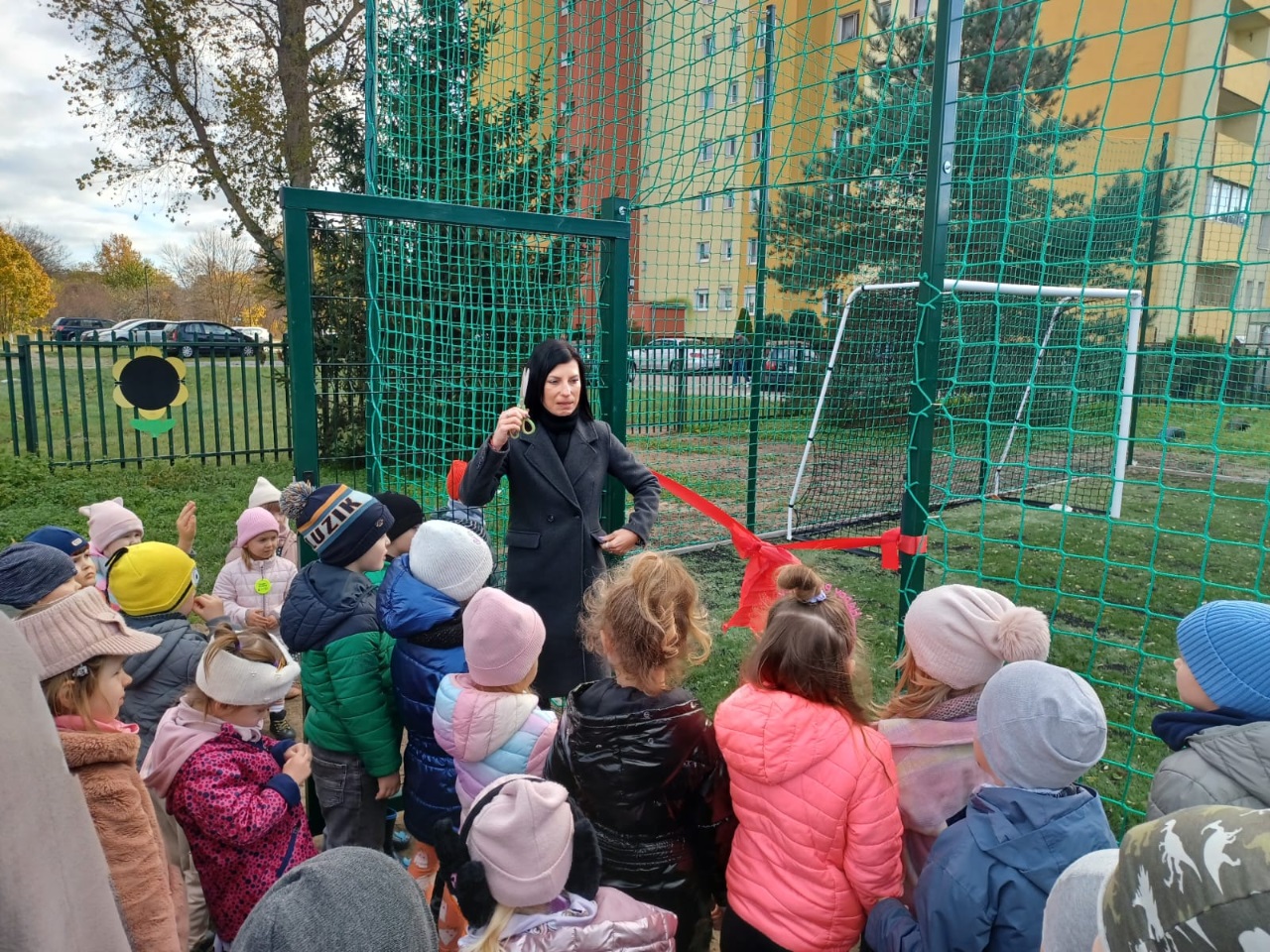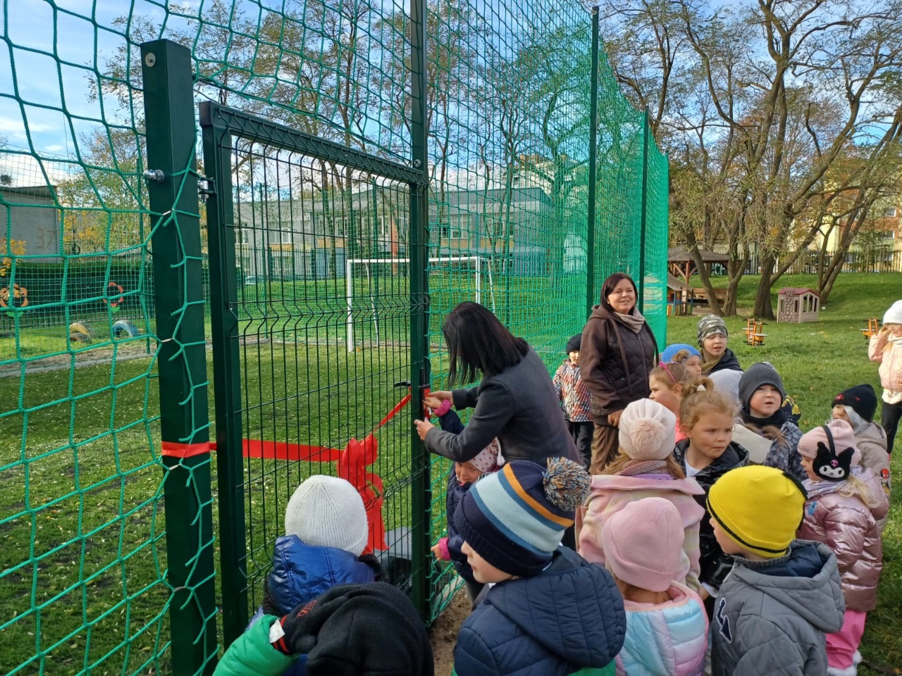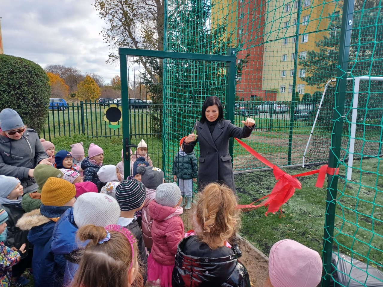 Dziś w naszym przedszkolu „Wesołe Skrzaty” odbyła się uroczystość otwarcia nowego boiska do piłki nożnej – miejsca, które stanie się przestrzenią radości, współpracy i sportowych wyzwań. Symbolicznego przecięcia wstęgi dokonała Pani Dyrektor Malwina Werbowa, otwierając tym samym nowy rozdział w życiu naszego przedszkola. Nowe boisko to nie tylko miejsce zabawy i aktywności fizycznej, ale przede wszystkim przestrzeń,w której dzieci będą mogły uczyć się ducha sportowej rywalizacji, zasad fair play oraz dążenia do wspólnego celu. W duchu idei sportowego celu pragniemy, by każde dziecko, niezależnie od wieku i umiejętności, mogło tutaj rozwijać swoją pasję, odkrywać siłę współpracy i czerpać radość z ruchu. Po części oficjalnej odbyły się mini mecze , w których mali zawodnicy pokazali, że najważniejsze w sporcie są radość, przyjaźń i dobra zabawa. Nowe boisko to miejsce, które będzie służyć naszym „Wesołym Skrzatom” każdego dnia, inspirując do aktywności, wytrwałości i wspólnego dążenia do celu – bo sport to nie tylko gra, to sposób na życie pełne pasji i energii.