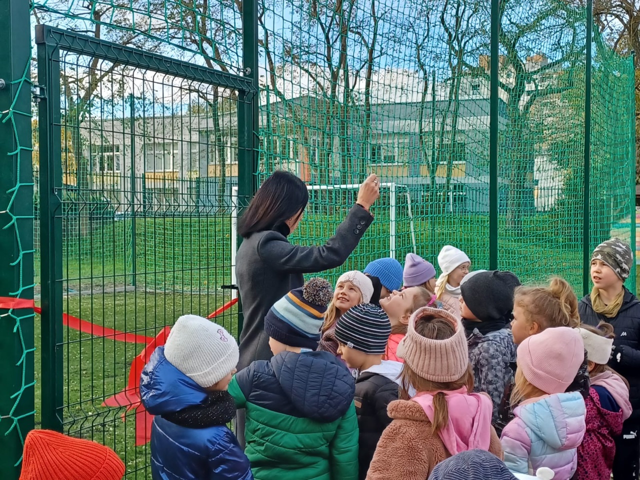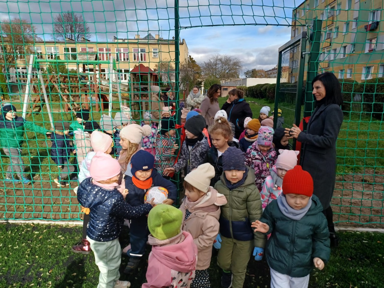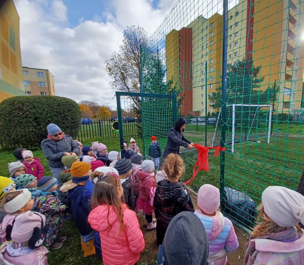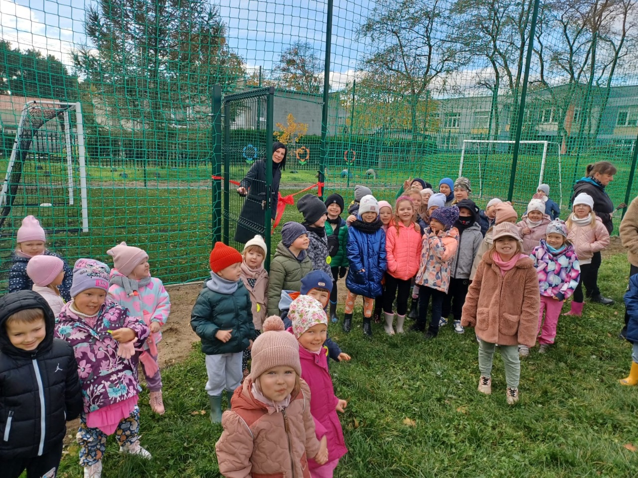 Dziś w naszym przedszkolu „Wesołe Skrzaty” odbyła się uroczystość otwarcia nowego boiska do piłki nożnej – miejsca, które stanie się przestrzenią radości, współpracy i sportowych wyzwań. Symbolicznego przecięcia wstęgi dokonała Pani Dyrektor Malwina Werbowa, otwierając tym samym nowy rozdział w życiu naszego przedszkola. Nowe boisko to nie tylko miejsce zabawy i aktywności fizycznej, ale przede wszystkim przestrzeń,w której dzieci będą mogły uczyć się ducha sportowej rywalizacji, zasad fair play oraz dążenia do wspólnego celu. W duchu idei sportowego celu pragniemy, by każde dziecko, niezależnie od wieku i umiejętności, mogło tutaj rozwijać swoją pasję, odkrywać siłę współpracy i czerpać radość z ruchu. Po części oficjalnej odbyły się mini mecze , w których mali zawodnicy pokazali, że najważniejsze w sporcie są radość, przyjaźń i dobra zabawa. Nowe boisko to miejsce, które będzie służyć naszym „Wesołym Skrzatom” każdego dnia, inspirując do aktywności, wytrwałości i wspólnego dążenia do celu – bo sport to nie tylko gra, to sposób na życie pełne pasji i energii.