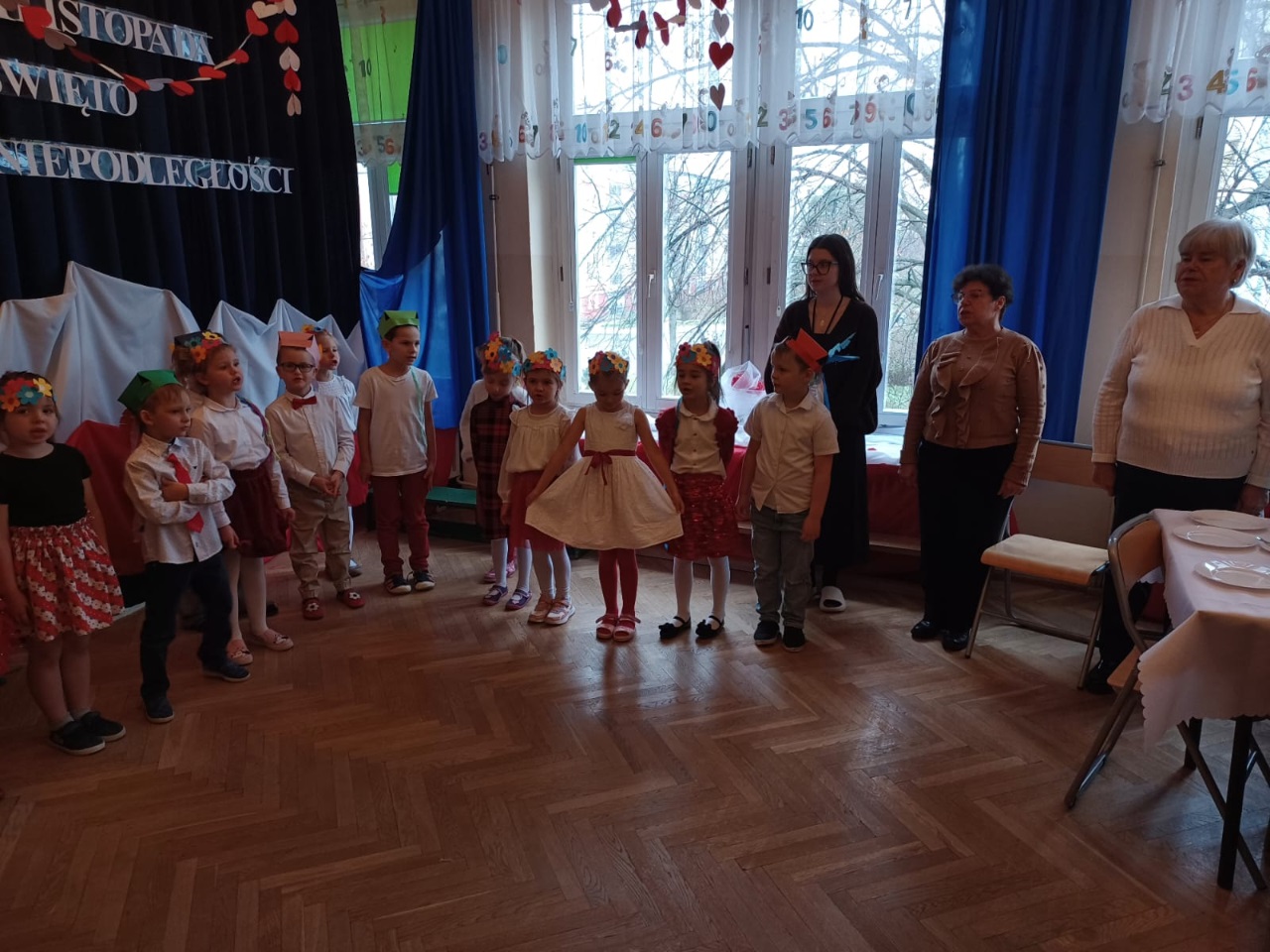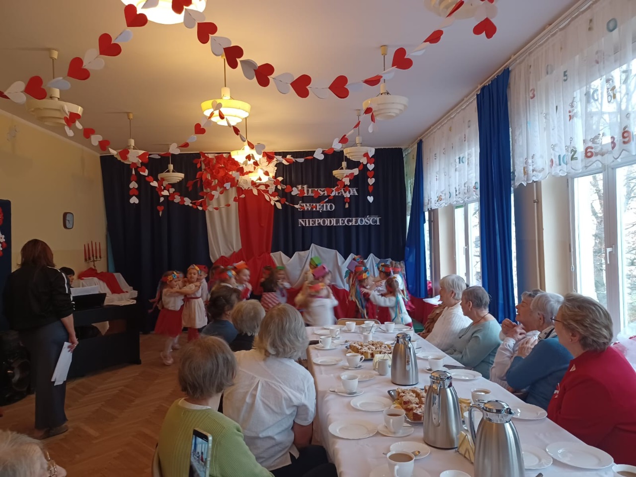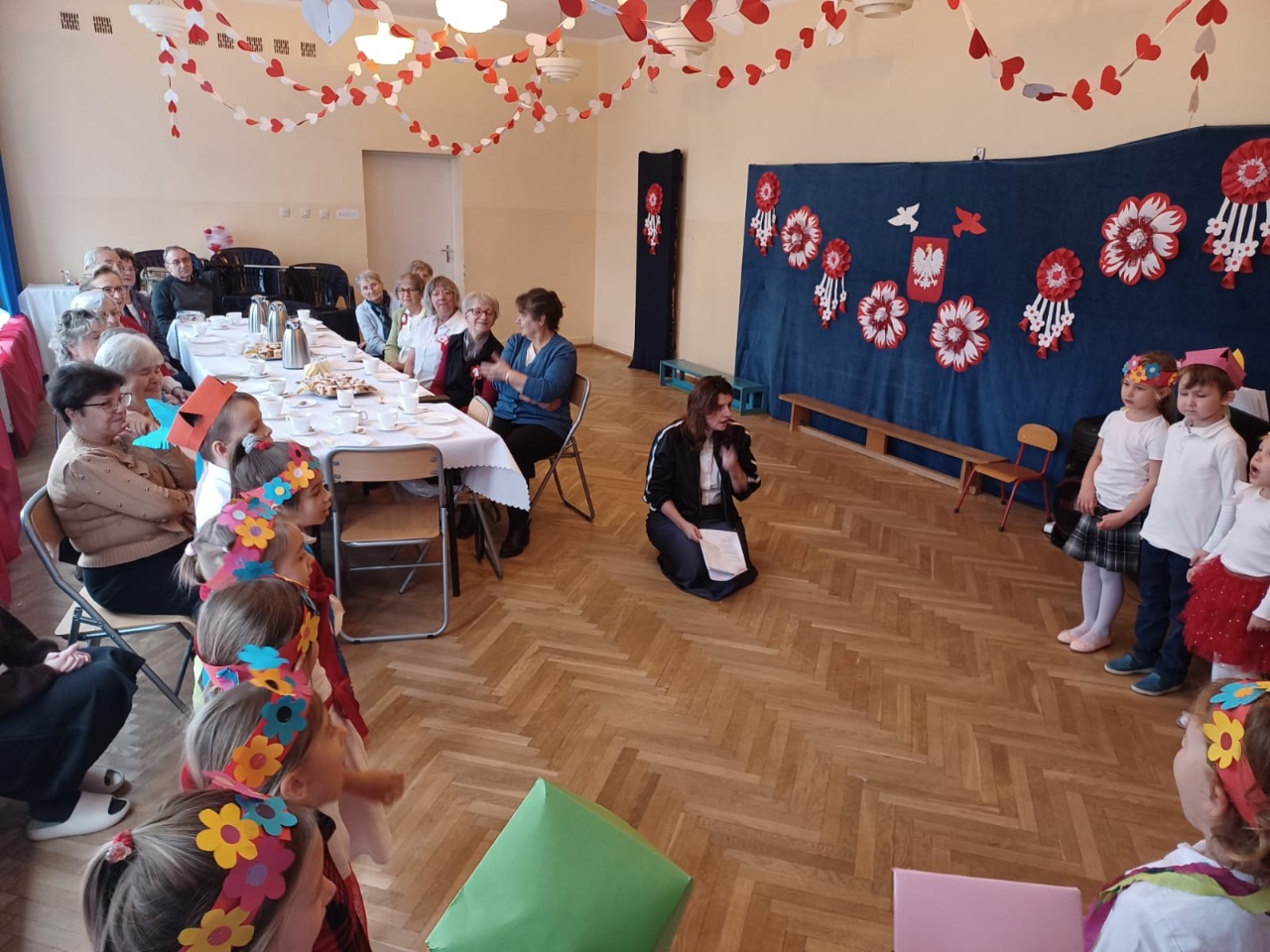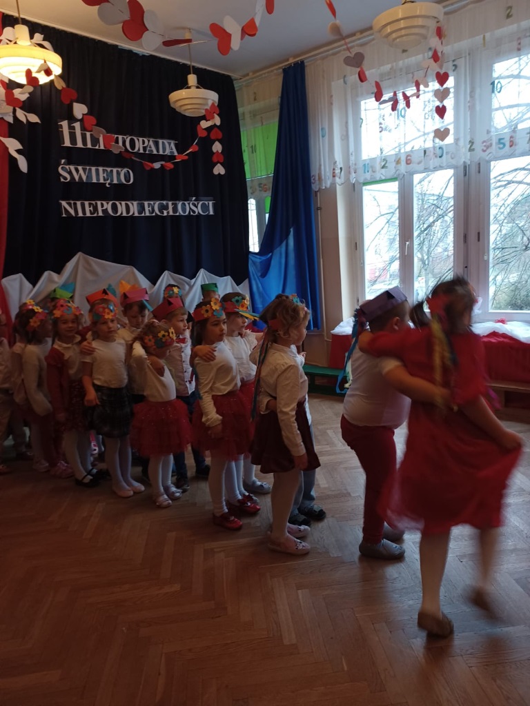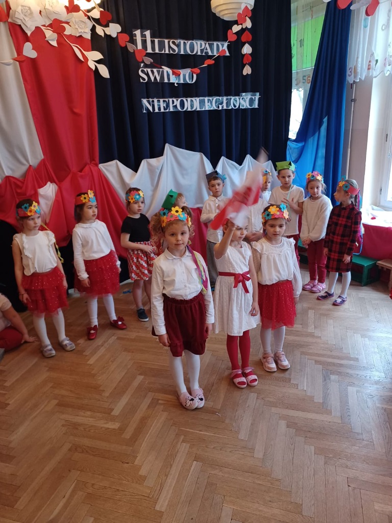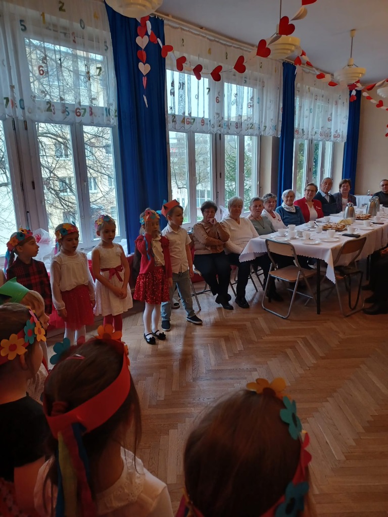 W przedszkolu „Wesołe Skrzaty” odbyło się wyjątkowe spotkanie z Seniorami, którzy zostali zaproszeni na uroczyste przedstawienie przygotowane z okazji Dnia Niepodległości. To ważne święto stało się piękną okazją do międzypokoleniowej integracji oraz wspólnego przeżywania chwil pełnych wzruszeń i patriotyzmu. Dzieci z Koszałków Opałków zaprezentowały program artystyczny, w którym nie zabrakło pieśni patriotycznych, recytacji wierszy oraz krótkiej inscenizacji opowiadającej o historii naszej Ojczyzny. Mali artyści wystąpili z wielkim zaangażowaniem i dumą, a ich starania zostały nagrodzone gromkimi brawami. Seniorzy z radością i wzruszeniem oglądali występ, ciesząc się możliwością wspólnego świętowania i spędzenia czasu z przedszkolakami. Po przedstawieniu był również moment na rozmowy, uśmiechy i mały poczęstunek, który pozwolił wszystkim jeszcze dłużej cieszyć się atmosferą spotkania. To była piękna, ciepła i pełna wartości lekcja patriotyzmu oraz okazja do budowania więzi między pokoleniami.