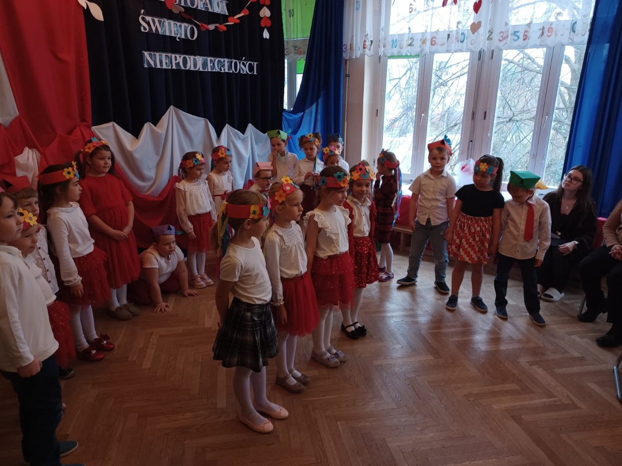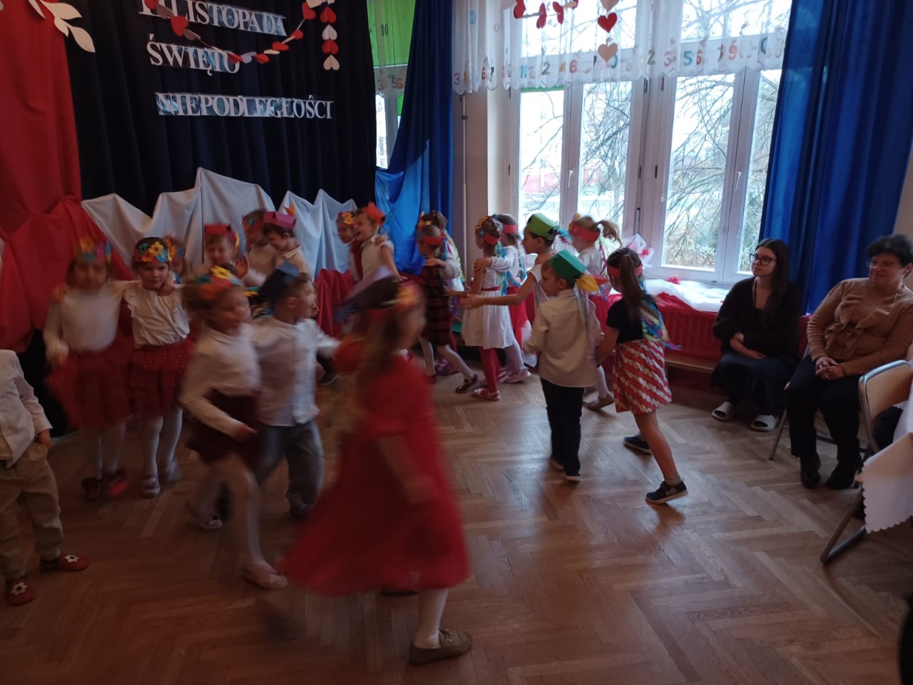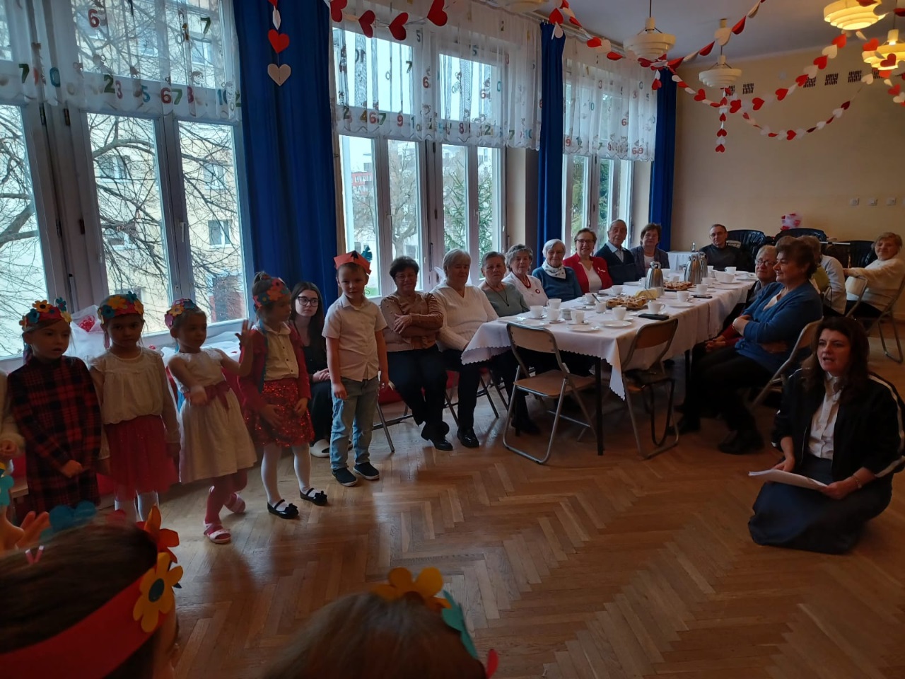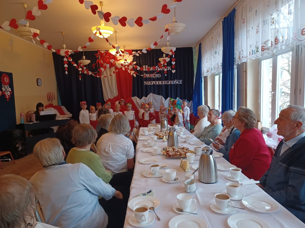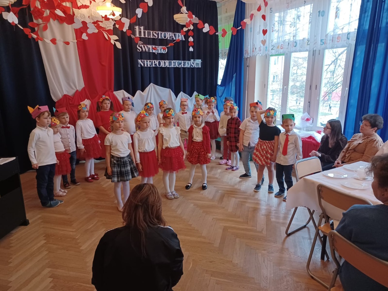 W przedszkolu „Wesołe Skrzaty” odbyło się wyjątkowe spotkanie z Seniorami, którzy zostali zaproszeni na uroczyste przedstawienie przygotowane z okazji Dnia Niepodległości. To ważne święto stało się piękną okazją do międzypokoleniowej integracji oraz wspólnego przeżywania chwil pełnych wzruszeń i patriotyzmu. Dzieci z Koszałków Opałków zaprezentowały program artystyczny, w którym nie zabrakło pieśni patriotycznych, recytacji wierszy oraz krótkiej inscenizacji opowiadającej o historii naszej Ojczyzny. Mali artyści wystąpili z wielkim zaangażowaniem i dumą, a ich starania zostały nagrodzone gromkimi brawami. Seniorzy z radością i wzruszeniem oglądali występ, ciesząc się możliwością wspólnego świętowania i spędzenia czasu z przedszkolakami. Po przedstawieniu był również moment na rozmowy, uśmiechy i mały poczęstunek, który pozwolił wszystkim jeszcze dłużej cieszyć się atmosferą spotkania. To była piękna, ciepła i pełna wartości lekcja patriotyzmu oraz okazja do budowania więzi między pokoleniami.