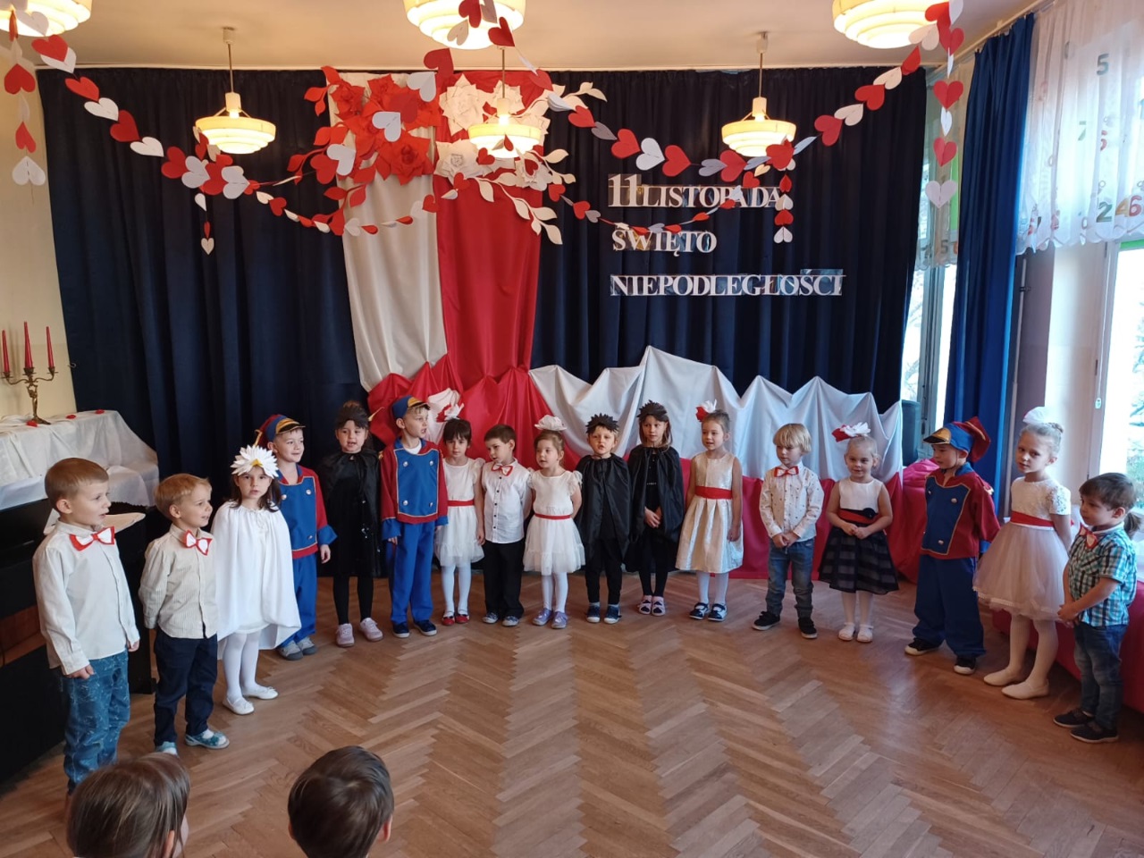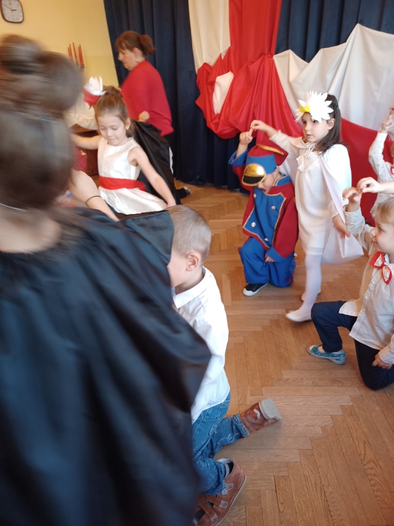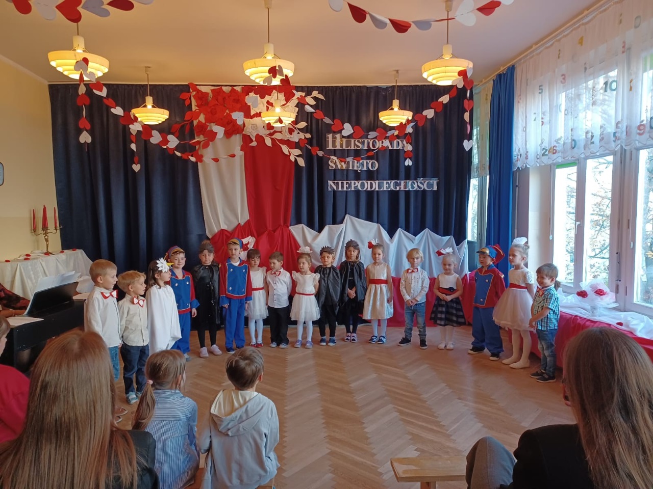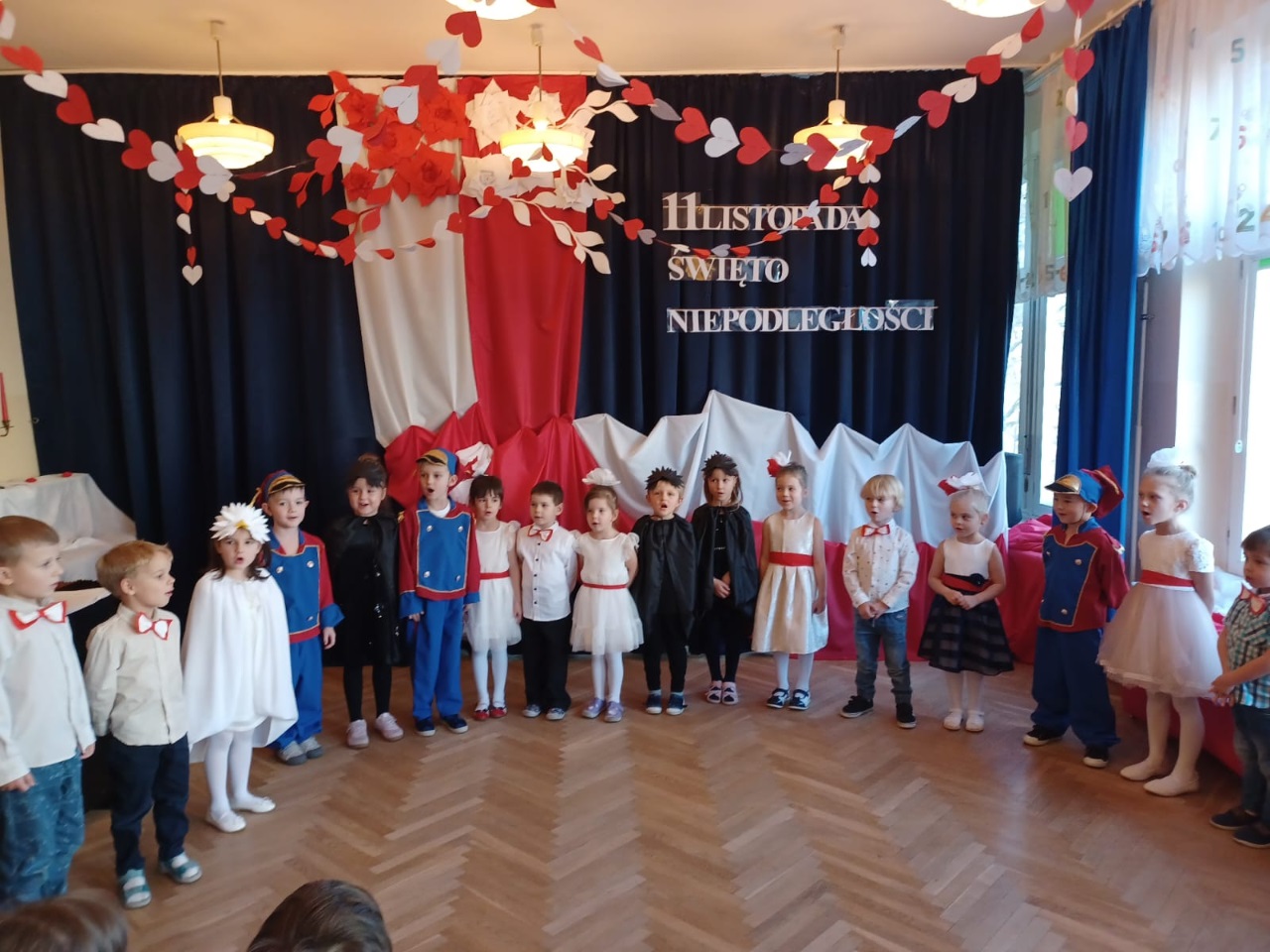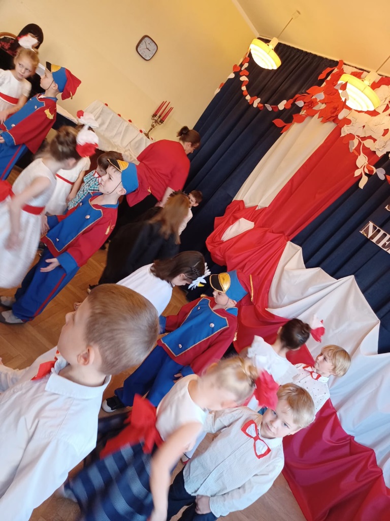 Z okazji Święta Niepodległości nasze przedszkolaki z grupy Elfy przygotowały wzruszające przedstawienie pt. „Pisk Białego Orła”. Mali artyści z ogromnym zaangażowaniem zaprezentowali program artystyczny pełen patriotycznych wierszy, piosenek i scenek, które przypomniały wszystkim o ważnych dla Polaków wartościach – wolności, miłości do ojczyzny i dumie z narodowych symboli. Podczas uroczystości dzieci w pięknych, strojach zaprezentowały wiersze, piosenki i krótkie scenki, które przypomniały wszystkim, jak ważne są dla nas wartości takie jak wolność, ojczyzna i miłość do Polski. Symbole narodowe – flaga, godło i hymn – towarzyszyły całemu wydarzeniu, a mali artyści z ogromnym zaangażowaniem i dumą opowiadali historię naszego kraju. Nie zabrakło też chwili wzruszenia przy wspólnym odśpiewaniu „Mazurka Dąbrowskiego”. Przedstawienie było nie tylko piękną lekcją patriotyzmu, ale też dowodem na to, że nawet najmłodsi potrafią z sercem i dumą mówić o Polsce. Przedstawienie było nie tylko lekcją historii i patriotyzmu, ale też wspaniałą okazją do wspólnego świętowania w duchu radości i jedności.