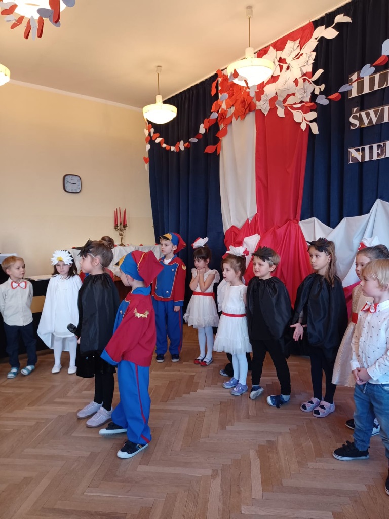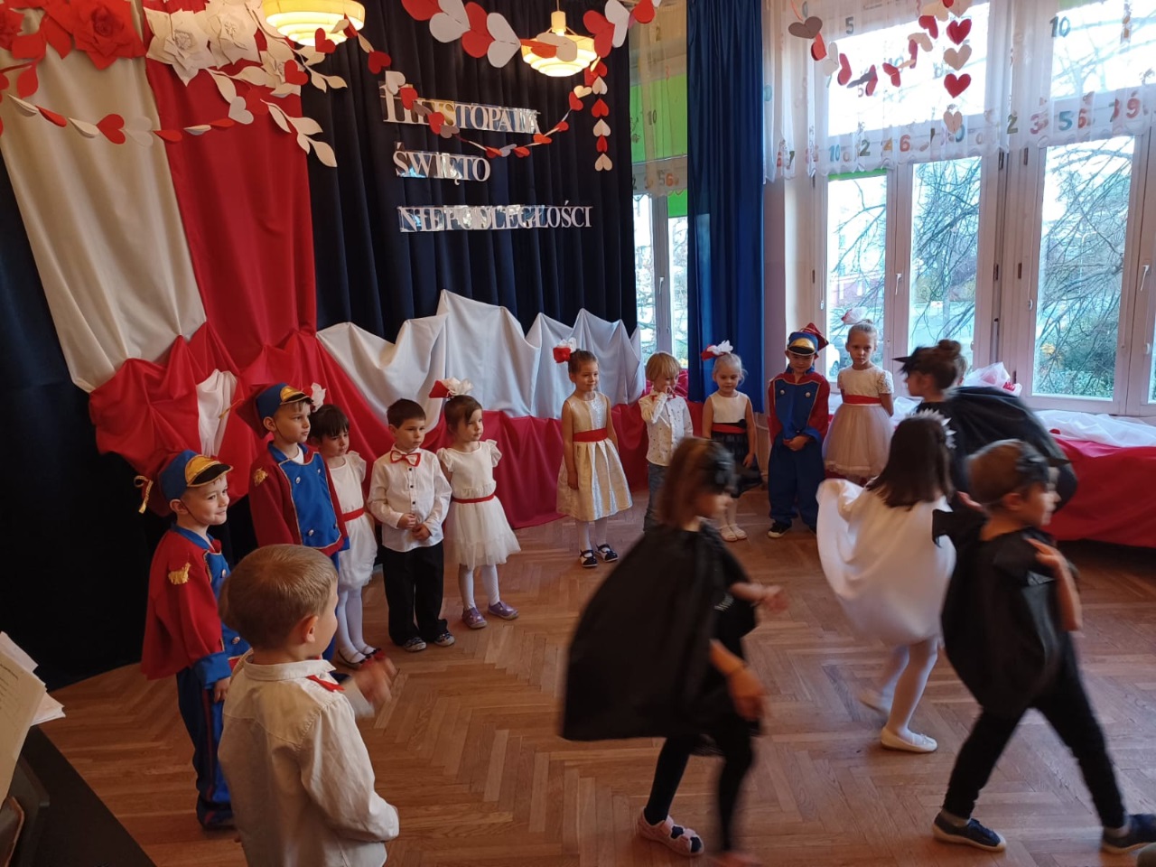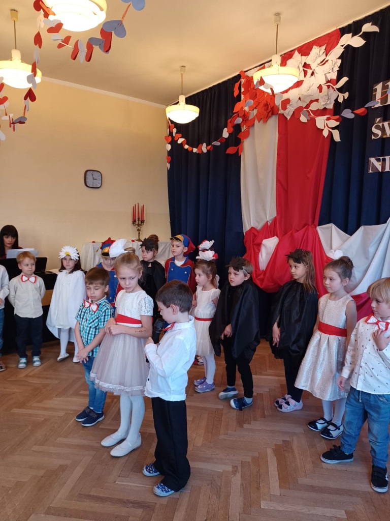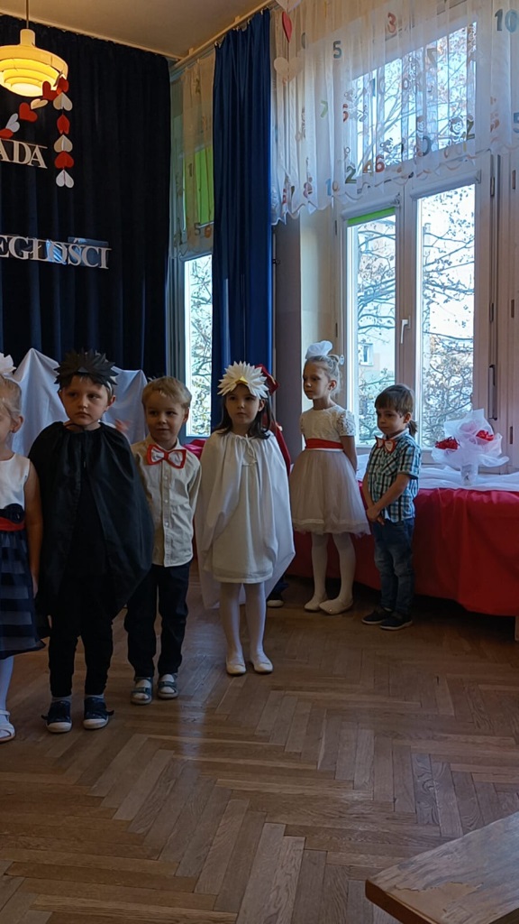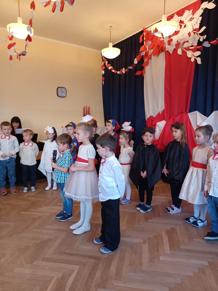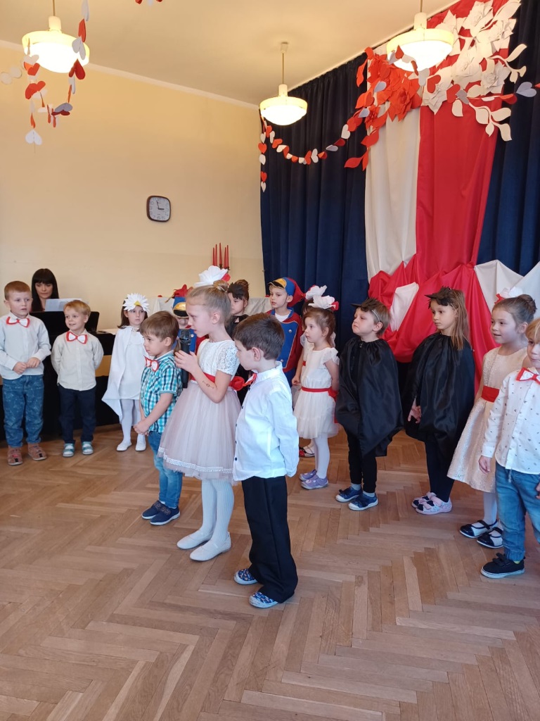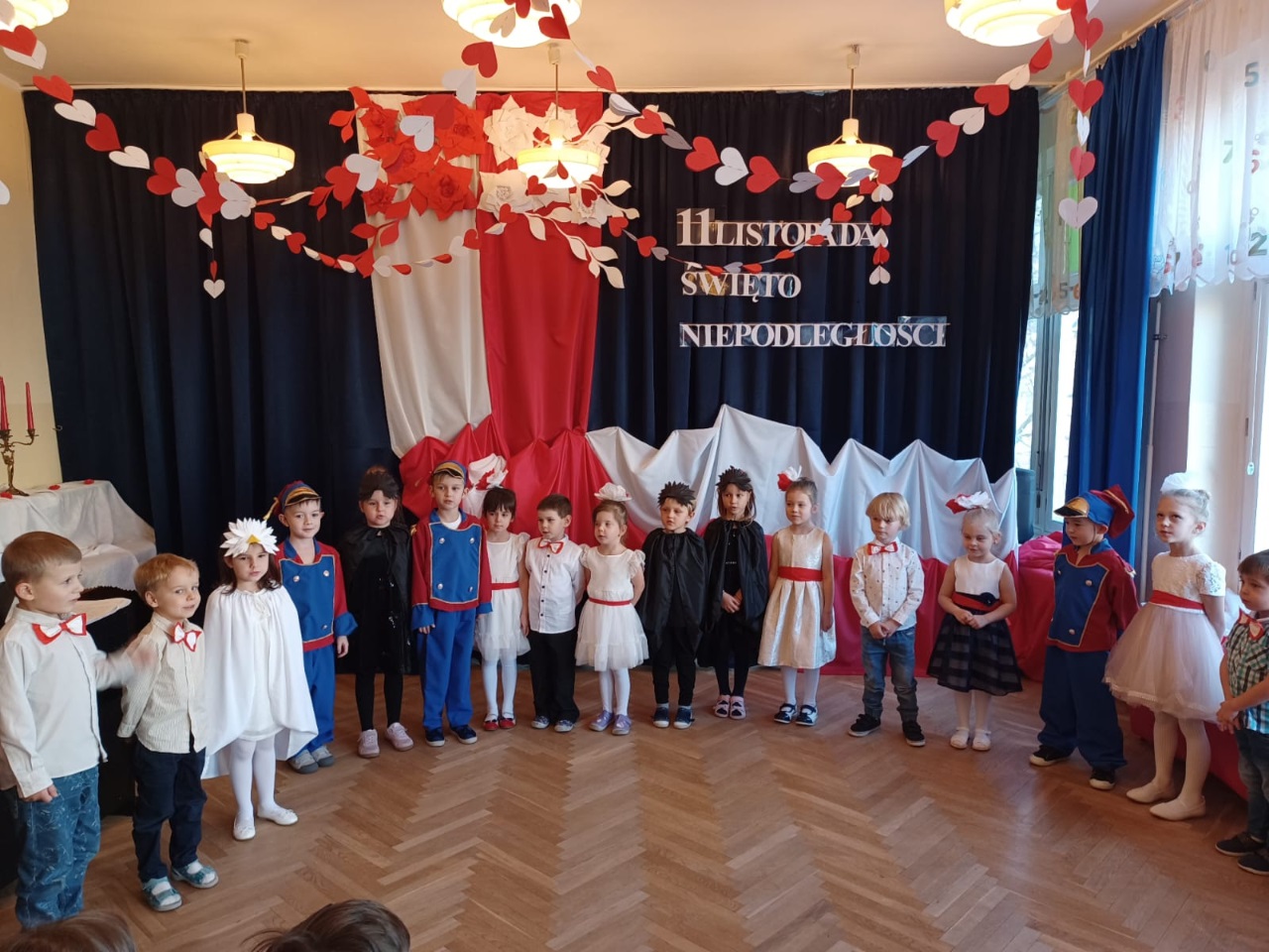 Z okazji Święta Niepodległości nasze przedszkolaki z grupy Elfy przygotowały wzruszające przedstawienie pt. „Pisk Białego Orła”. Mali artyści z ogromnym zaangażowaniem zaprezentowali program artystyczny pełen patriotycznych wierszy, piosenek i scenek, które przypomniały wszystkim o ważnych dla Polaków wartościach – wolności, miłości do ojczyzny i dumie z narodowych symboli. Podczas uroczystości dzieci w pięknych, strojach zaprezentowały wiersze, piosenki i krótkie scenki, które przypomniały wszystkim, jak ważne są dla nas wartości takie jak wolność, ojczyzna i miłość do Polski. Symbole narodowe – flaga, godło i hymn – towarzyszyły całemu wydarzeniu, a mali artyści z ogromnym zaangażowaniem i dumą opowiadali historię naszego kraju. Nie zabrakło też chwili wzruszenia przy wspólnym odśpiewaniu „Mazurka Dąbrowskiego”. Przedstawienie było nie tylko piękną lekcją patriotyzmu, ale też dowodem na to, że nawet najmłodsi potrafią z sercem i dumą mówić o Polsce. Przedstawienie było nie tylko lekcją historii i patriotyzmu, ale też wspaniałą okazją do wspólnego świętowania w duchu radości i jedności.
