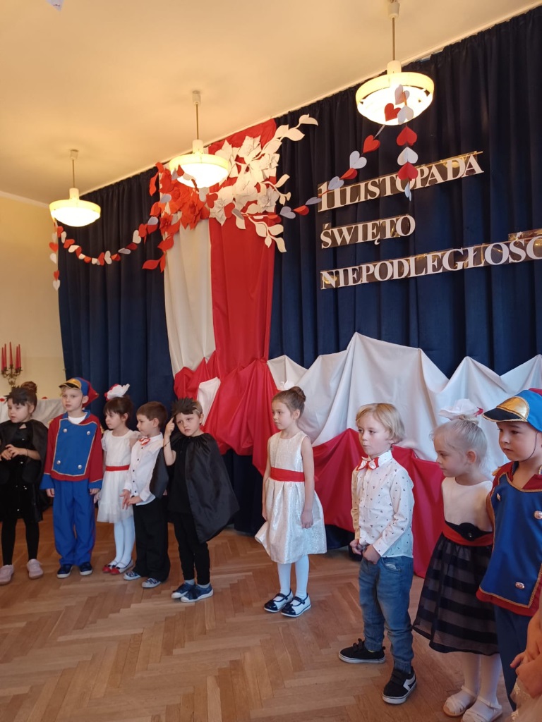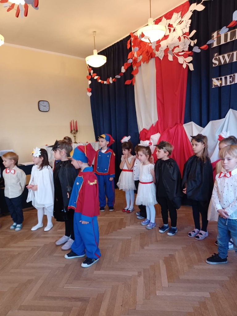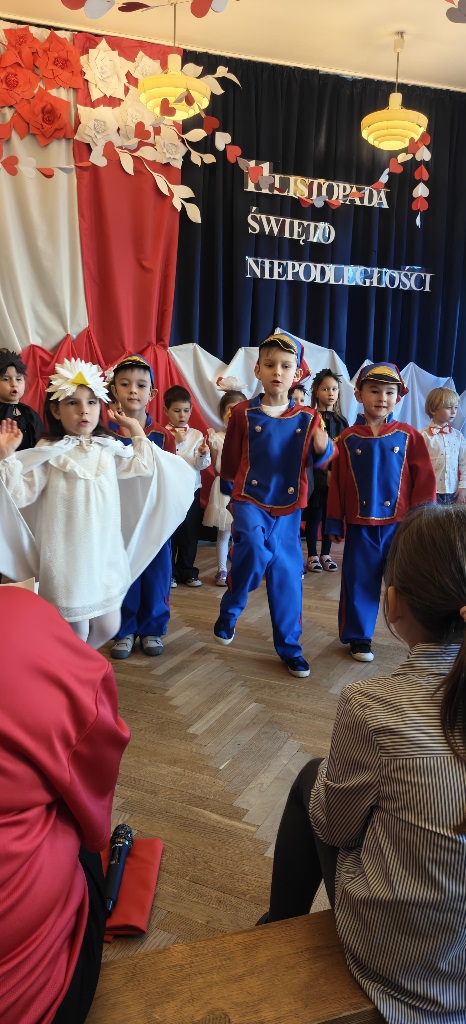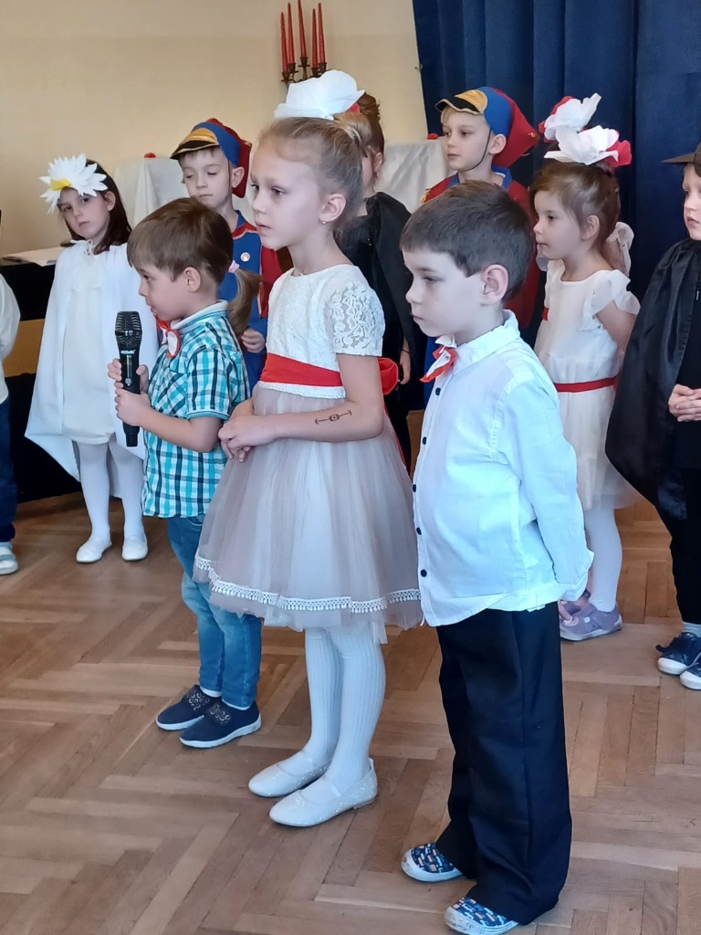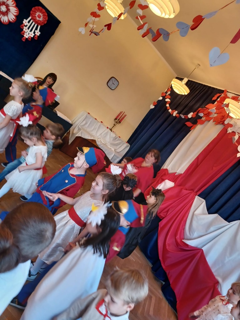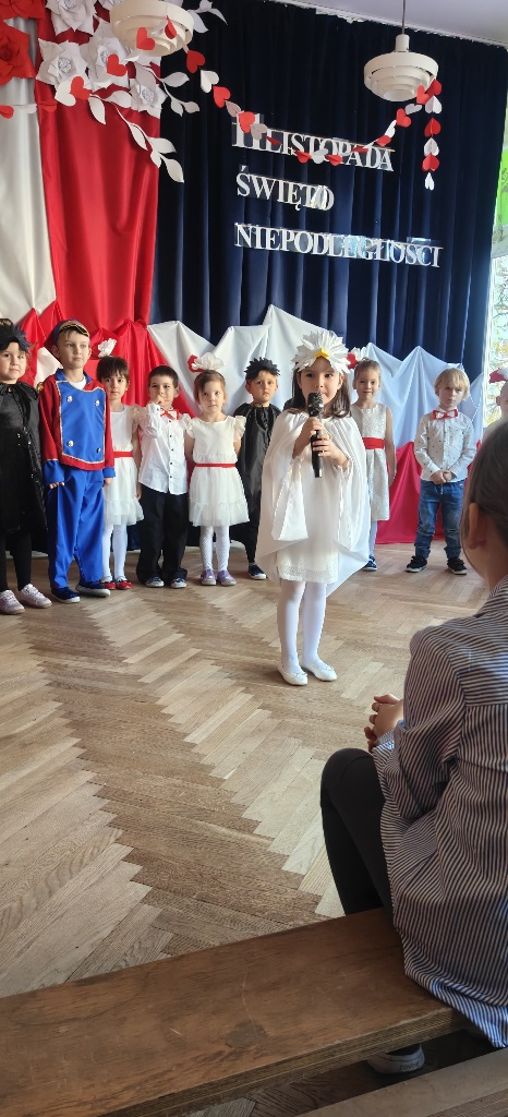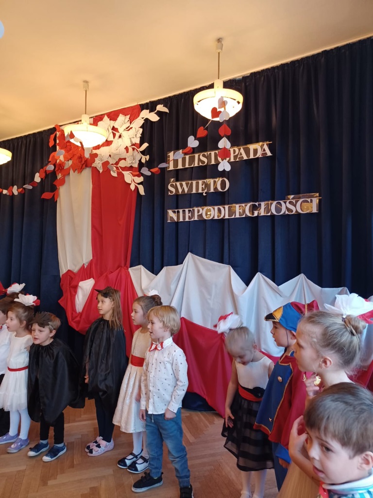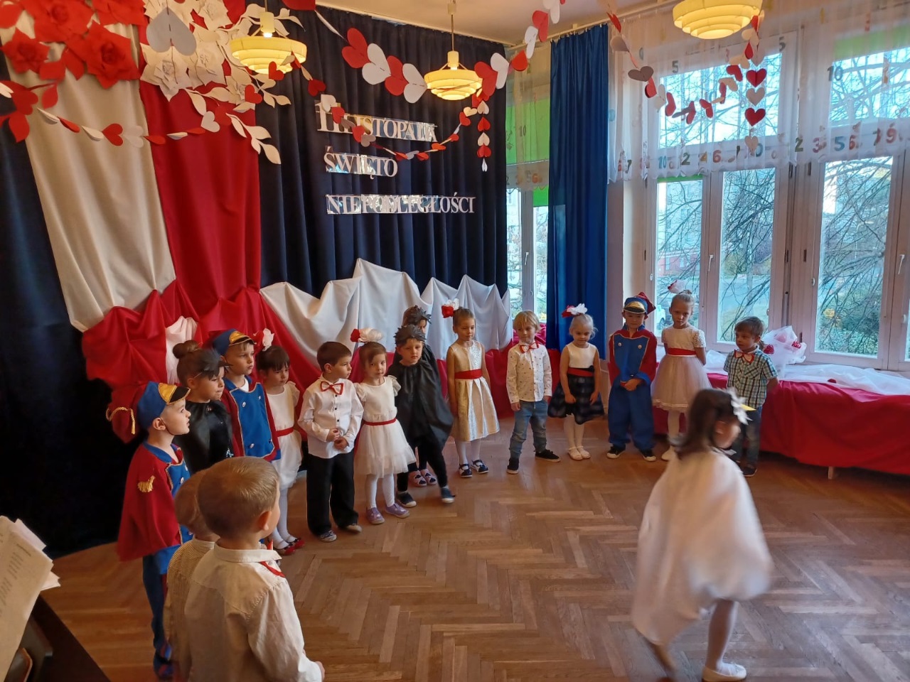 Z okazji Święta Niepodległości nasze przedszkolaki z grupy Elfy przygotowały wzruszające przedstawienie pt. „Pisk Białego Orła”. Mali artyści z ogromnym zaangażowaniem zaprezentowali program artystyczny pełen patriotycznych wierszy, piosenek i scenek, które przypomniały wszystkim o ważnych dla Polaków wartościach – wolności, miłości do ojczyzny i dumie z narodowych symboli. Podczas uroczystości dzieci w pięknych, strojach zaprezentowały wiersze, piosenki i krótkie scenki, które przypomniały wszystkim, jak ważne są dla nas wartości takie jak wolność, ojczyzna i miłość do Polski. Symbole narodowe – flaga, godło i hymn – towarzyszyły całemu wydarzeniu, a mali artyści z ogromnym zaangażowaniem i dumą opowiadali historię naszego kraju. Nie zabrakło też chwili wzruszenia przy wspólnym odśpiewaniu „Mazurka Dąbrowskiego”. Przedstawienie było nie tylko piękną lekcją patriotyzmu, ale też dowodem na to, że nawet najmłodsi potrafią z sercem i dumą mówić o Polsce. Przedstawienie było nie tylko lekcją historii i patriotyzmu, ale też wspaniałą okazją do wspólnego świętowania w duchu radości i jedności.