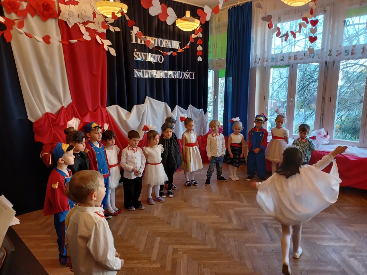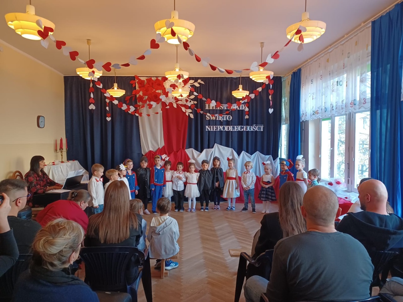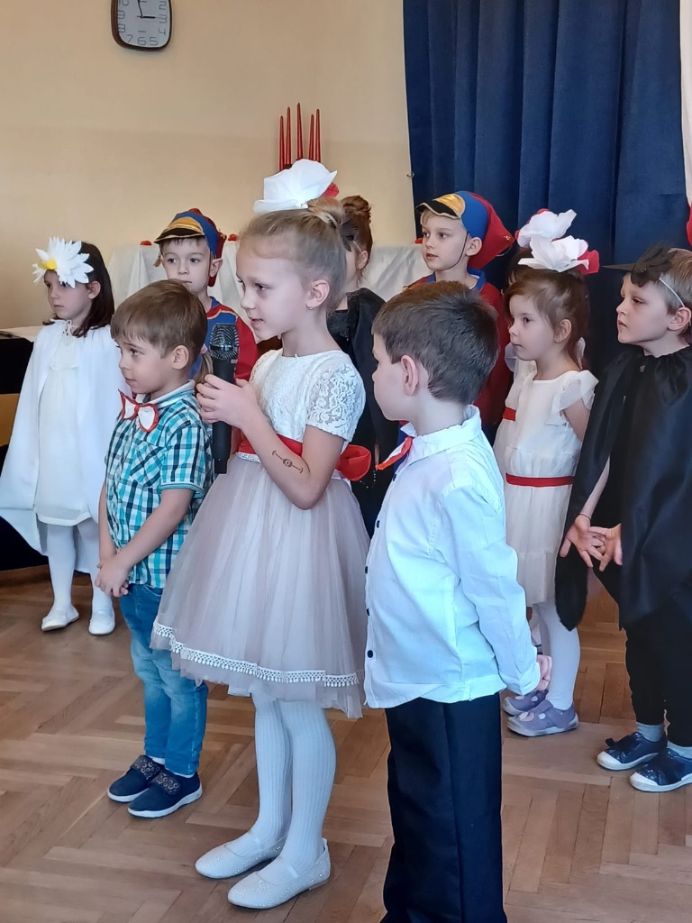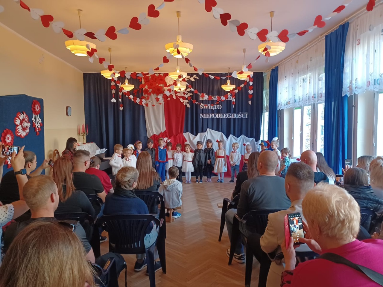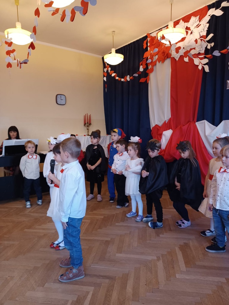 Z okazji Święta Niepodległości nasze przedszkolaki z grupy Elfy przygotowały wzruszające przedstawienie pt. „Pisk Białego Orła”. Mali artyści z ogromnym zaangażowaniem zaprezentowali program artystyczny pełen patriotycznych wierszy, piosenek i scenek, które przypomniały wszystkim o ważnych dla Polaków wartościach – wolności, miłości do ojczyzny i dumie z narodowych symboli. Podczas uroczystości dzieci w pięknych, strojach zaprezentowały wiersze, piosenki i krótkie scenki, które przypomniały wszystkim, jak ważne są dla nas wartości takie jak wolność, ojczyzna i miłość do Polski. Symbole narodowe – flaga, godło i hymn – towarzyszyły całemu wydarzeniu, a mali artyści z ogromnym zaangażowaniem i dumą opowiadali historię naszego kraju. Nie zabrakło też chwili wzruszenia przy wspólnym odśpiewaniu „Mazurka Dąbrowskiego”. Przedstawienie było nie tylko piękną lekcją patriotyzmu, ale też dowodem na to, że nawet najmłodsi potrafią z sercem i dumą mówić o Polsce. Przedstawienie było nie tylko lekcją historii i patriotyzmu, ale też wspaniałą okazją do wspólnego świętowania w duchu radości i jedności.