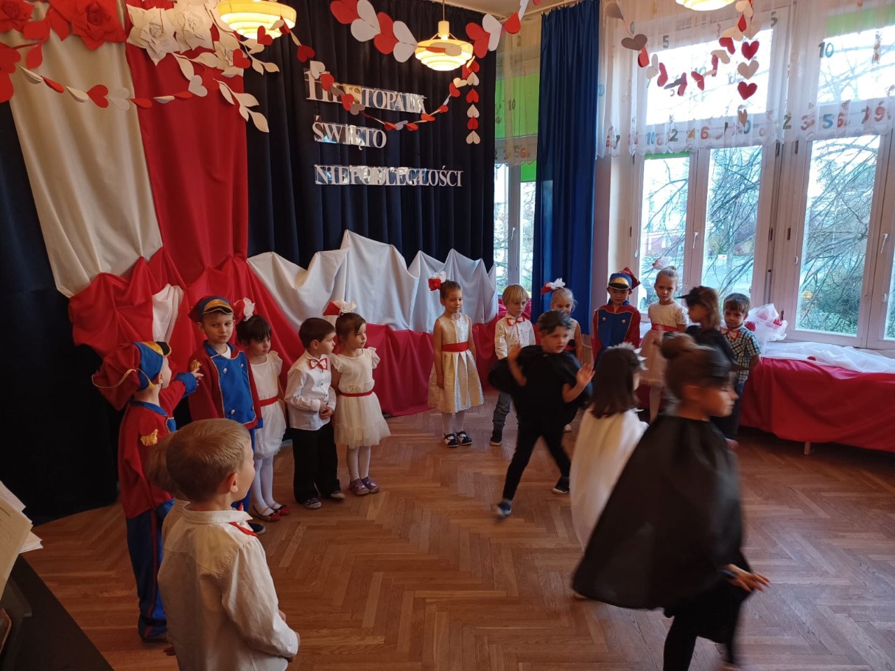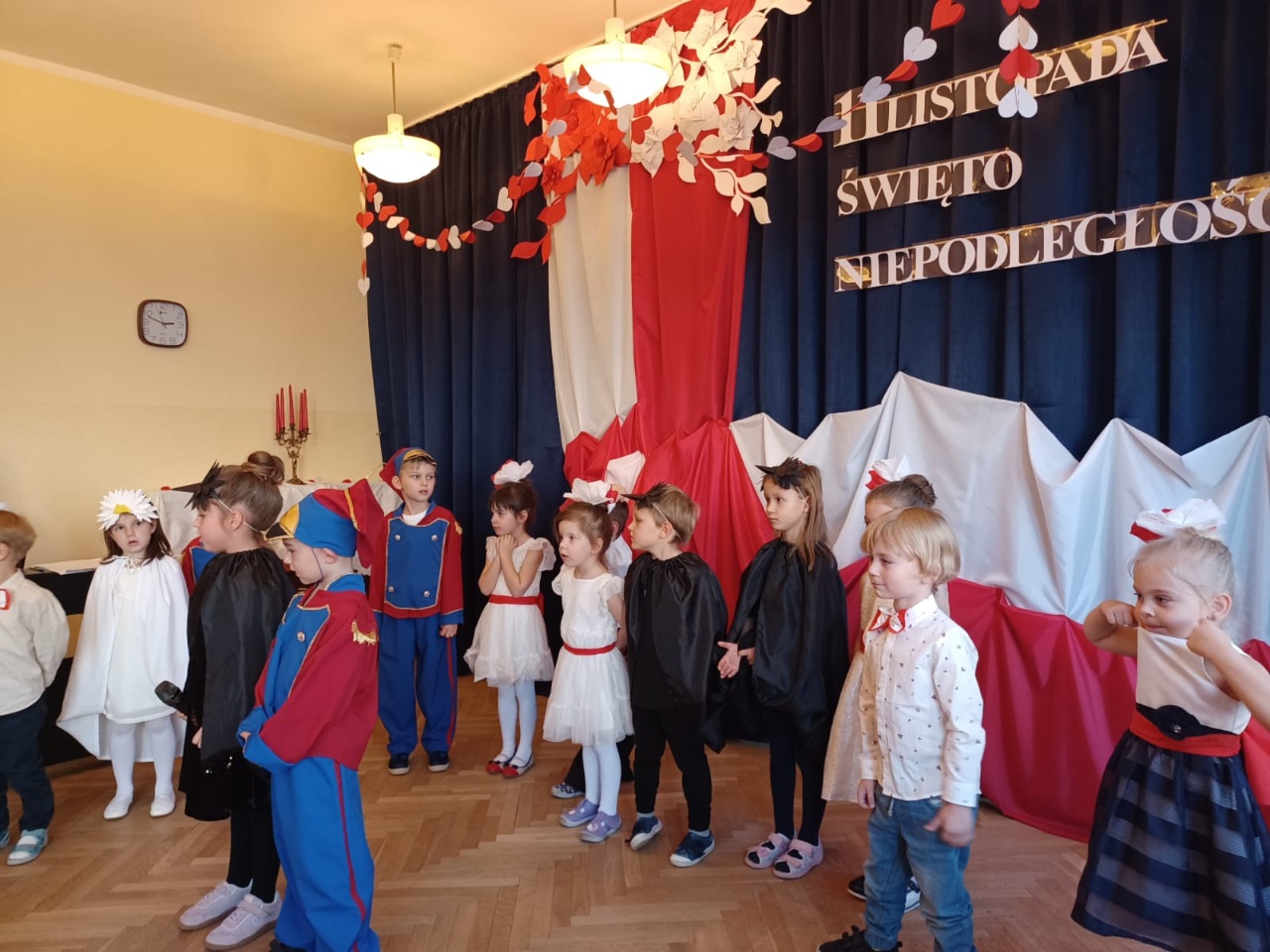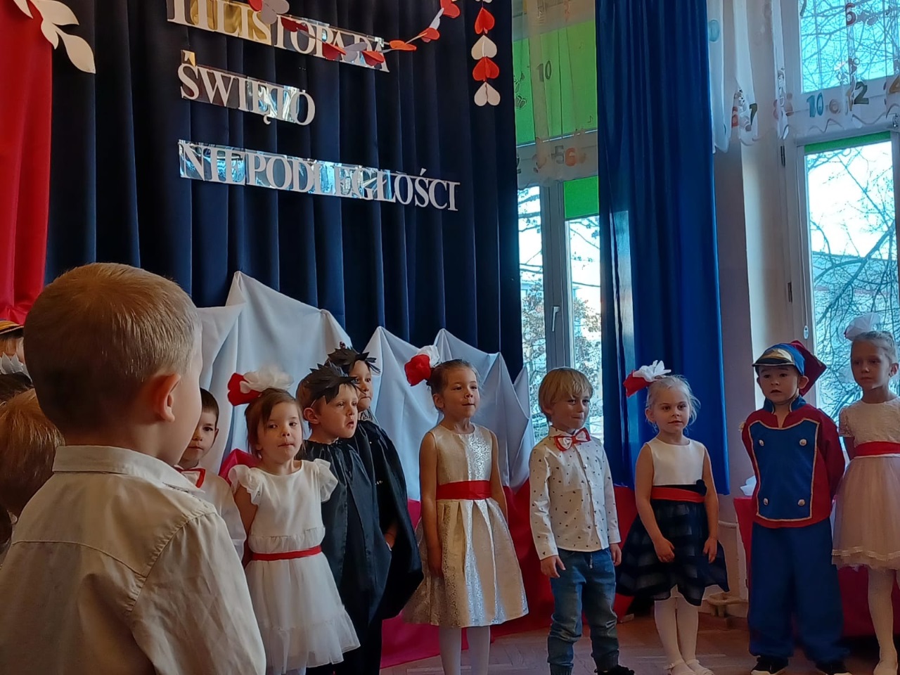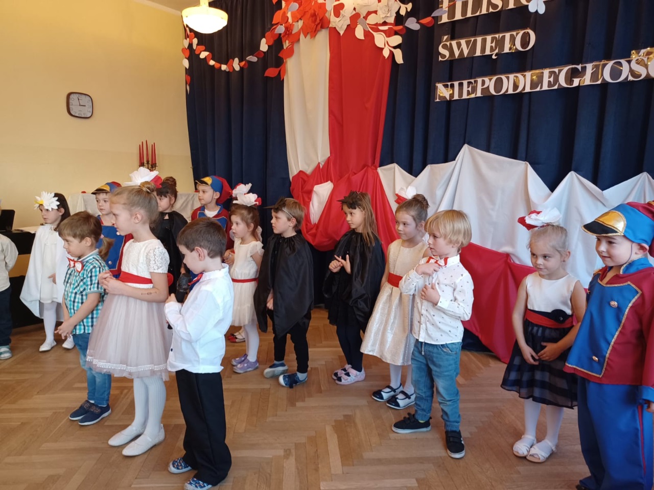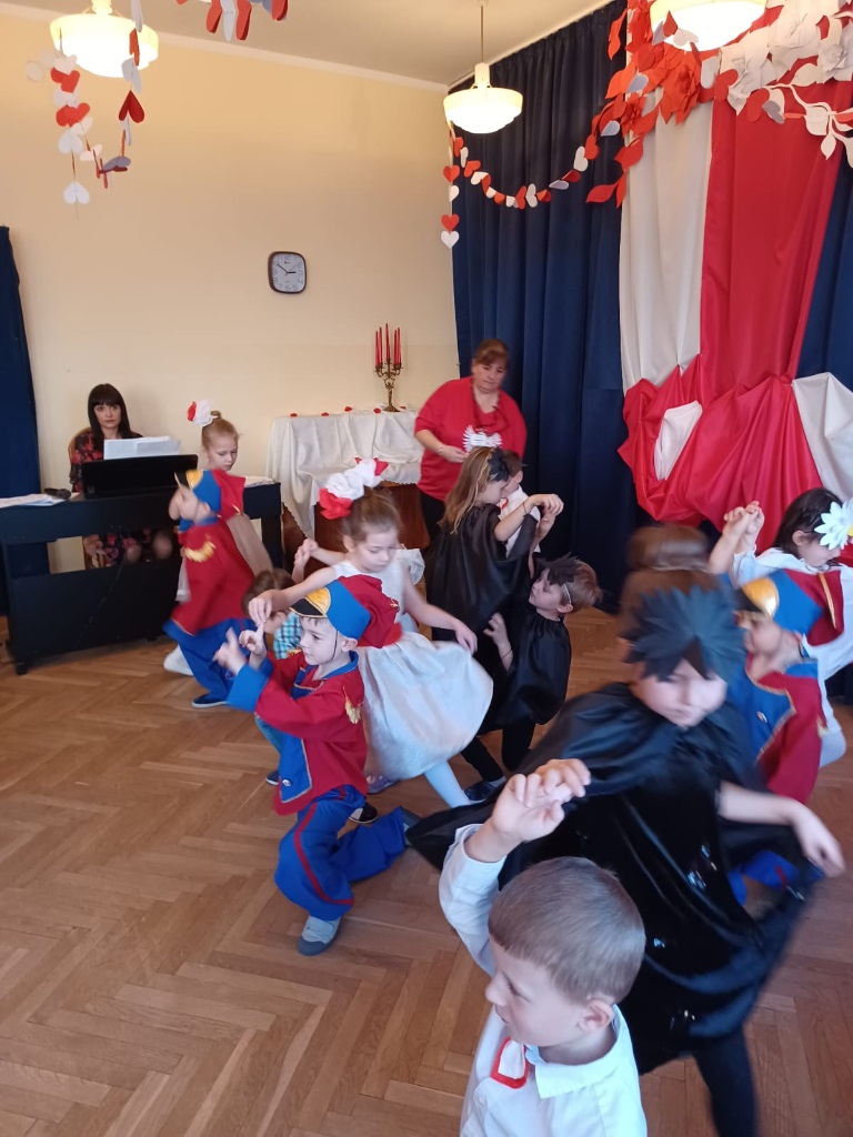 Z okazji Święta Niepodległości nasze przedszkolaki z grupy Elfy przygotowały wzruszające przedstawienie pt. „Pisk Białego Orła”. Mali artyści z ogromnym zaangażowaniem zaprezentowali program artystyczny pełen patriotycznych wierszy, piosenek i scenek, które przypomniały wszystkim o ważnych dla Polaków wartościach – wolności, miłości do ojczyzny i dumie z narodowych symboli. Podczas uroczystości dzieci w pięknych, strojach zaprezentowały wiersze, piosenki i krótkie scenki, które przypomniały wszystkim, jak ważne są dla nas wartości takie jak wolność, ojczyzna i miłość do Polski. Symbole narodowe – flaga, godło i hymn – towarzyszyły całemu wydarzeniu, a mali artyści z ogromnym zaangażowaniem i dumą opowiadali historię naszego kraju. Nie zabrakło też chwili wzruszenia przy wspólnym odśpiewaniu „Mazurka Dąbrowskiego”. Przedstawienie było nie tylko piękną lekcją patriotyzmu, ale też dowodem na to, że nawet najmłodsi potrafią z sercem i dumą mówić o Polsce. Przedstawienie było nie tylko lekcją historii i patriotyzmu, ale też wspaniałą okazją do wspólnego świętowania w duchu radości i jedności.