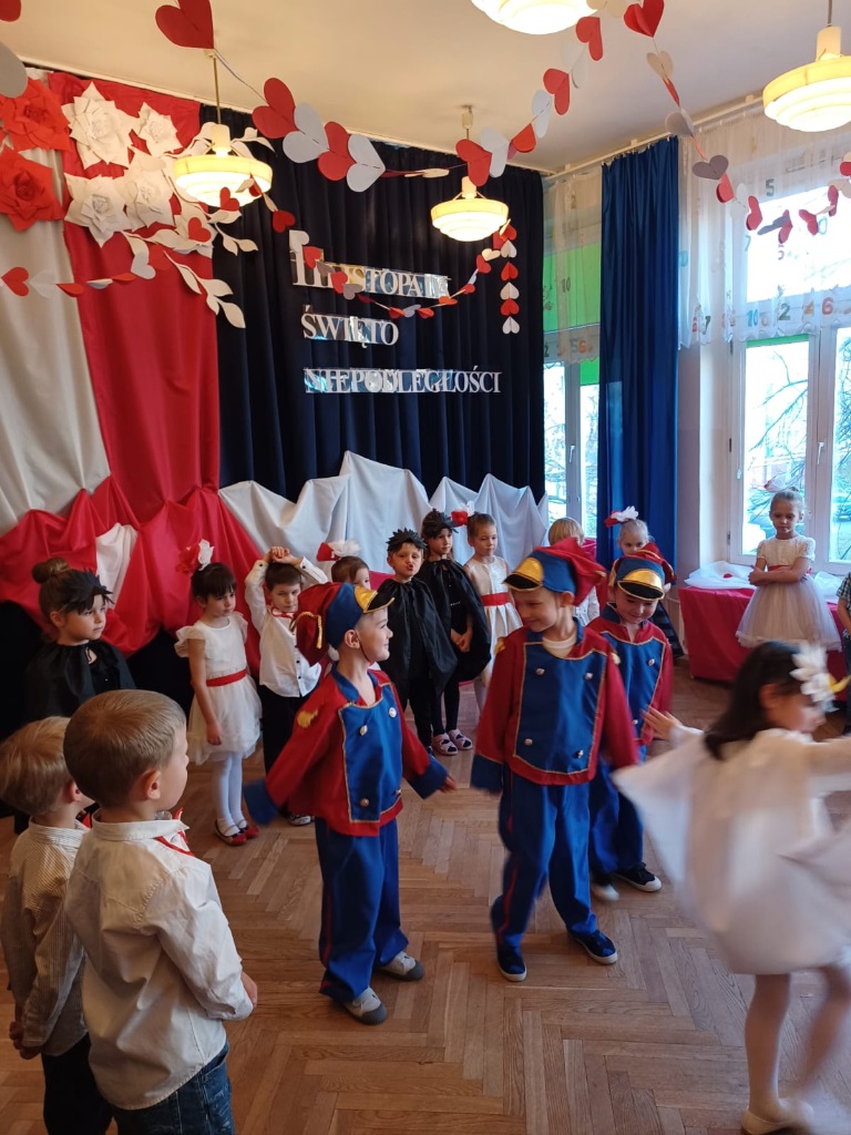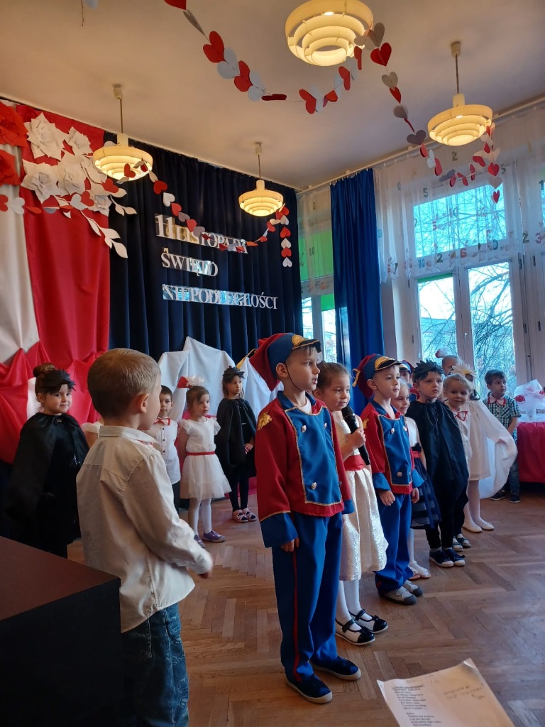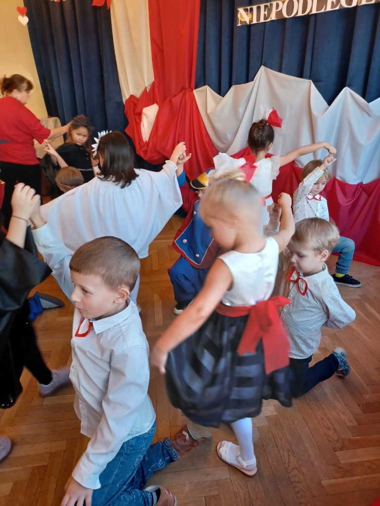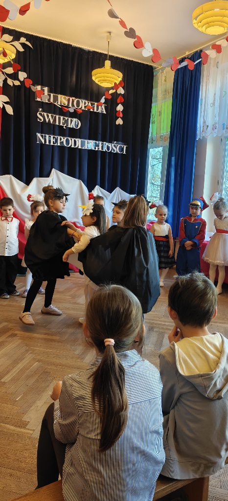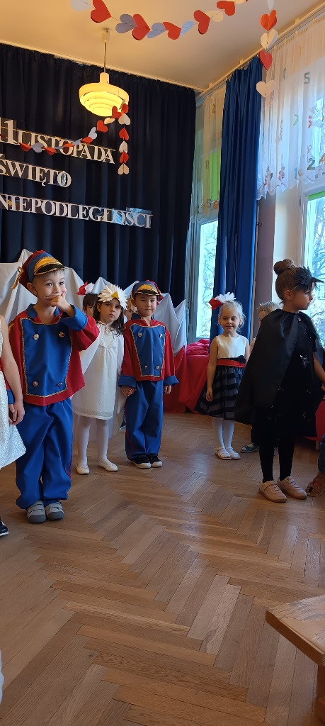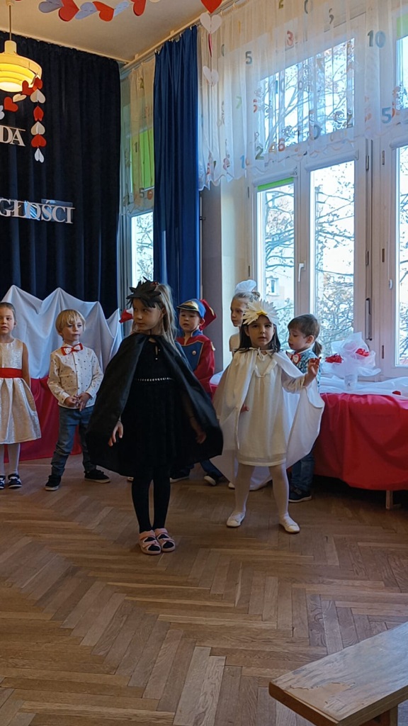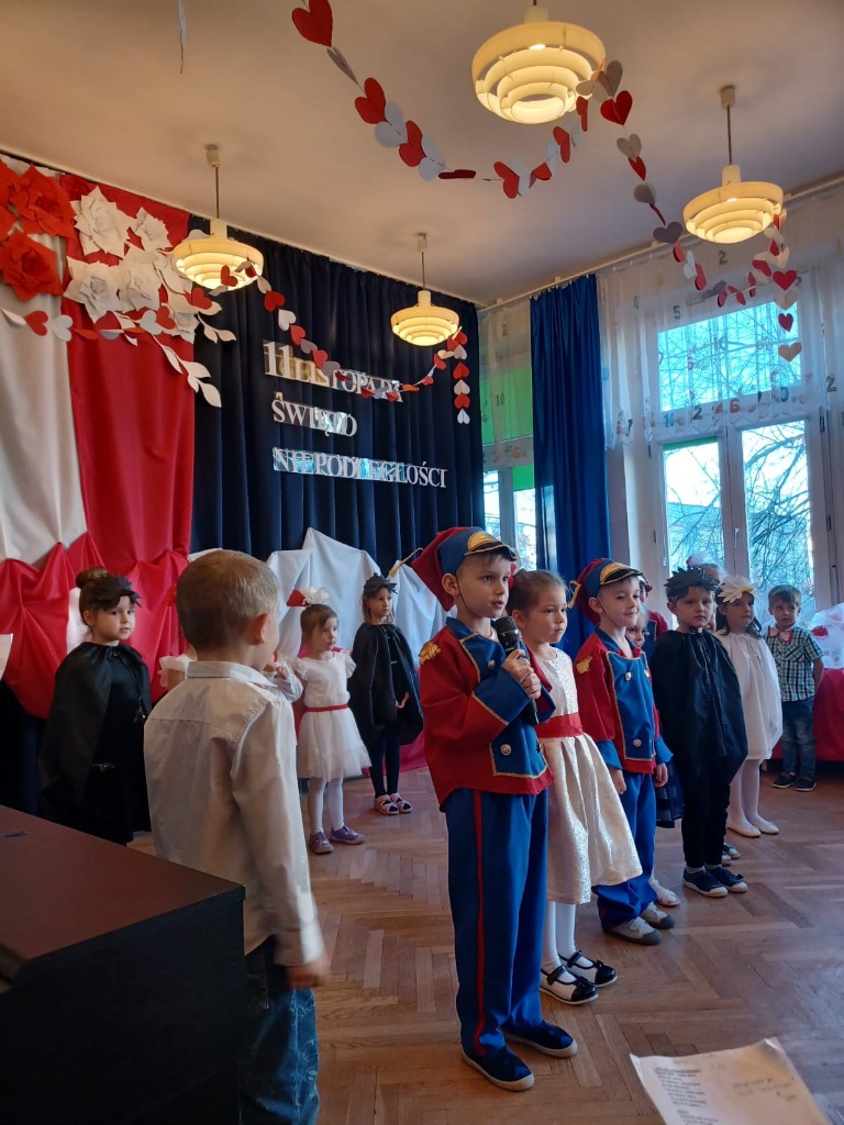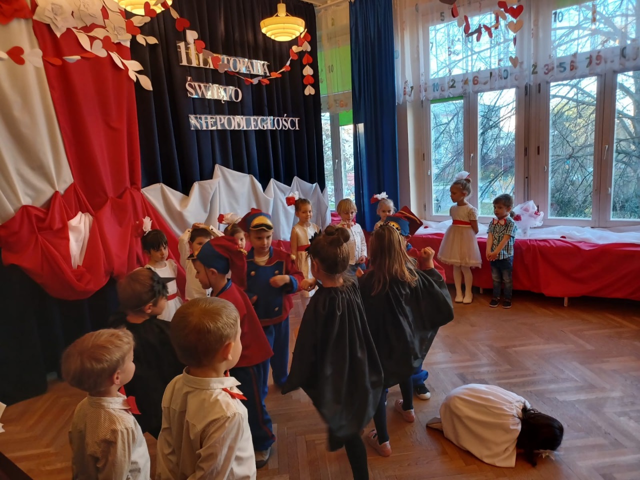 Z okazji Święta Niepodległości nasze przedszkolaki z grupy Elfy przygotowały wzruszające przedstawienie pt. „Pisk Białego Orła”. Mali artyści z ogromnym zaangażowaniem zaprezentowali program artystyczny pełen patriotycznych wierszy, piosenek i scenek, które przypomniały wszystkim o ważnych dla Polaków wartościach – wolności, miłości do ojczyzny i dumie z narodowych symboli. Podczas uroczystości dzieci w pięknych, strojach zaprezentowały wiersze, piosenki i krótkie scenki, które przypomniały wszystkim, jak ważne są dla nas wartości takie jak wolność, ojczyzna i miłość do Polski. Symbole narodowe – flaga, godło i hymn – towarzyszyły całemu wydarzeniu, a mali artyści z ogromnym zaangażowaniem i dumą opowiadali historię naszego kraju. Nie zabrakło też chwili wzruszenia przy wspólnym odśpiewaniu „Mazurka Dąbrowskiego”. Przedstawienie było nie tylko piękną lekcją patriotyzmu, ale też dowodem na to, że nawet najmłodsi potrafią z sercem i dumą mówić o Polsce. Przedstawienie było nie tylko lekcją historii i patriotyzmu, ale też wspaniałą okazją do wspólnego świętowania w duchu radości i jedności.