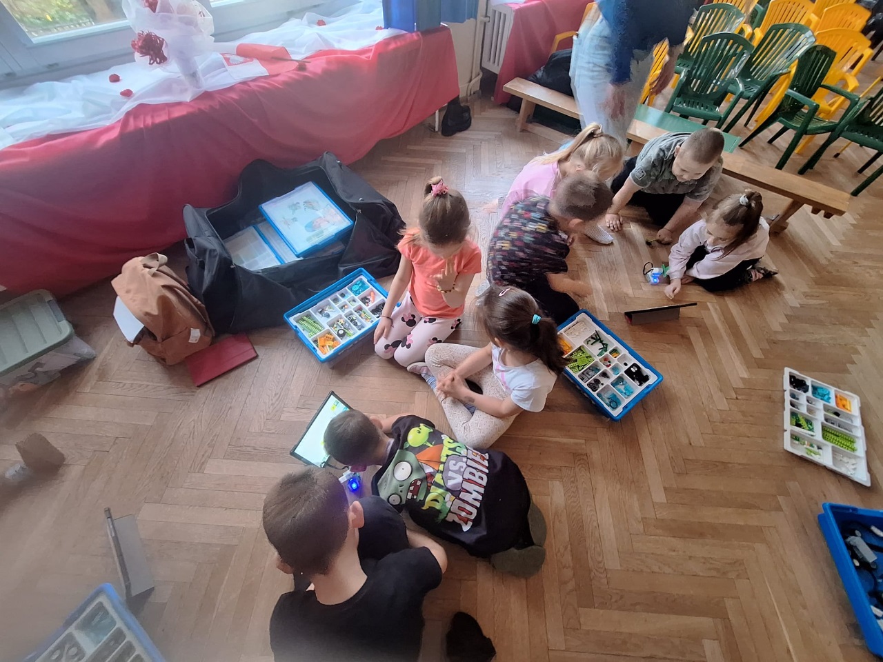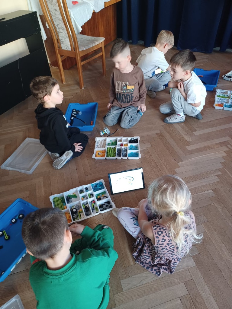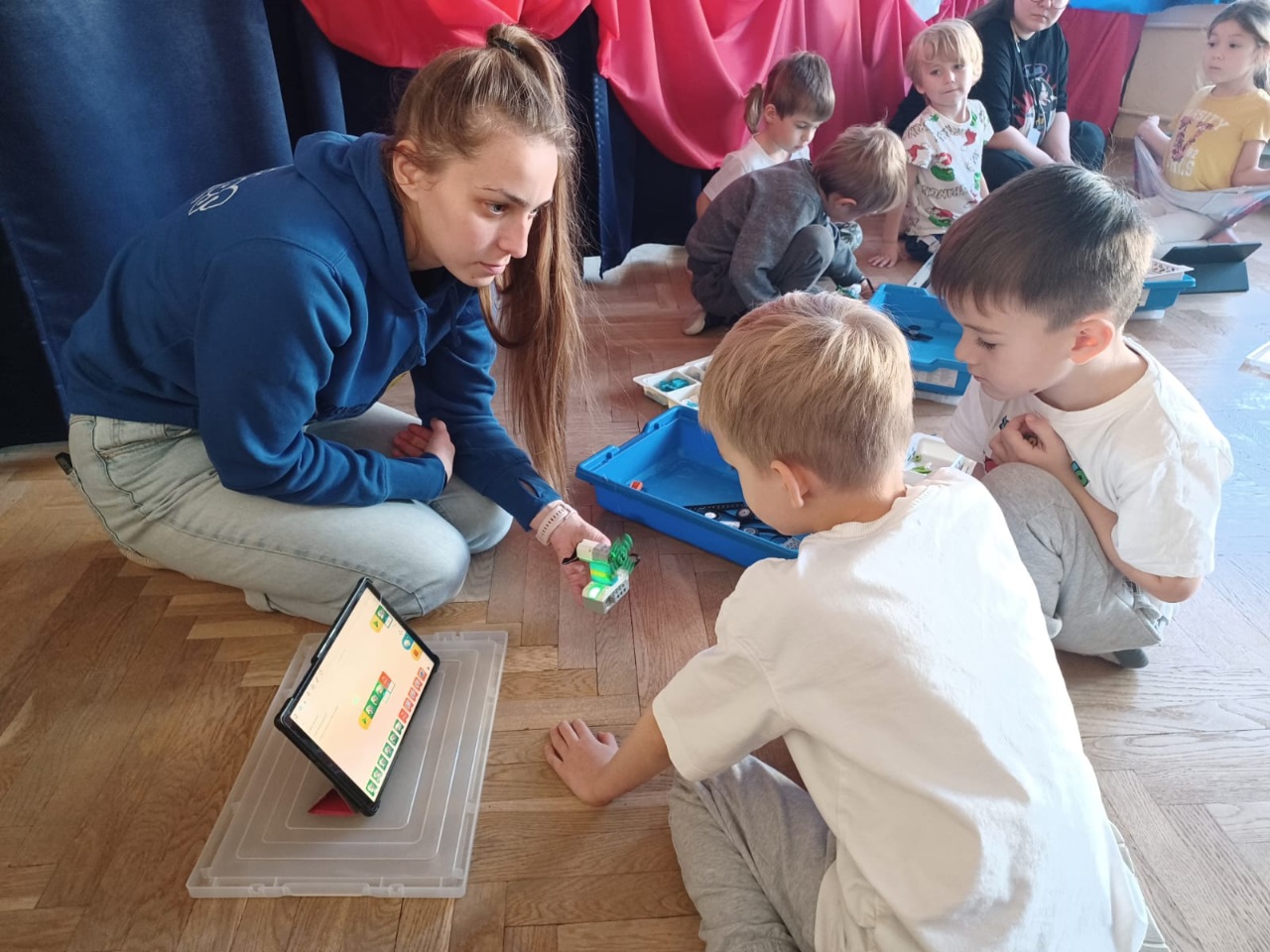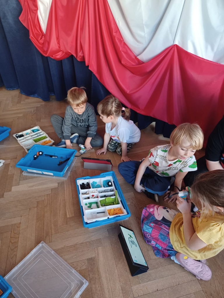 Wszystkie dzieci z naszego przedszkola, wzięły udział w fascynujących zajęciach z robotyki. Przedszkolaki miały okazję poznać podstawy programowania oraz zobaczyć, jak z prostych elementów powstają prawdziwe, poruszające się roboty. Pod okiem instruktorów mali konstruktorzy budowali swoje pierwsze modele, testowali ich działanie i samodzielnie wprowadzali proste komendy. Zabawa połączona z nauką pozwoliła rozwinąć kreatywność, logiczne myślenie, współpracę w grupie oraz ciekawość świata technologii. Dzieci były zachwycone, a zajęcia pełne były śmiechu, odkryć i „robotycznych” eksperymentów. To wyjątkowe doświadczenie, które uczy, że nauka może być świetną zabawą!