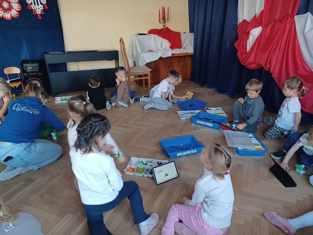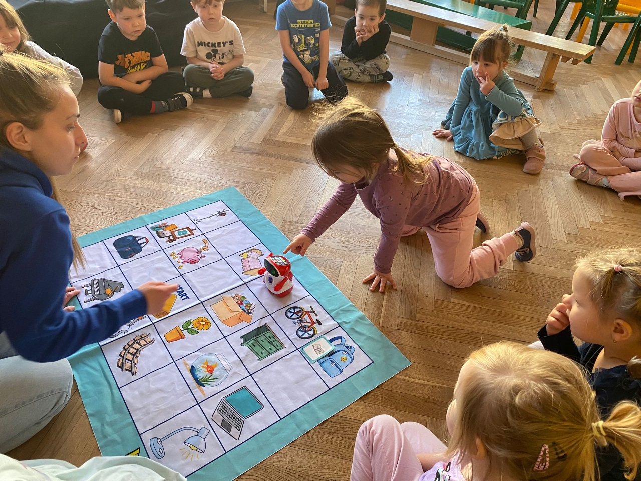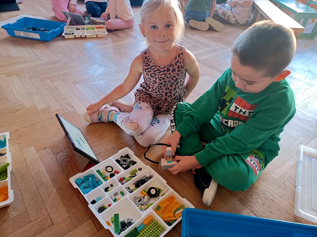Wszystkie dzieci z naszego przedszkola, wzięły udział w fascynujących zajęciach z robotyki. Przedszkolaki miały okazję poznać podstawy programowania oraz zobaczyć, jak z prostych elementów powstają prawdziwe, poruszające się roboty. Pod okiem instruktorów mali konstruktorzy budowali swoje pierwsze modele, testowali ich działanie i samodzielnie wprowadzali proste komendy. Zabawa połączona z nauką pozwoliła rozwinąć kreatywność, logiczne myślenie, współpracę w grupie oraz ciekawość świata technologii. Dzieci były zachwycone, a zajęcia pełne były śmiechu, odkryć i „robotycznych” eksperymentów. To wyjątkowe doświadczenie, które uczy, że nauka może być świetną zabawą!