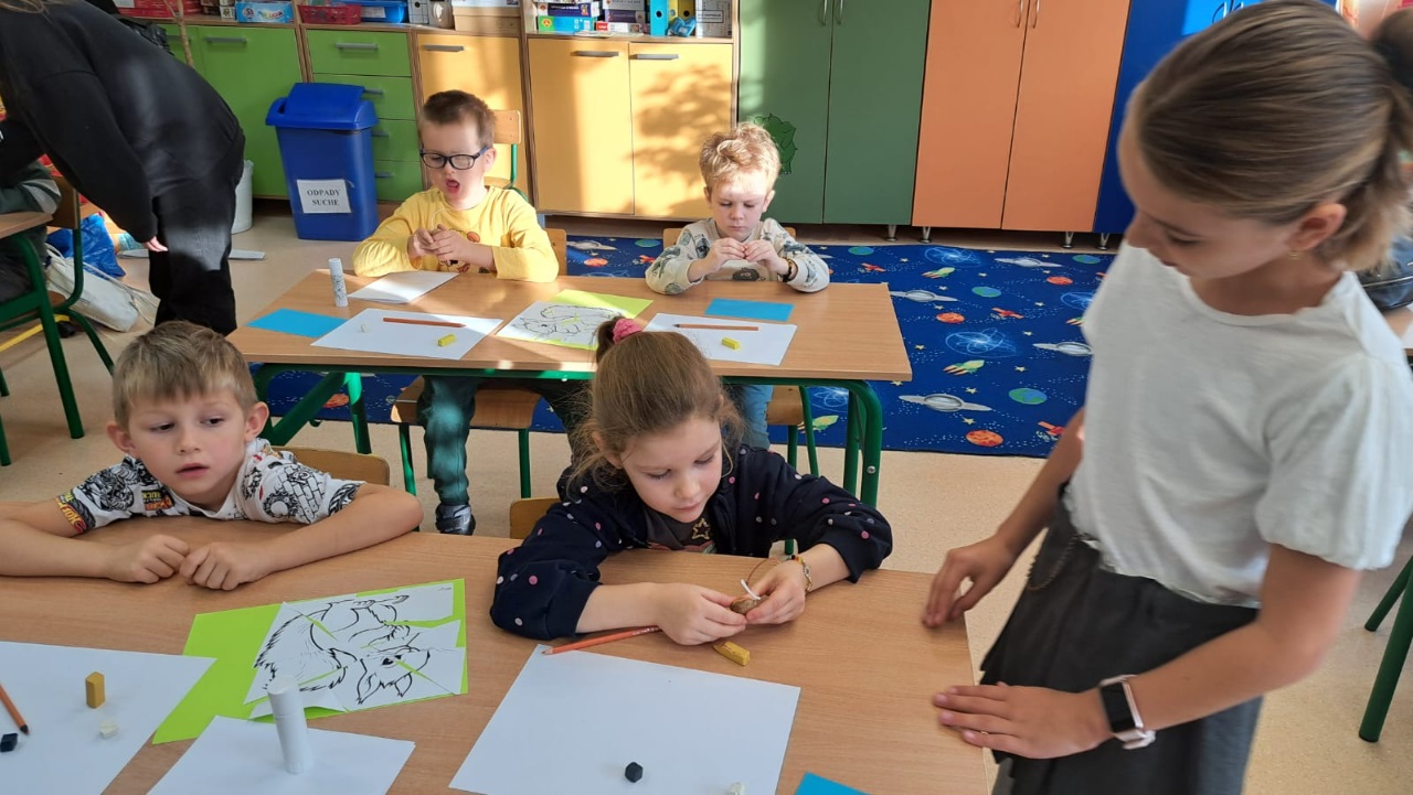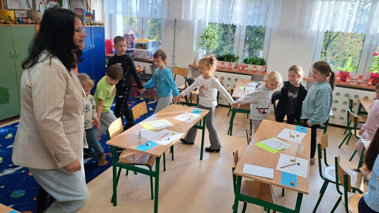 W mi onym tygodniu koszałki opałki wybrały się do szkoły na swoje pierwsze zajęcia. W ten sposób rozpoczęły cykl wyjść, który będzie trwał przez cały najbliższy rok przedszkolny.