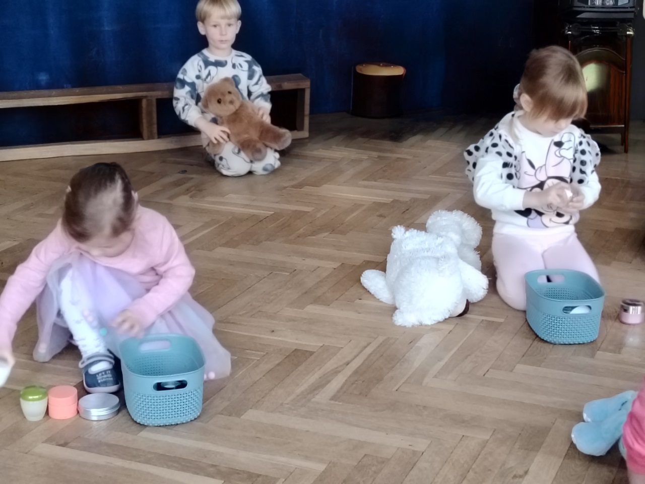 We wtorek 25.11 Krasnoludki obchodziły swój pierwszy dzień pluszowego misia. Były rozmowy o misiach, zagadki wspólna zabawa z chochlikami i elfami. Na koniec nie zabrakło portretów misia.