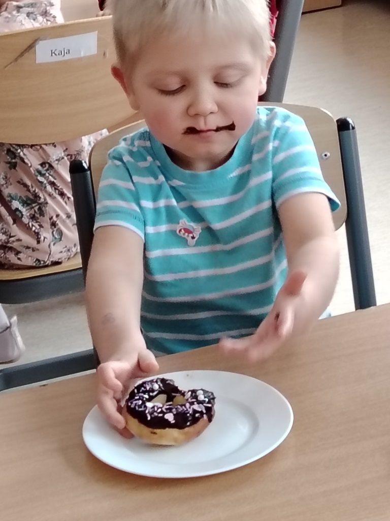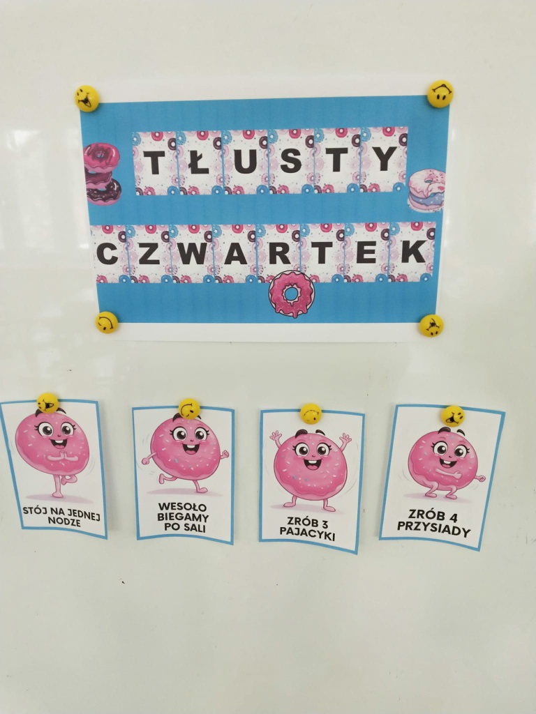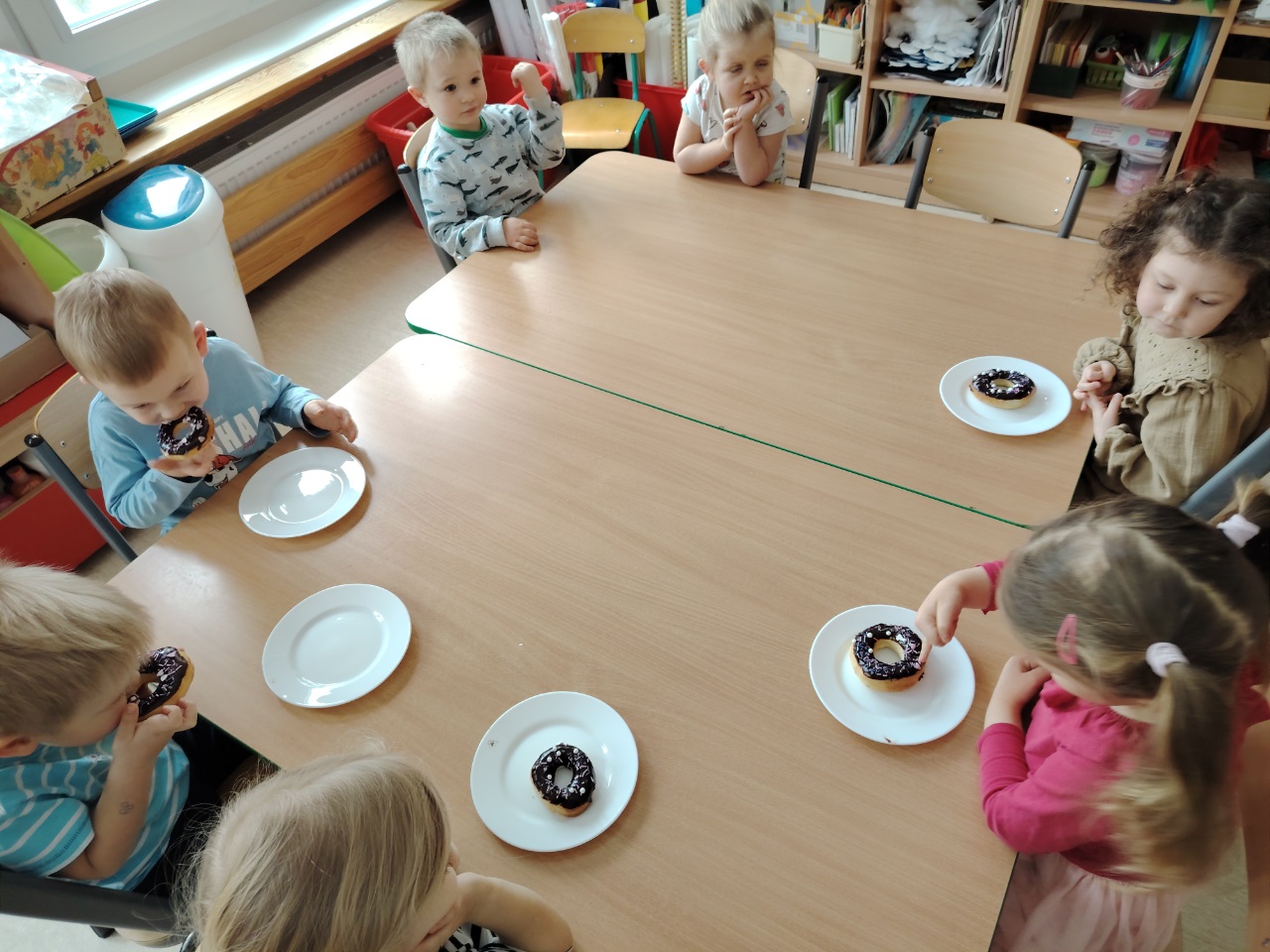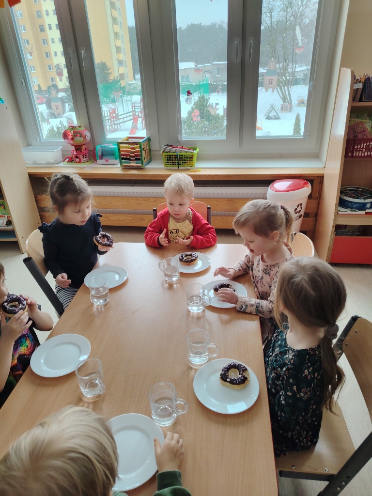Tłusty czwartek to nie tylko pączki i inne słodkości. To również tradycja, z którą nasze Krasnoludki się zapoznawały. Jest to również świetna okazja, aby w zabawniej, wesołej atmosferze poćwiczyć swoje umiejętności matematyczne i zaznać ruchu. Tego dnia wszyscy świetnie się bawili, a na koniec zajadali zdrowymi pysznościami.