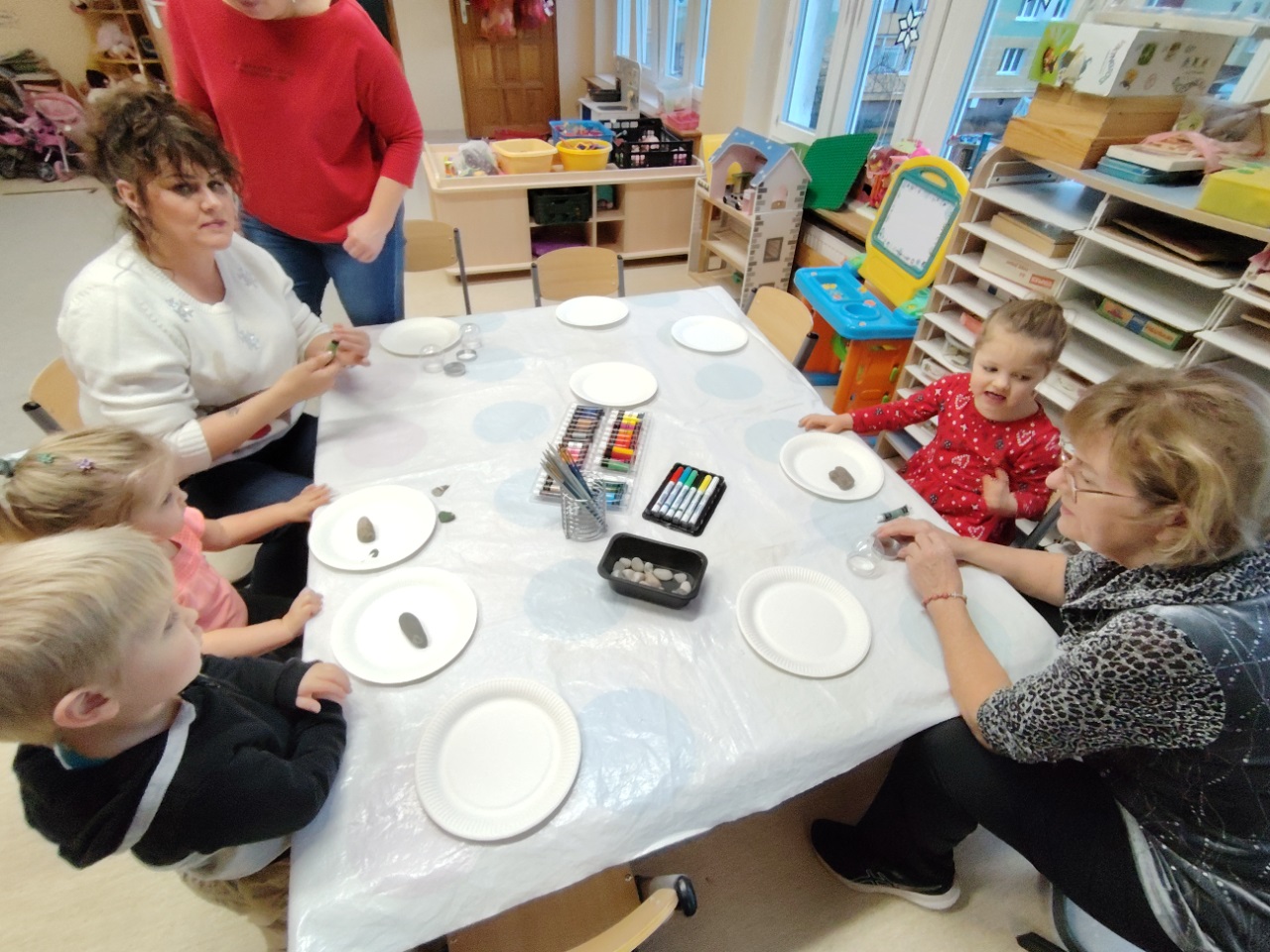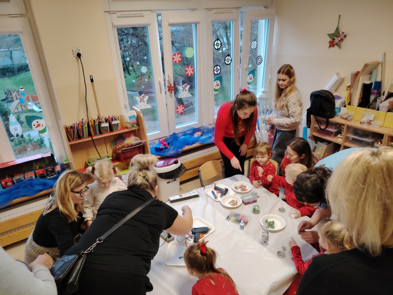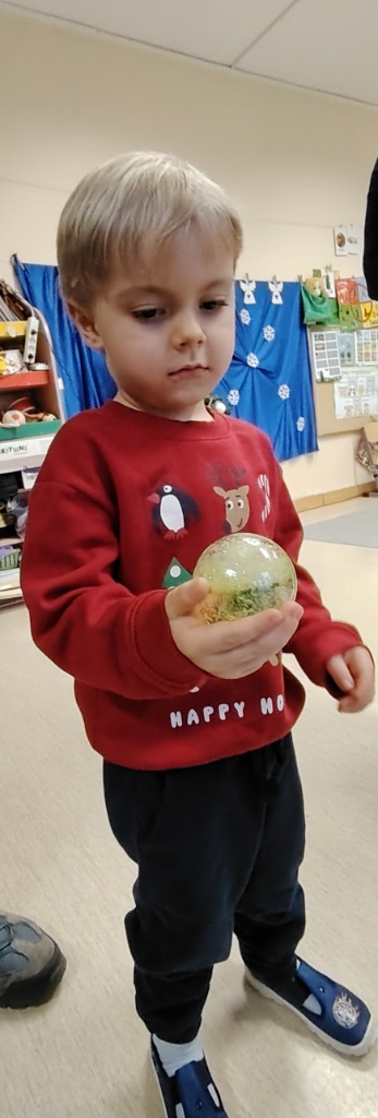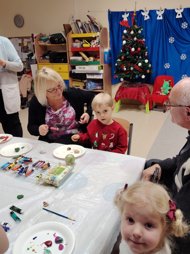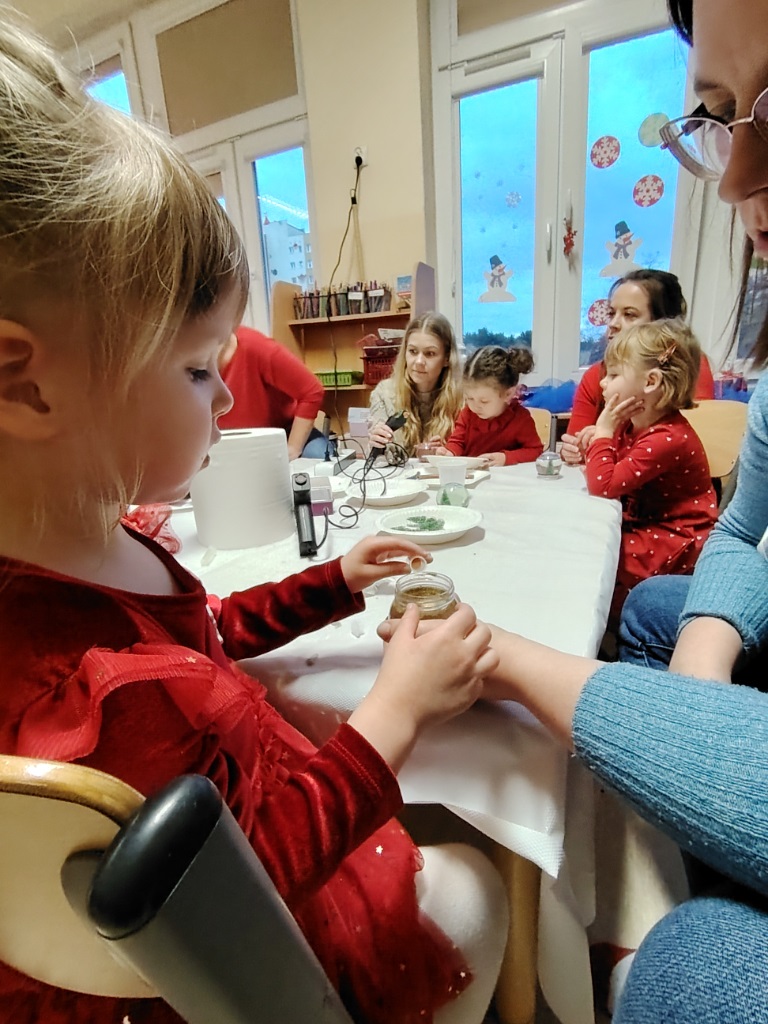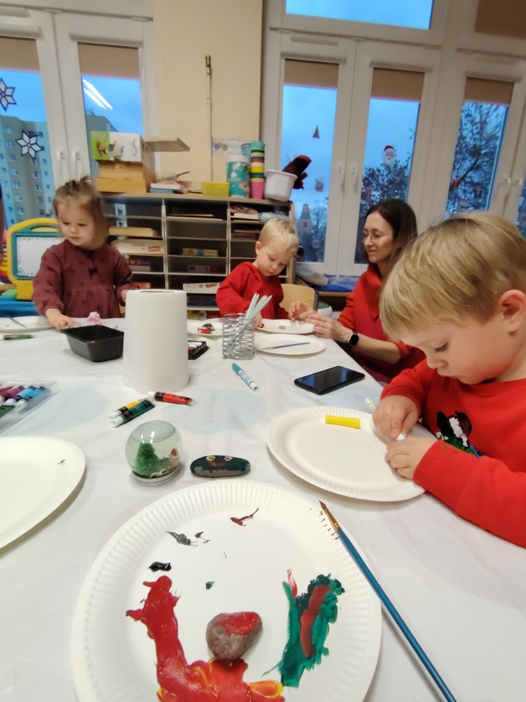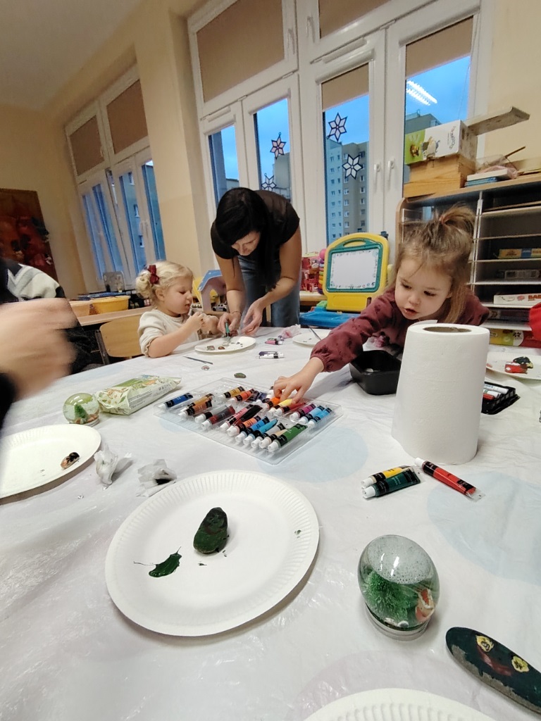 We wtorek 9.12 Krasnoludki wraz ze swoimi bliskimi stworzyły kule śnieżne oraz o dobiły kamyczki. Takie kule kojarzą się z dzieciństwem, beztroską, nutką wspomnień oraz dają pole wyobraźni. Była to okazja do lepszego poznania się, wspólnych rozmów, a także cichej nadziei że może śnieg jednak do nas zawita. Cieszymy się, że mogliśmy spędzić ten czas razem i gratulujemy pięknych prac.