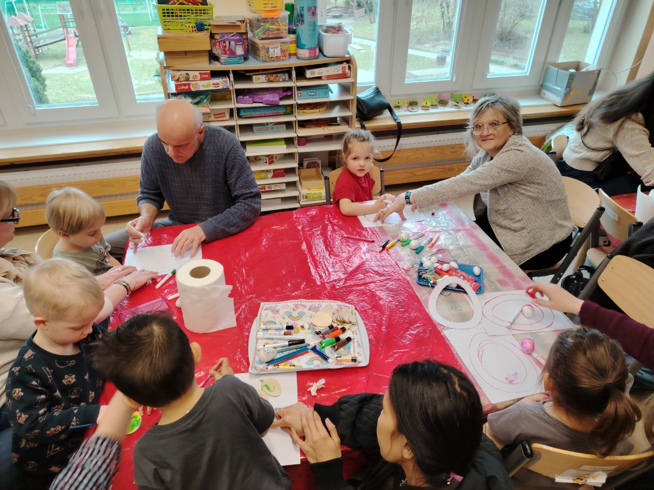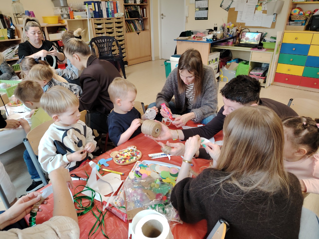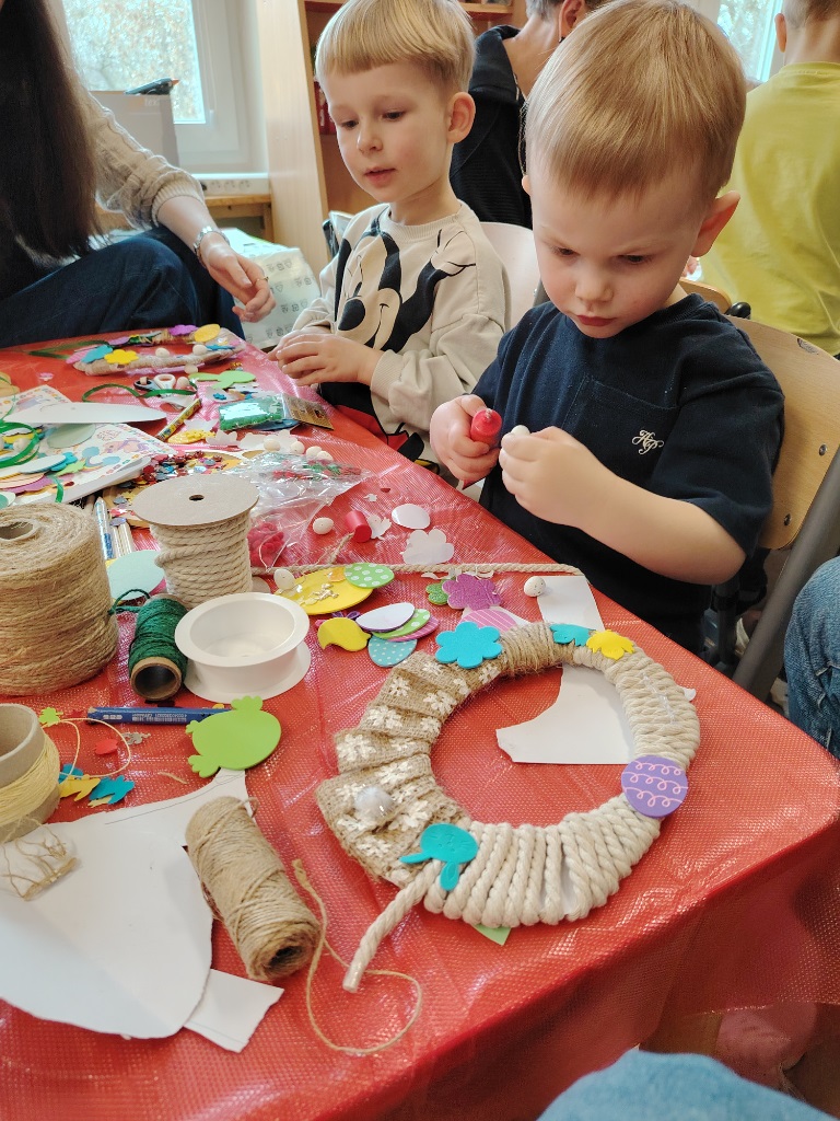 We wtorek 24.03.2026 Krasnoludki wraz ze swymi najbliższymi wzięły udział w warsztatach Wielkanocnych. Pracując dzielnie i wytrwale stworzyli przepiękne wiosenne dekoracje. Był to niezapomniany czas pełen rozmów, współdziałania, rozwijania kreatywności, ale przede wszystkim czas spędzony we wspólnym gronie. Dziękujemy za przybycie i zaangażowanie.