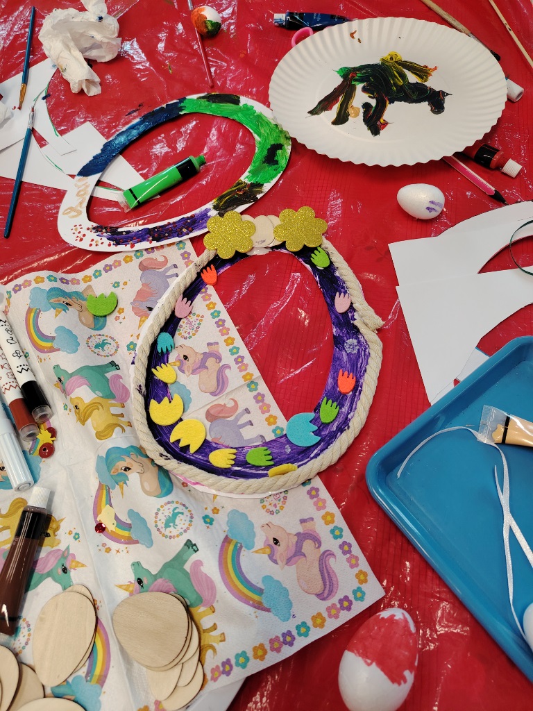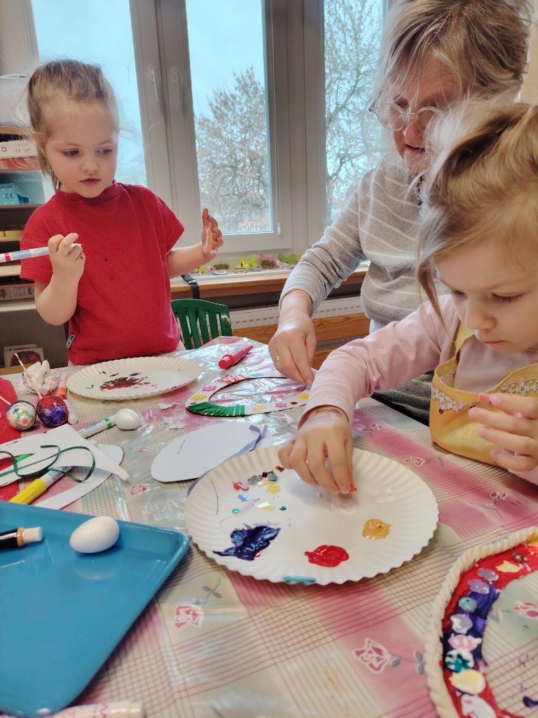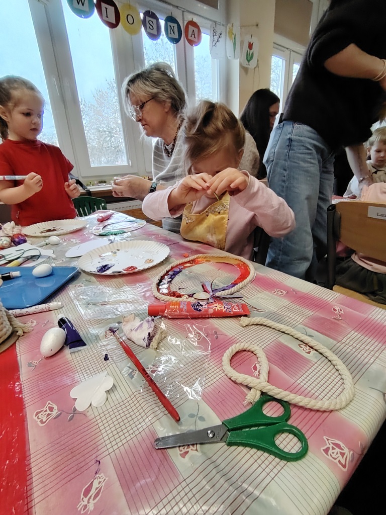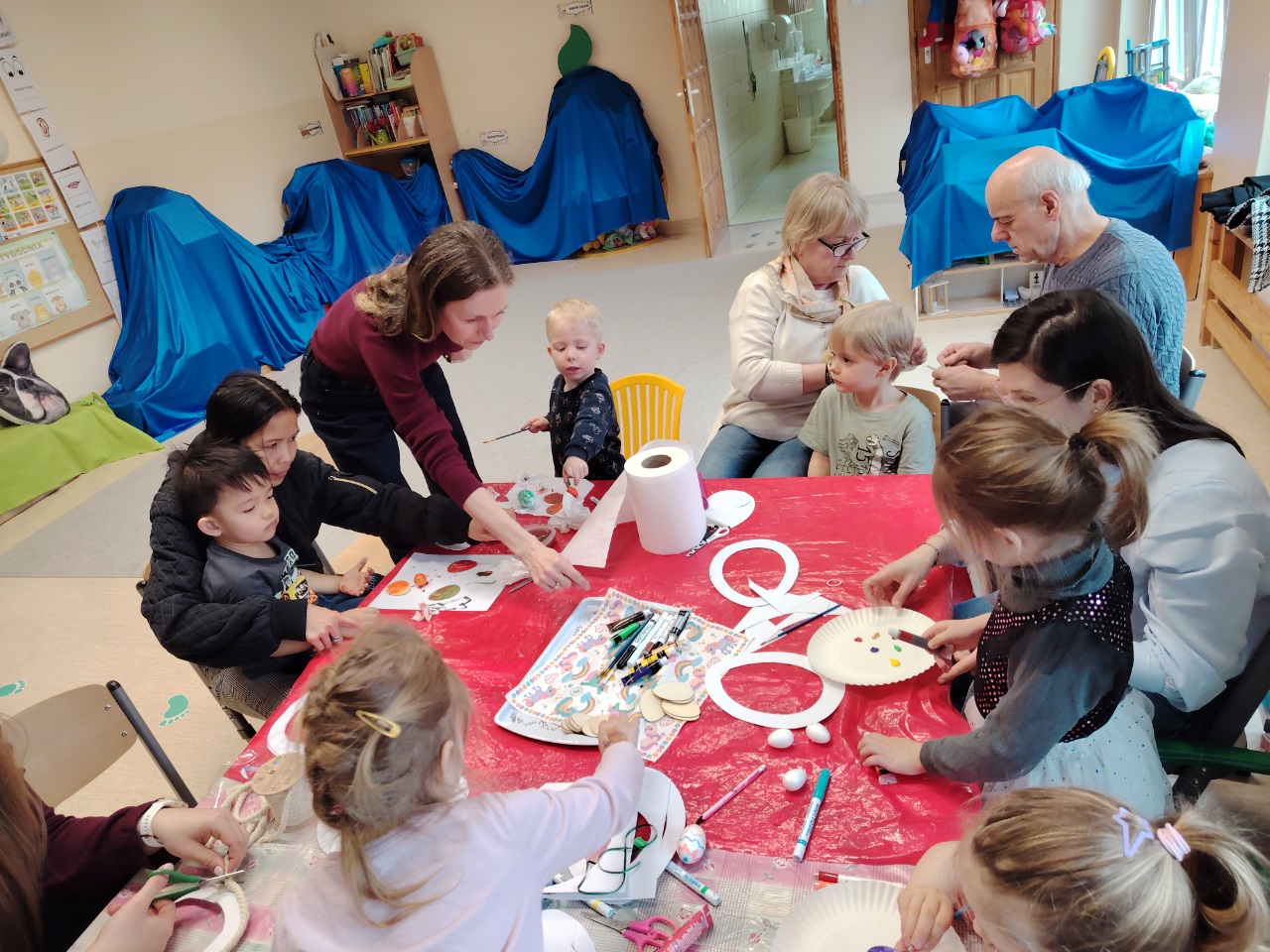 We wtorek 24.03.2026 Krasnoludki wraz ze swymi najbliższymi wzięły udział w warsztatach Wielkanocnych. Pracując dzielnie i wytrwale stworzyli przepiękne wiosenne dekoracje. Był to niezapomniany czas pełen rozmów, współdziałania, rozwijania kreatywności, ale przede wszystkim czas spędzony we wspólnym gronie. Dziękujemy za przybycie i zaangażowanie.