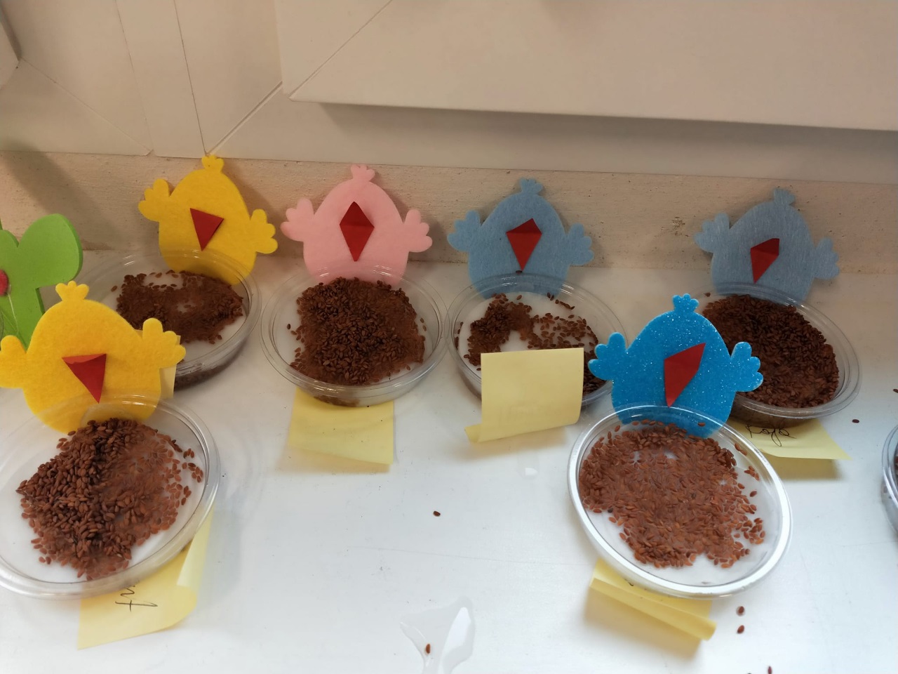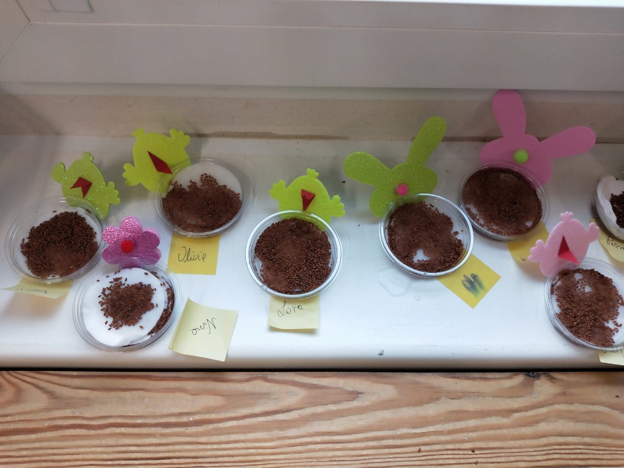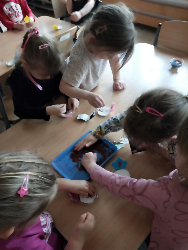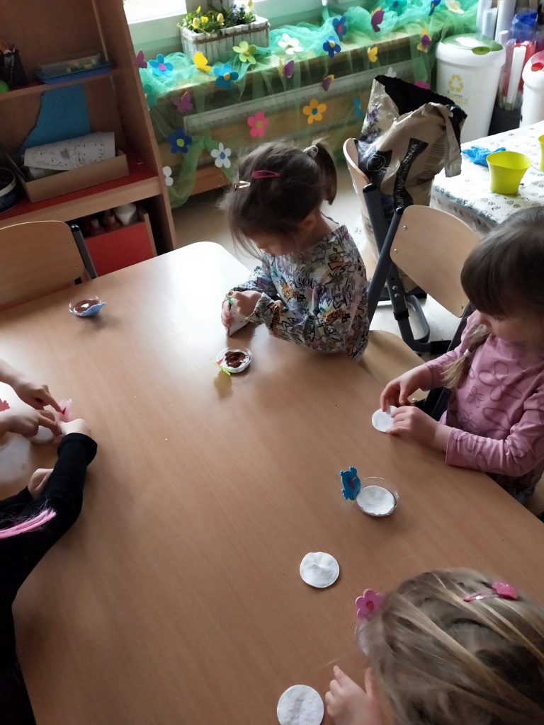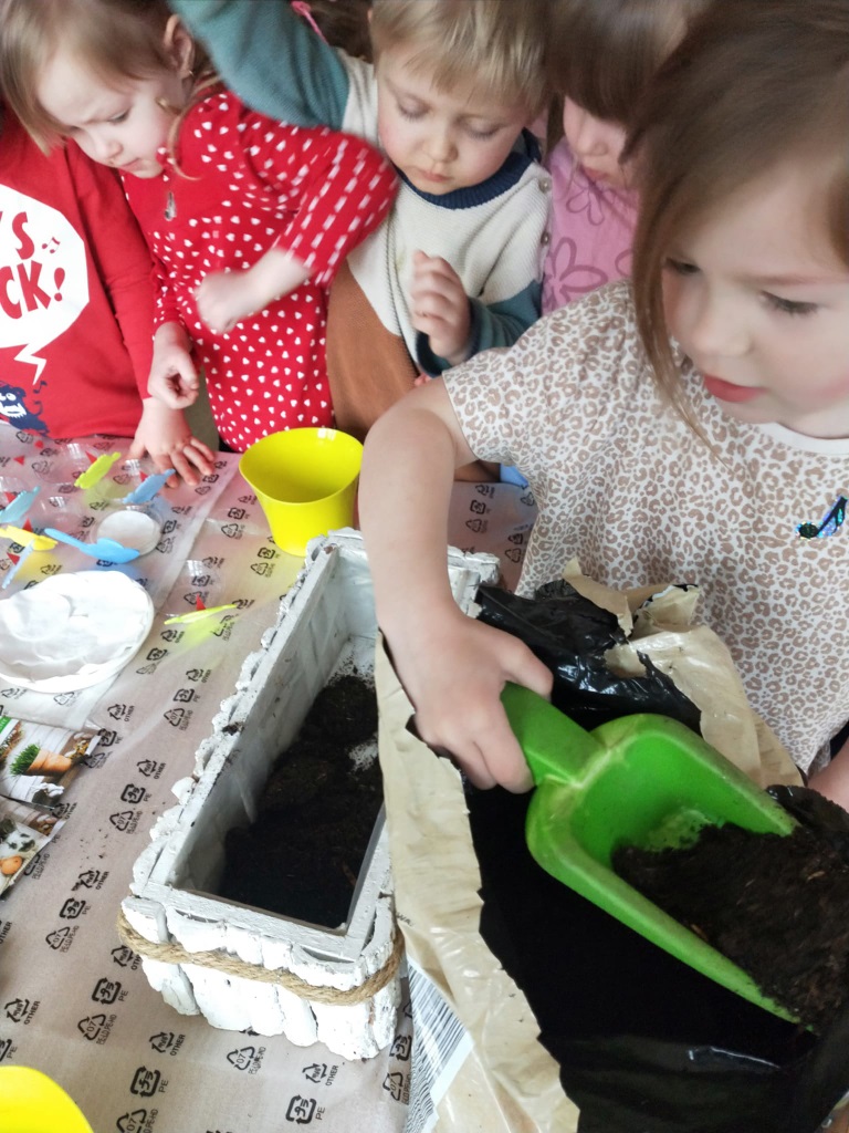 Czekając na wiosnę, Krasnoludki ozdobiły swoją sale wiosennym ogródkiem. Sadzeniu i sianiu nie było końca. Dzieci pracowały dzielnie i w pełnym skupieniu, zapraszając do sali Panią Wiosnę.