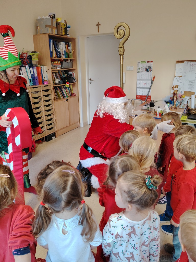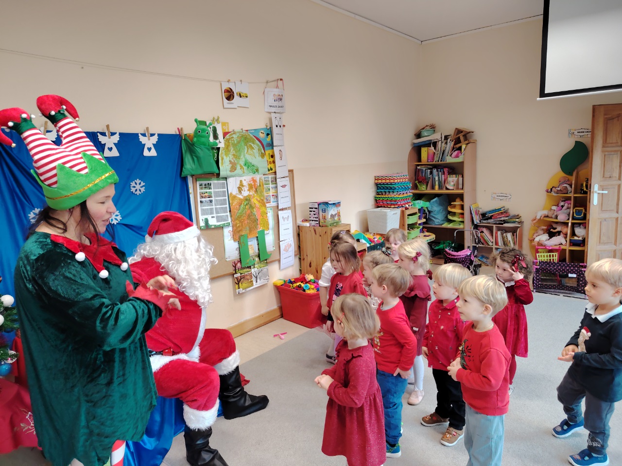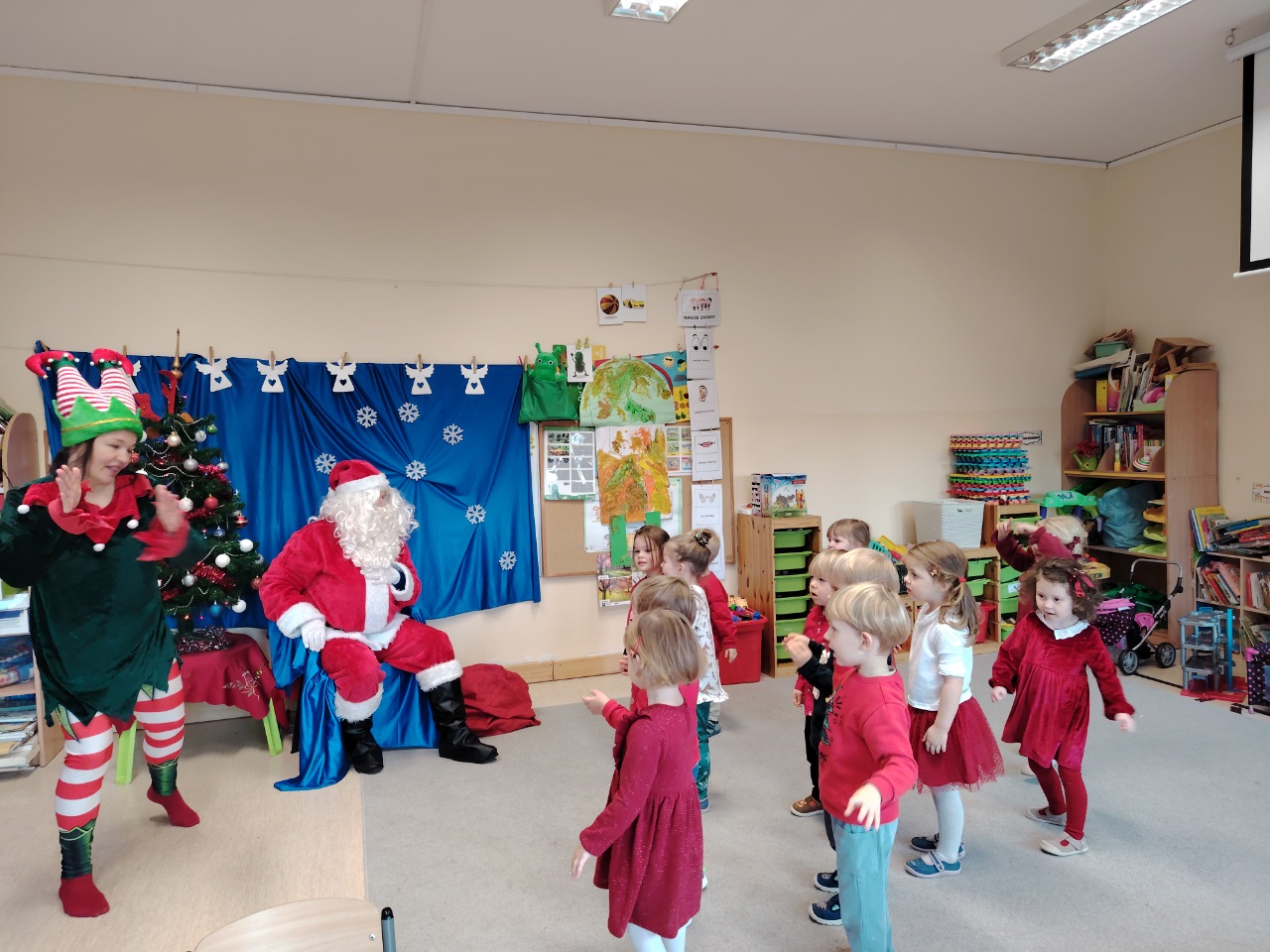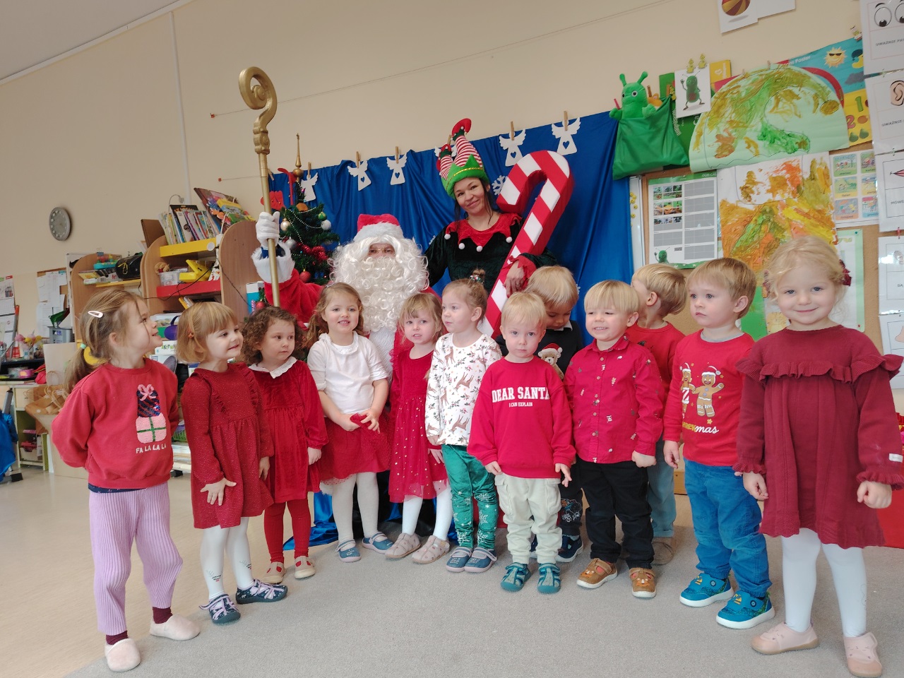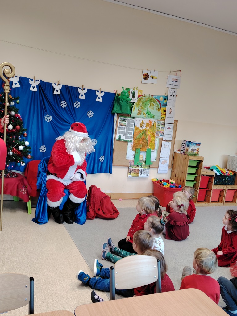 W czwartek 11. 12 do krasnoludów zawitał długo wyczekiwany gość. Święty Mikołaj przybył w raz z elfem. Ekscytacja i radość z tego spotkania była niesamowita. Dzieci już od śniadania wyczekiwały tego momentu. Były rozmowy, zadawanie pytań i wspólna zabawa z elfem. Mikołaj sprawdził w swoich zapisach, czy na pewno dzieci były grzeczne i dopiero po od śpiewaniu piosenki nastąpiło rozdanie prezentów.