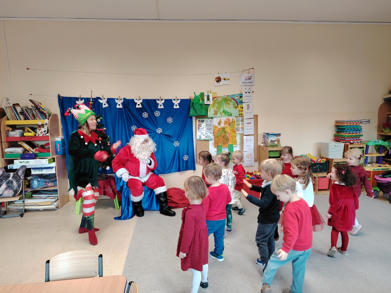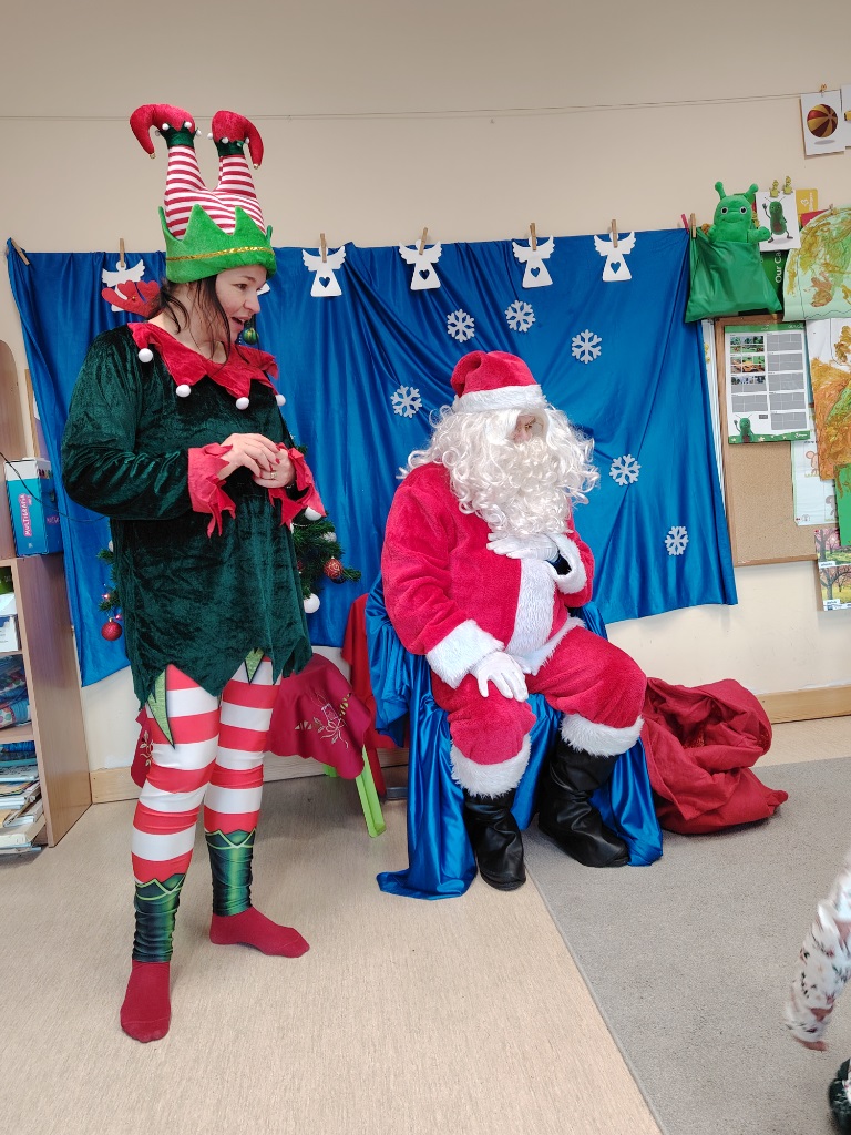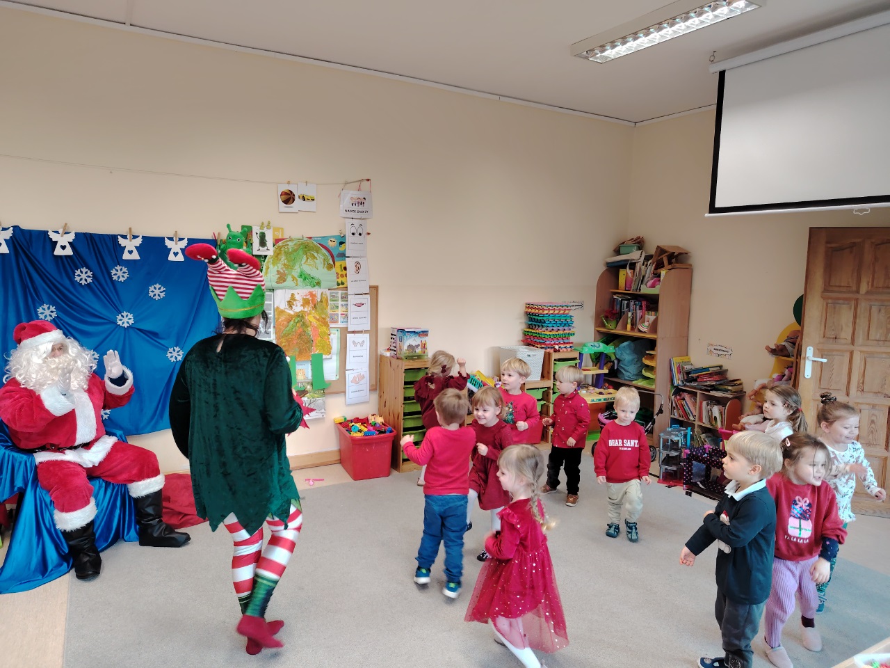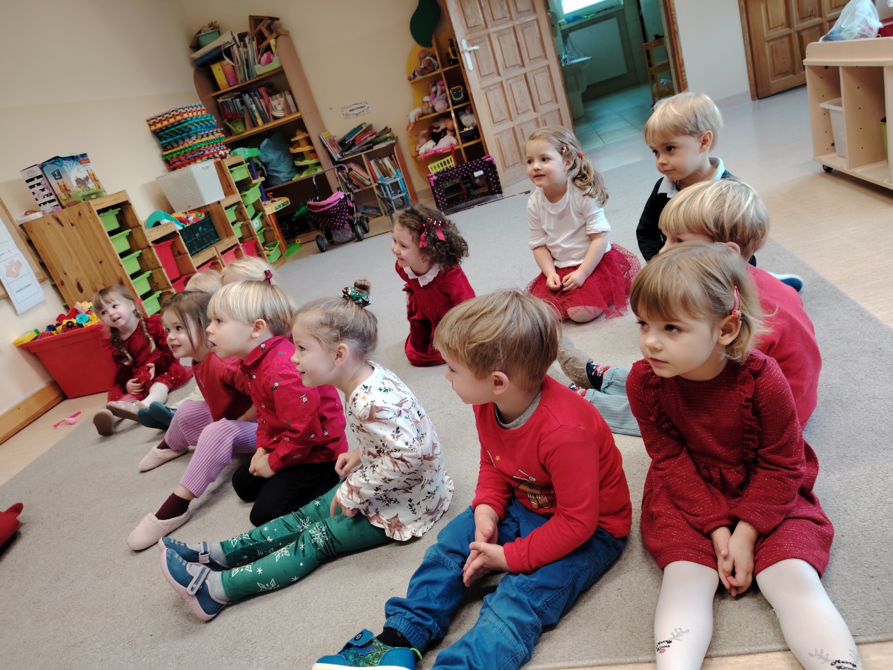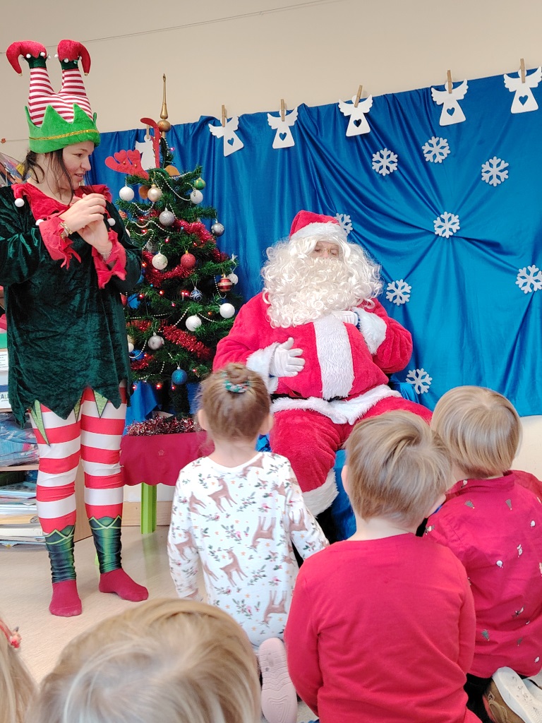 W czwartek 11. 12 do krasnoludów zawitał długo wyczekiwany gość. Święty Mikołaj przybył w raz z elfem. Ekscytacja i radość z tego spotkania była niesamowita. Dzieci już od śniadania wyczekiwały tego momentu. Były rozmowy, zadawanie pytań i wspólna zabawa z elfem. Mikołaj sprawdził w swoich zapisach, czy na pewno dzieci były grzeczne i dopiero po od śpiewaniu piosenki nastąpiło rozdanie prezentów.