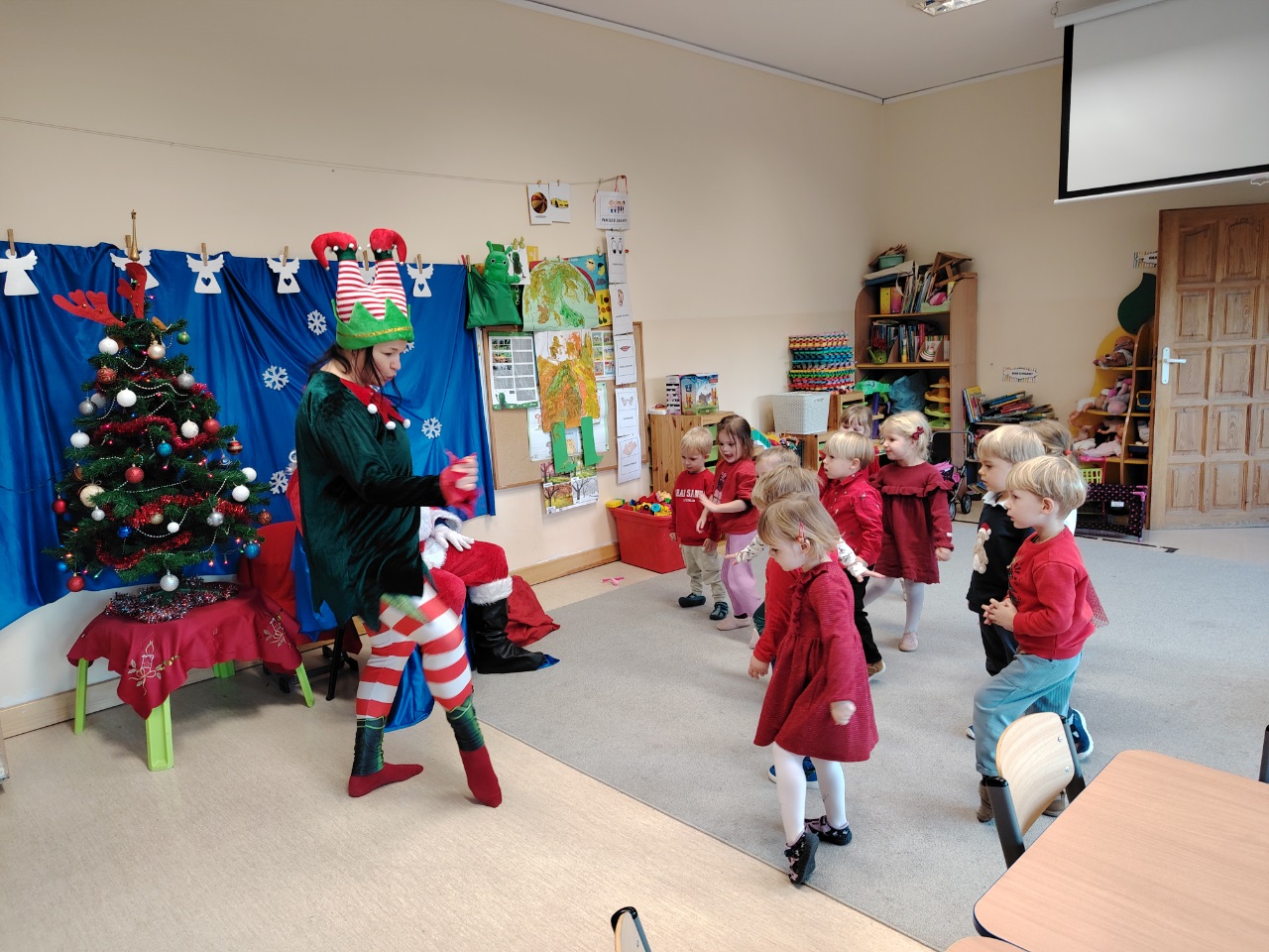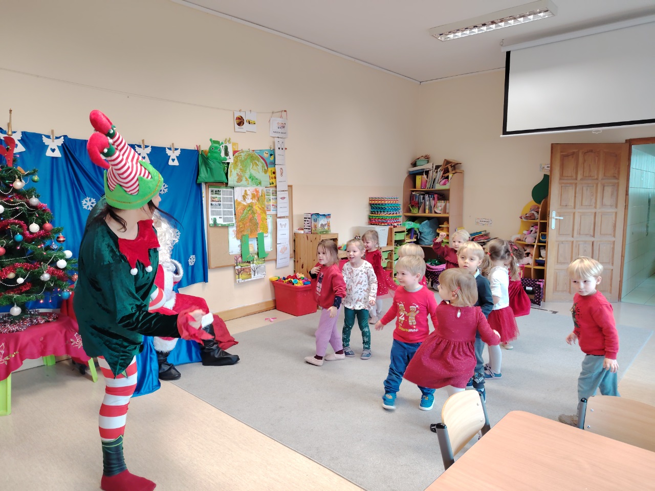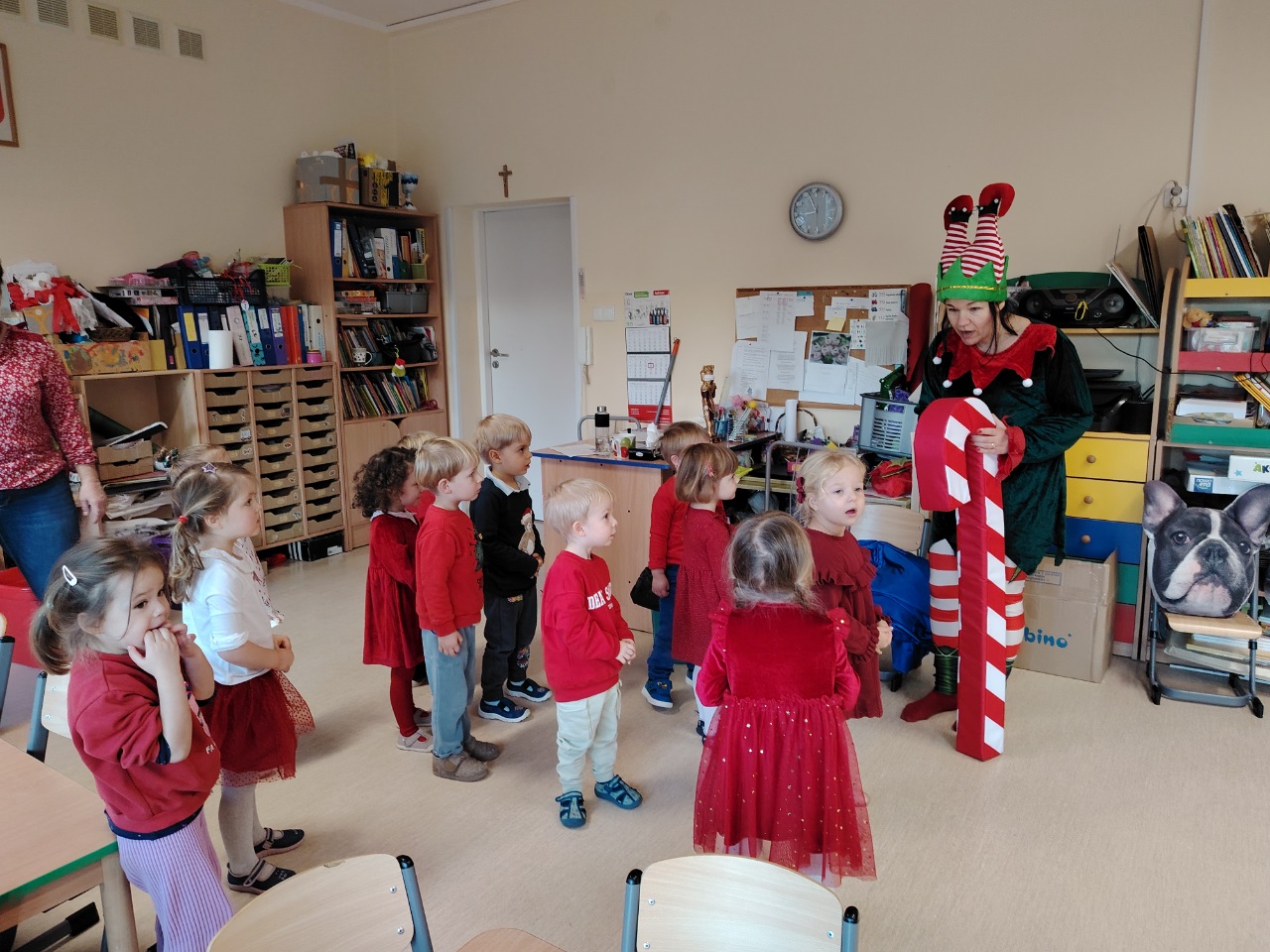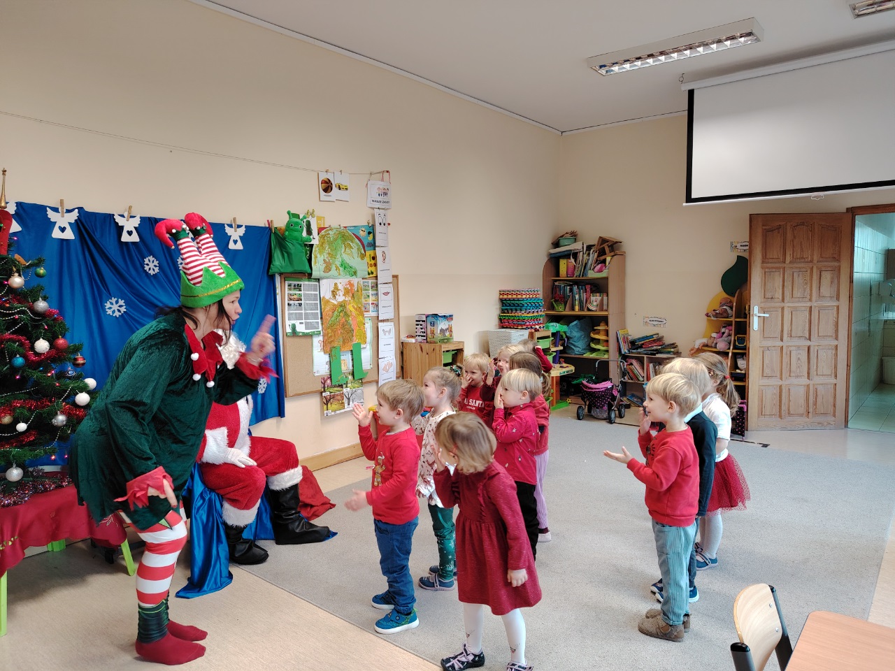 W czwartek 11. 12 do krasnoludów zawitał długo wyczekiwany gość. Święty Mikołaj przybył w raz z elfem. Ekscytacja i radość z tego spotkania była niesamowita. Dzieci już od śniadania wyczekiwały tego momentu. Były rozmowy, zadawanie pytań i wspólna zabawa z elfem. Mikołaj sprawdził w swoich zapisach, czy na pewno dzieci były grzeczne i dopiero po od śpiewaniu piosenki nastąpiło rozdanie prezentów.