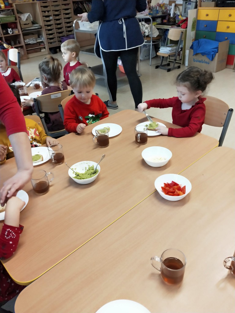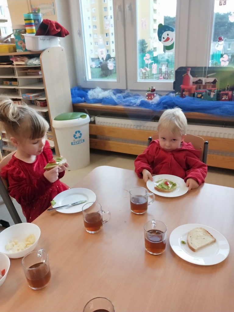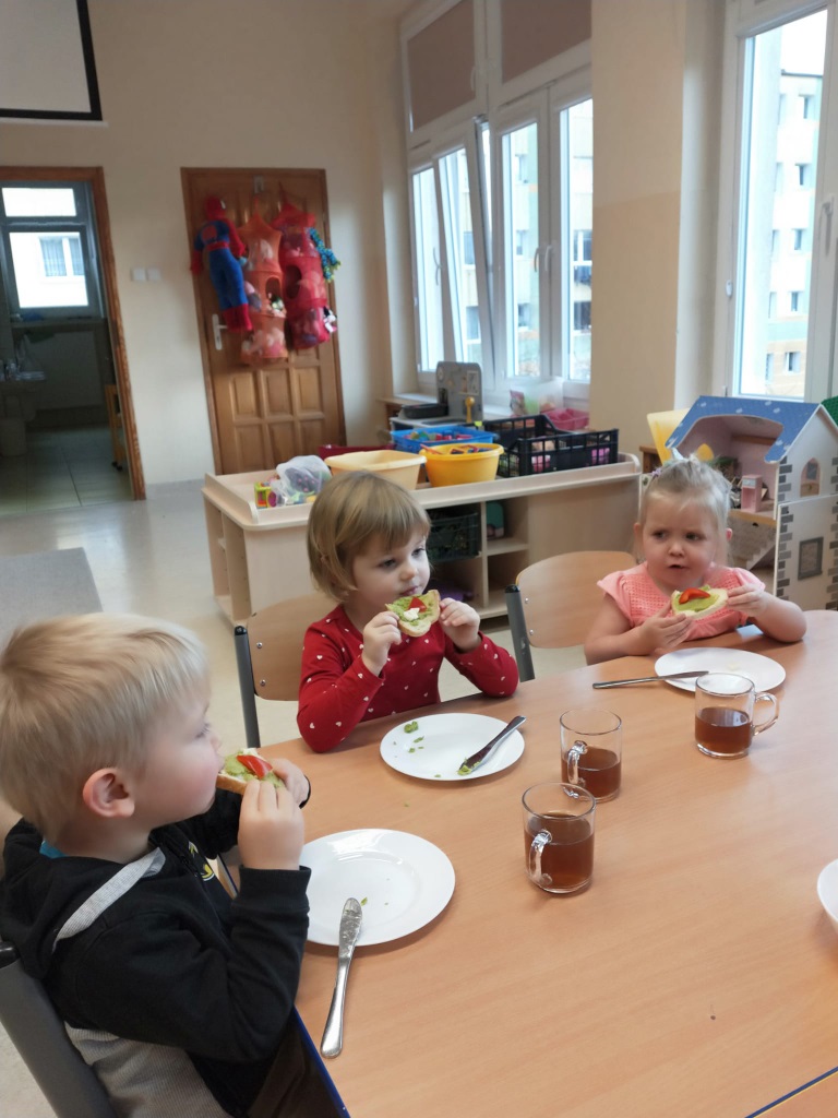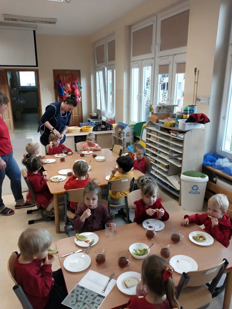 We wtorek 9.12 Krasnoludki stworzyły niesamowite kanapki. Podczas podwieczorku nie tylko ćwiczyły samodzielne smarowanie kanapek ale także dekorowały je smacznym czapeczkami. Kanapki były kolorowe, pełne zdrowia i witamin, ale co najważniejsze dumy z samodzielnie przygotowanego posiłku.